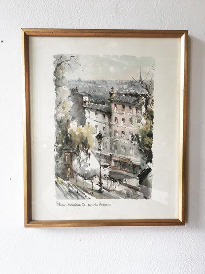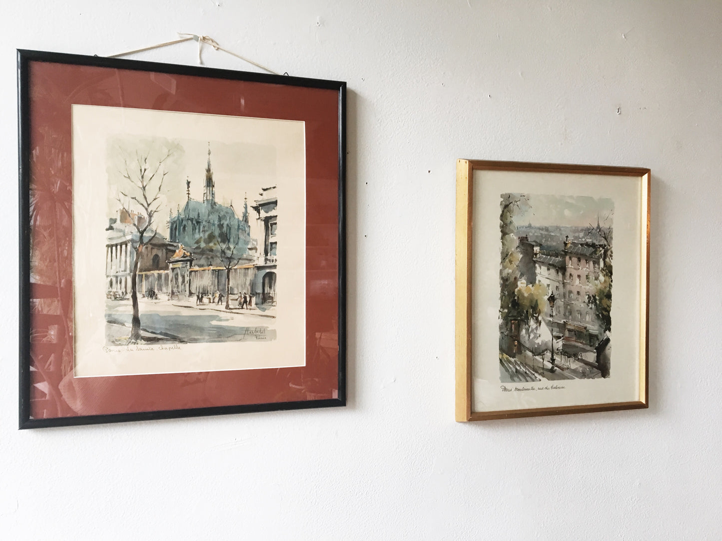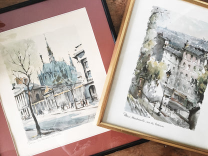 Signed La Sainte Chapelle print by Herbelot. In antique frame and deep red matte, freshly cleaned up by a professional. Really beautiful!