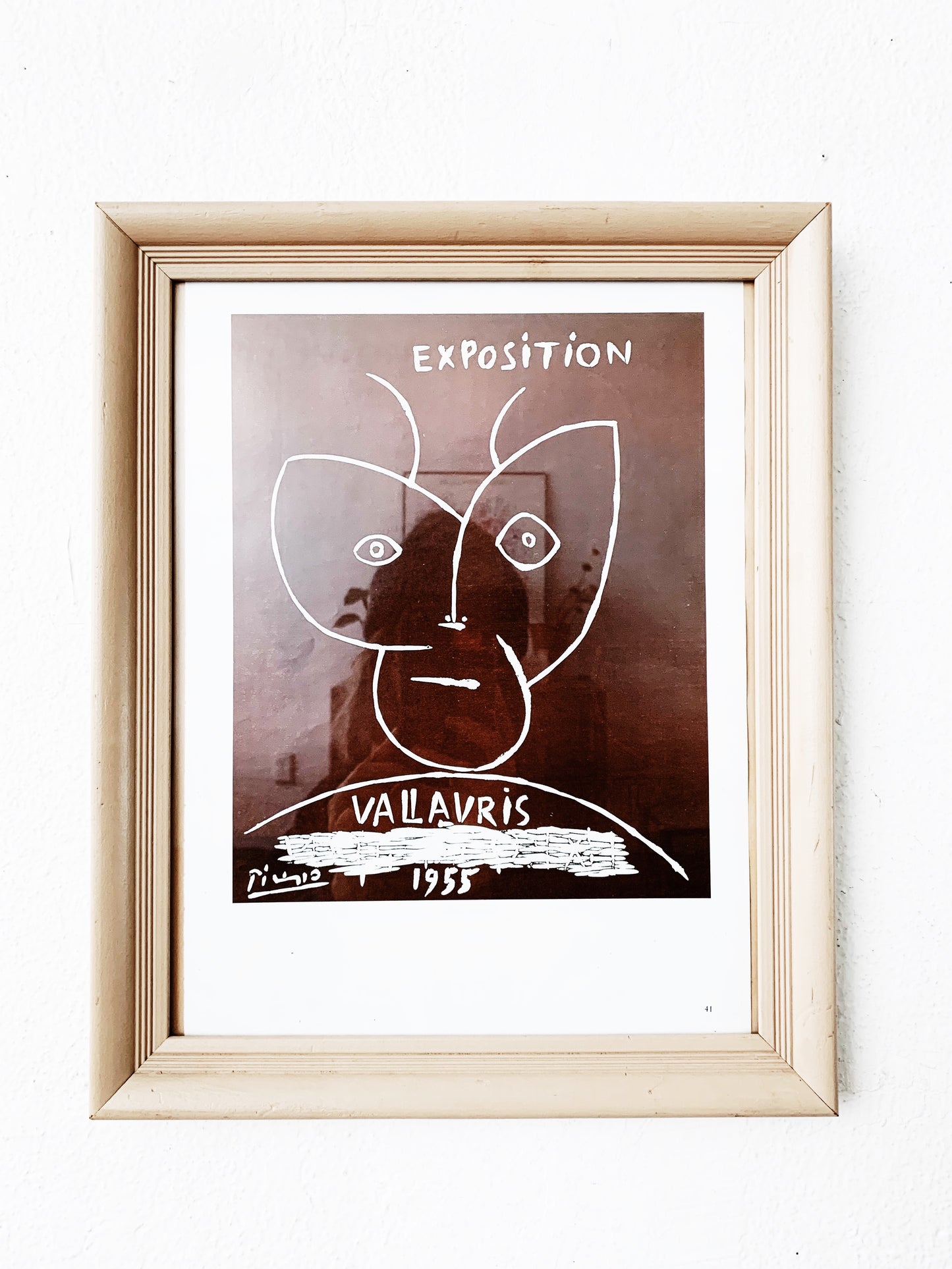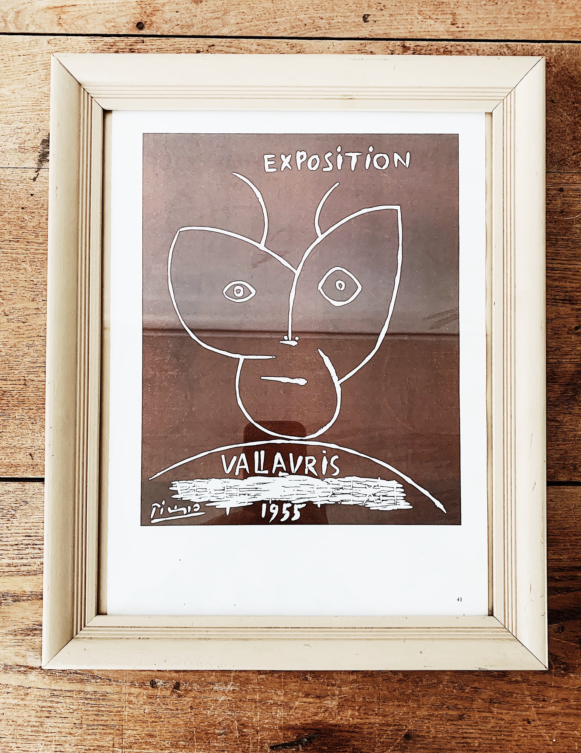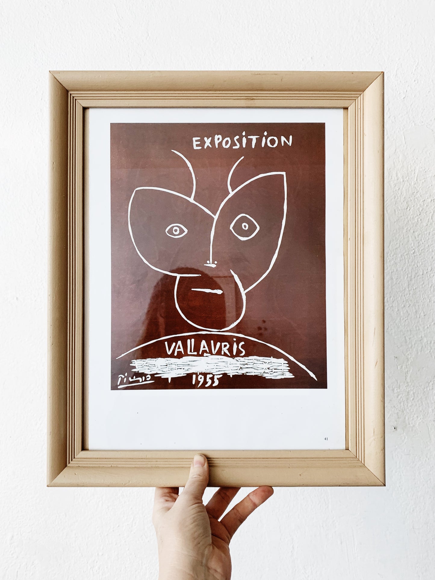 From a vintage Picasso poster book. Exposition Vallavris c1955. Bonus on the back. Frame in vintage wood.