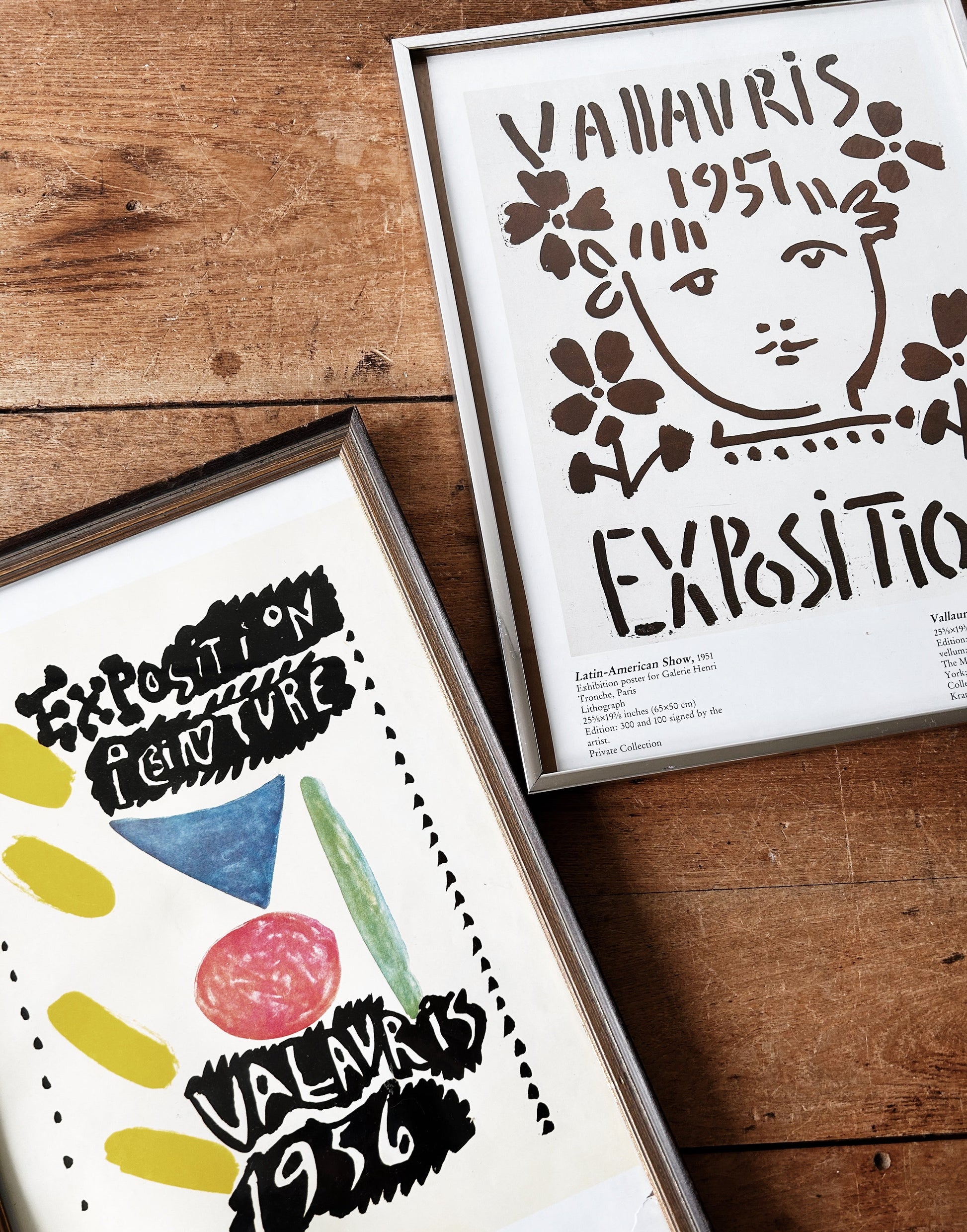 Two graphic vintage Picasso exposition prints in vintage frames under glass