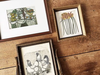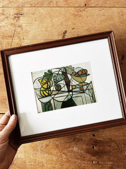 Vintage matted Picasso art print under glass in vintage wood frame.