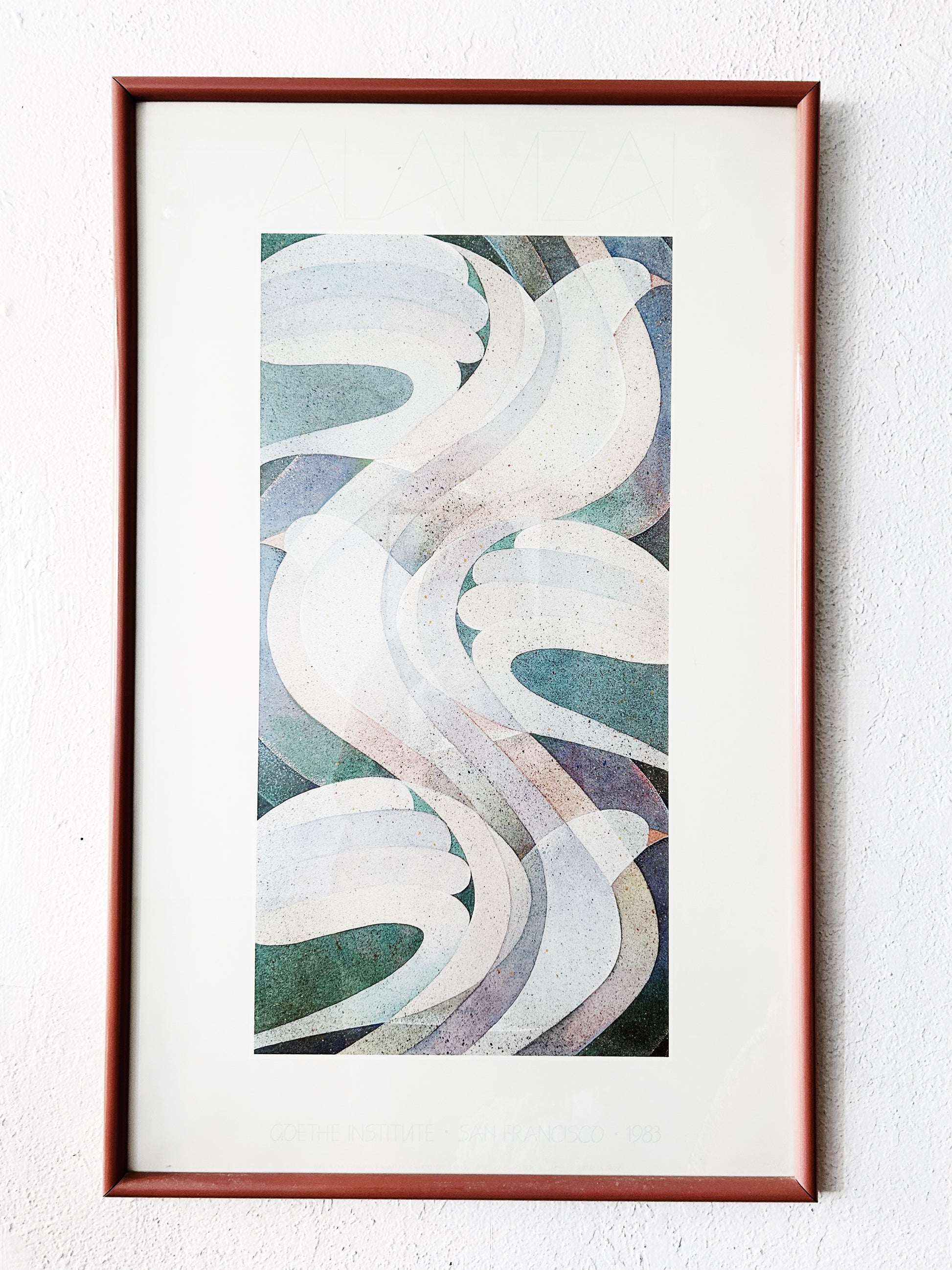 ‘Three Doves’ 1983 vintage gallery lithograph by Khwani Alamzai