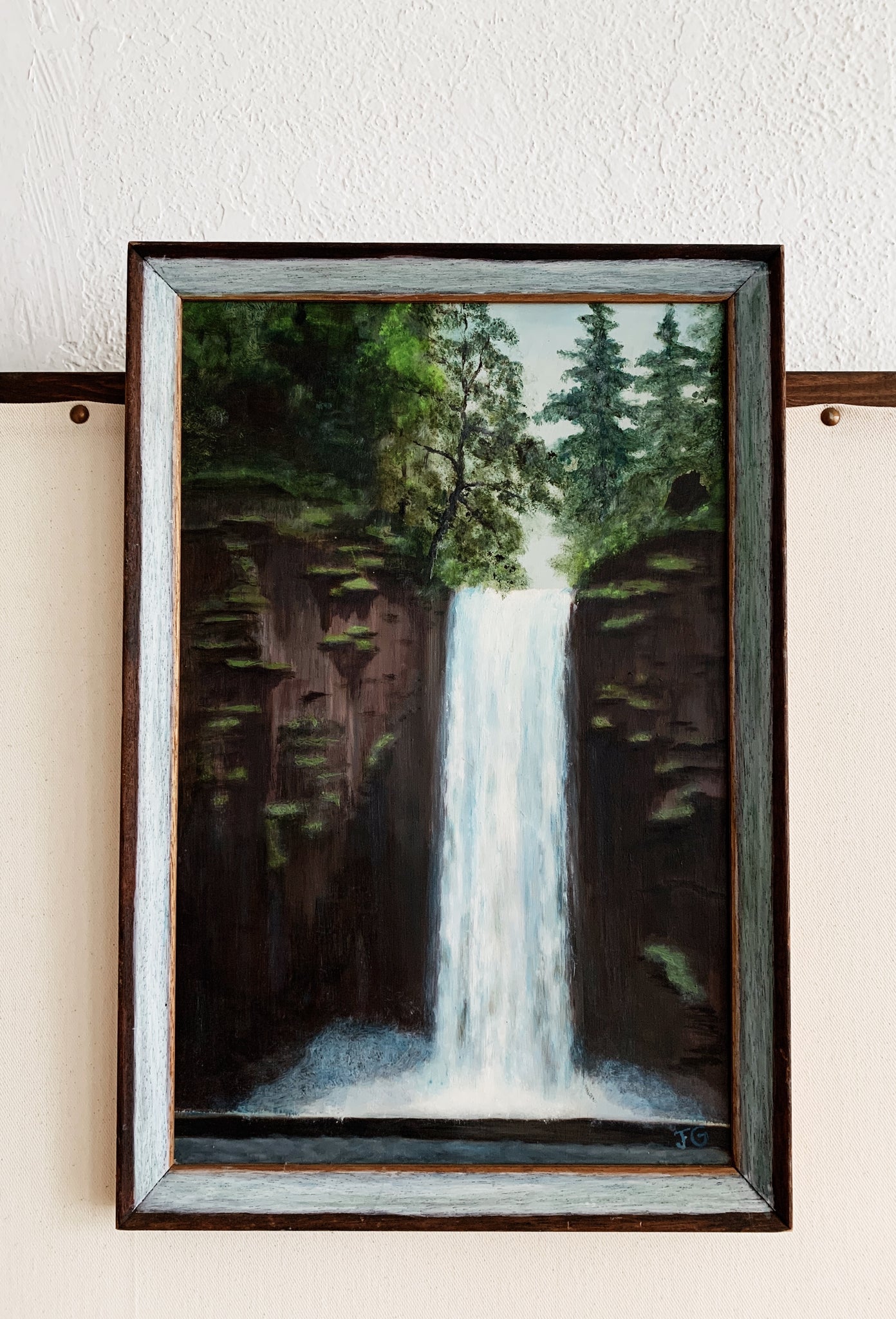 Vintage Framed Waterfall Painting