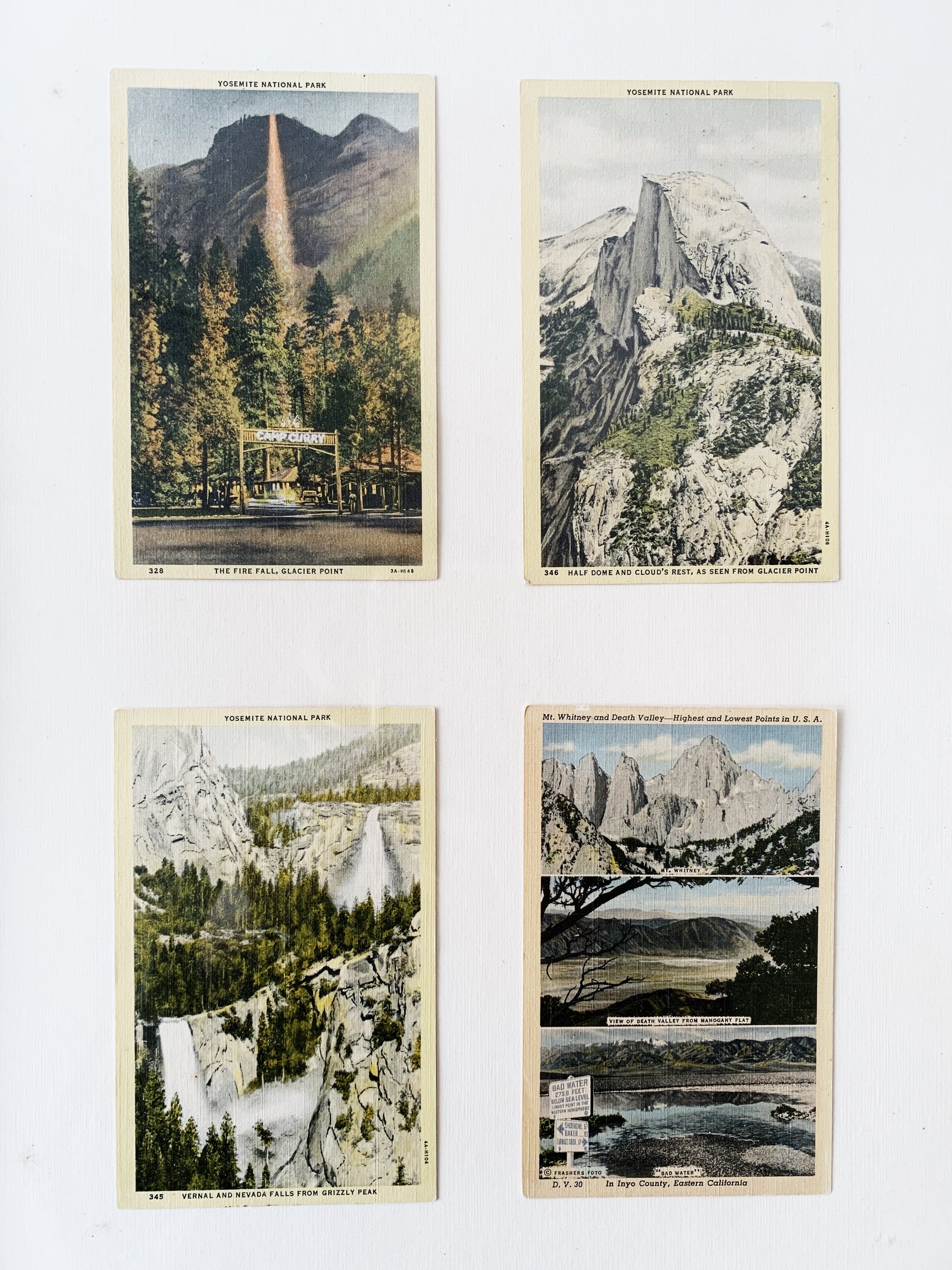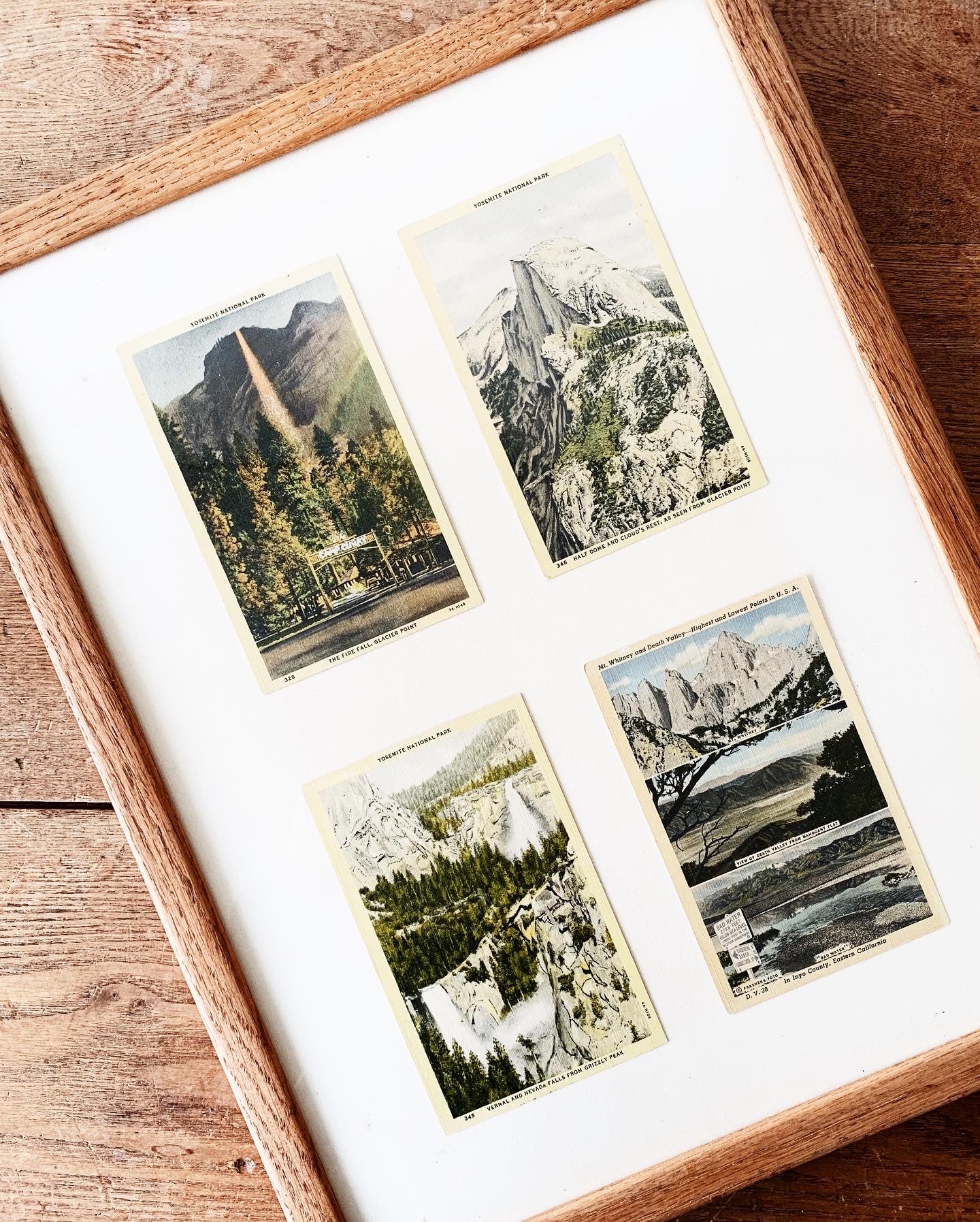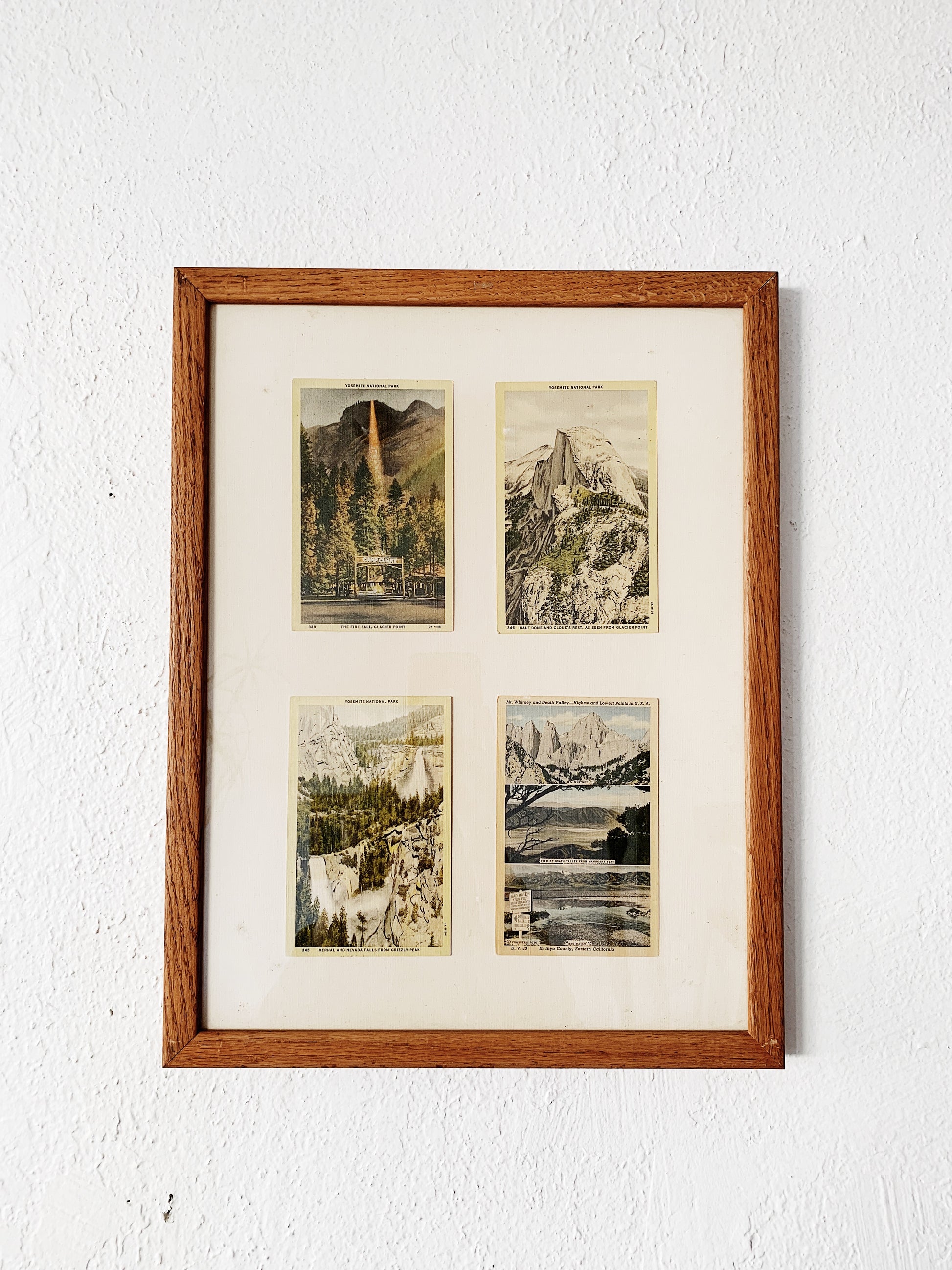 Lovely vintage framed Yosemite postcards. Vintage wood, under glass.
