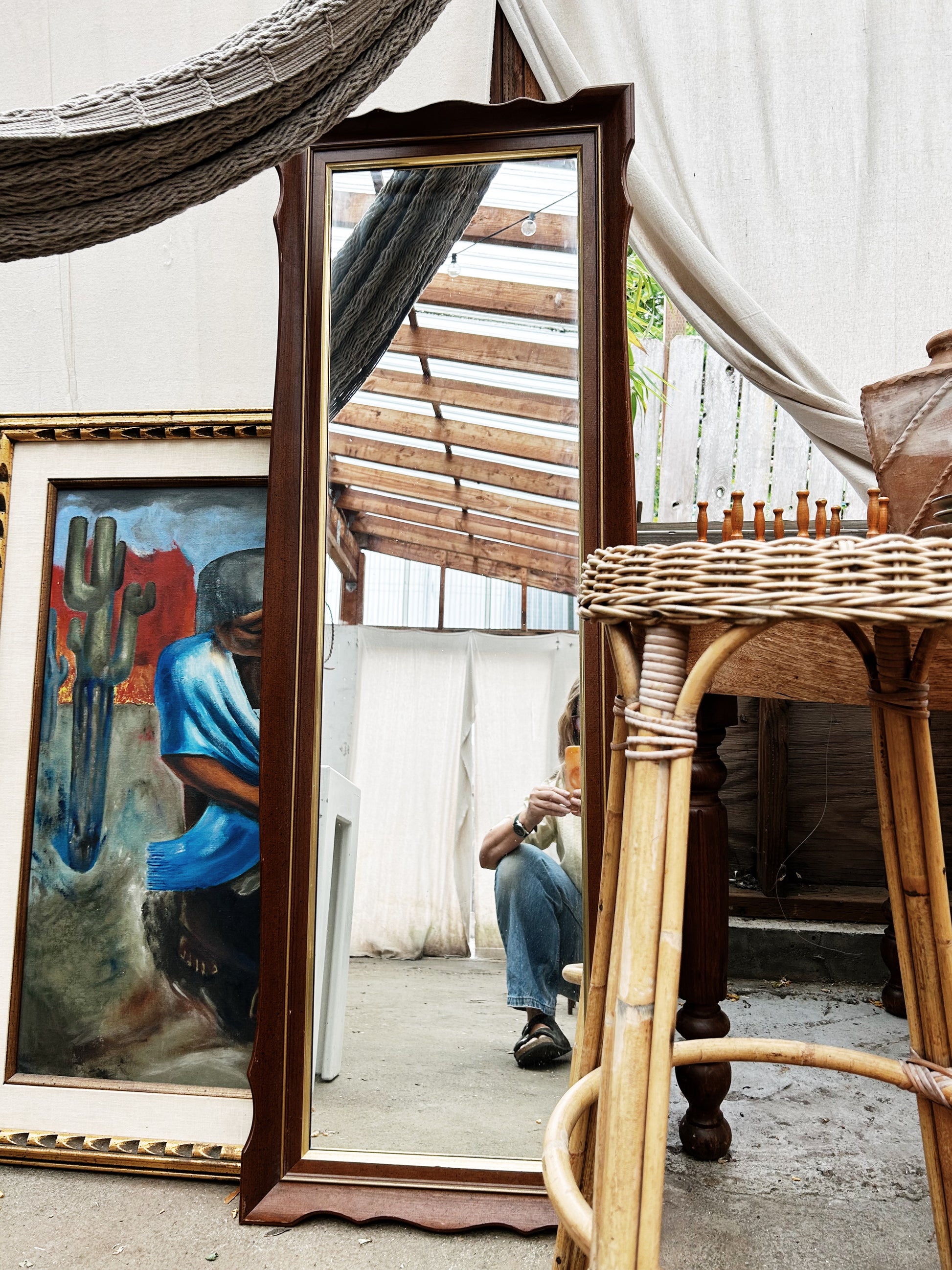 gorgeous and hard to find (framed in wood like this) full length mirror.