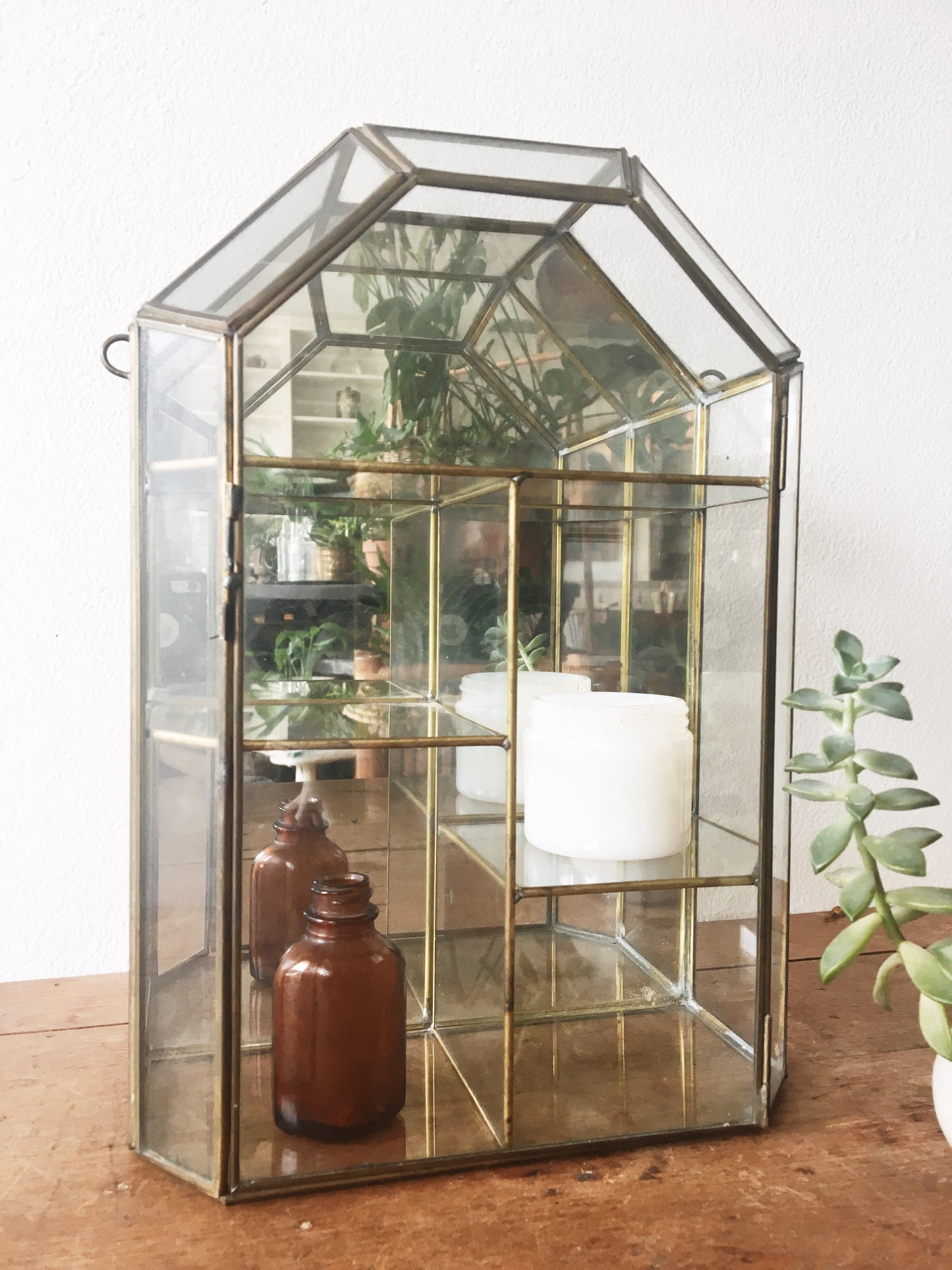 A lovely one with hinged door and two brass hangers on back for hanging.