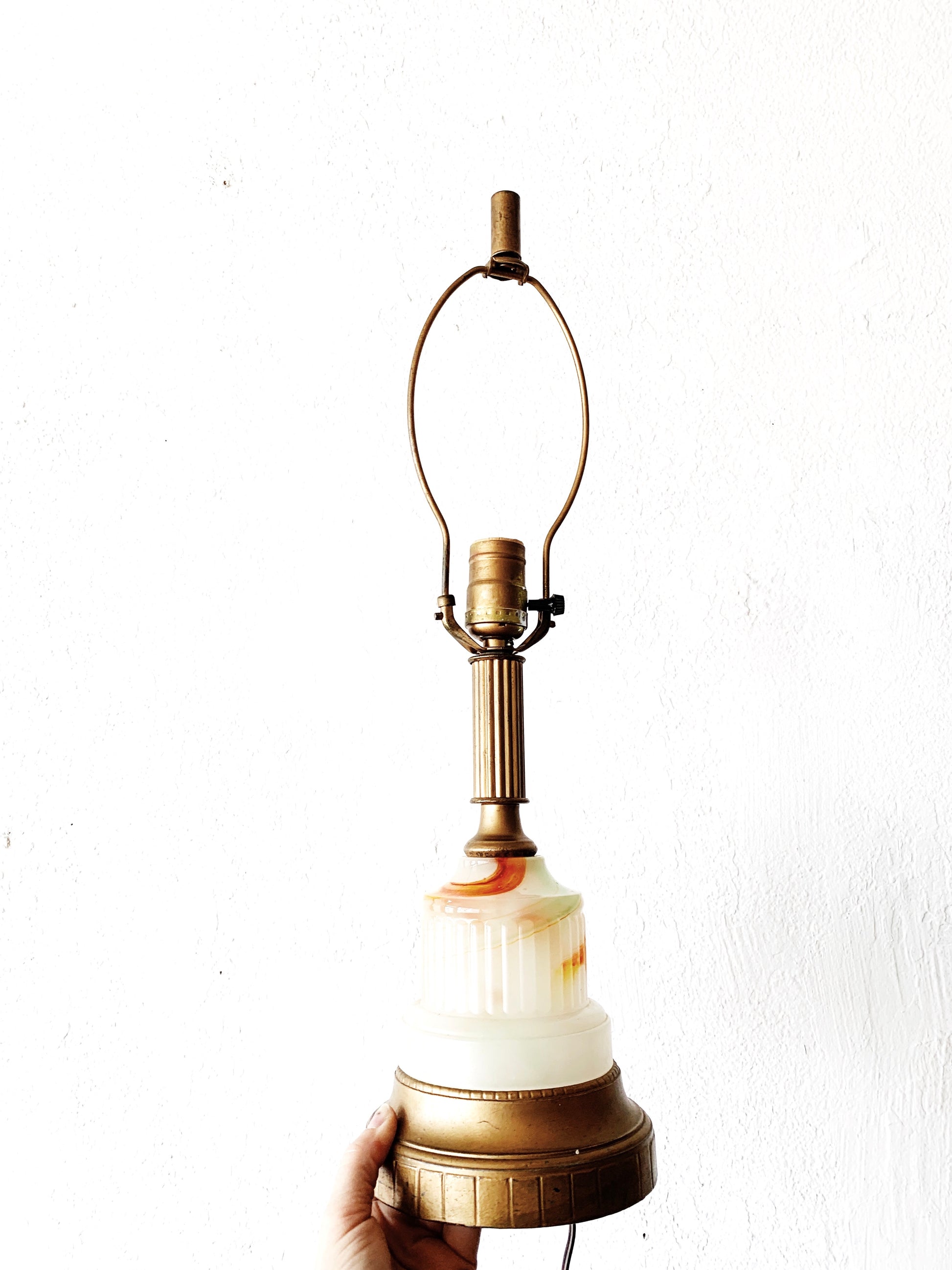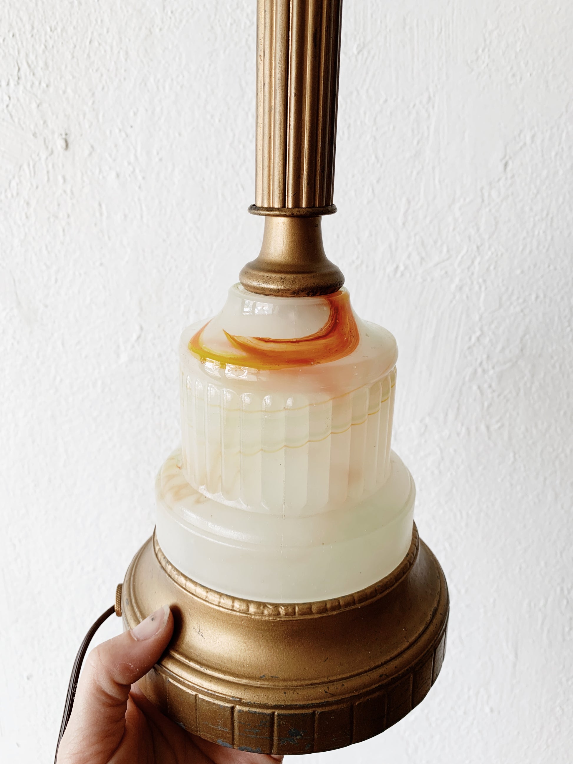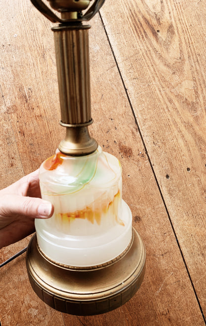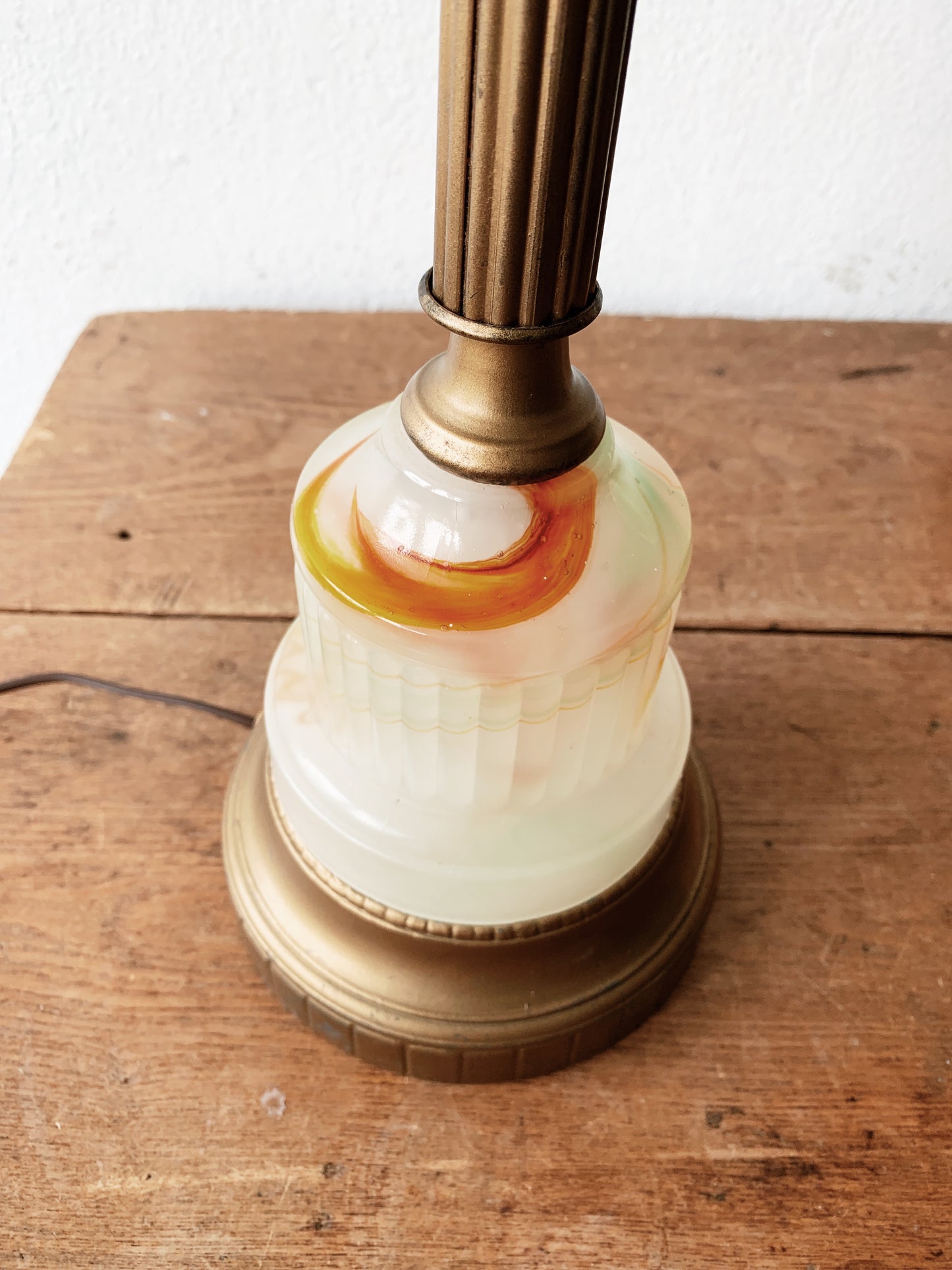 Lamp love. Swirly milky glass base is really great. Orange and green swirls.