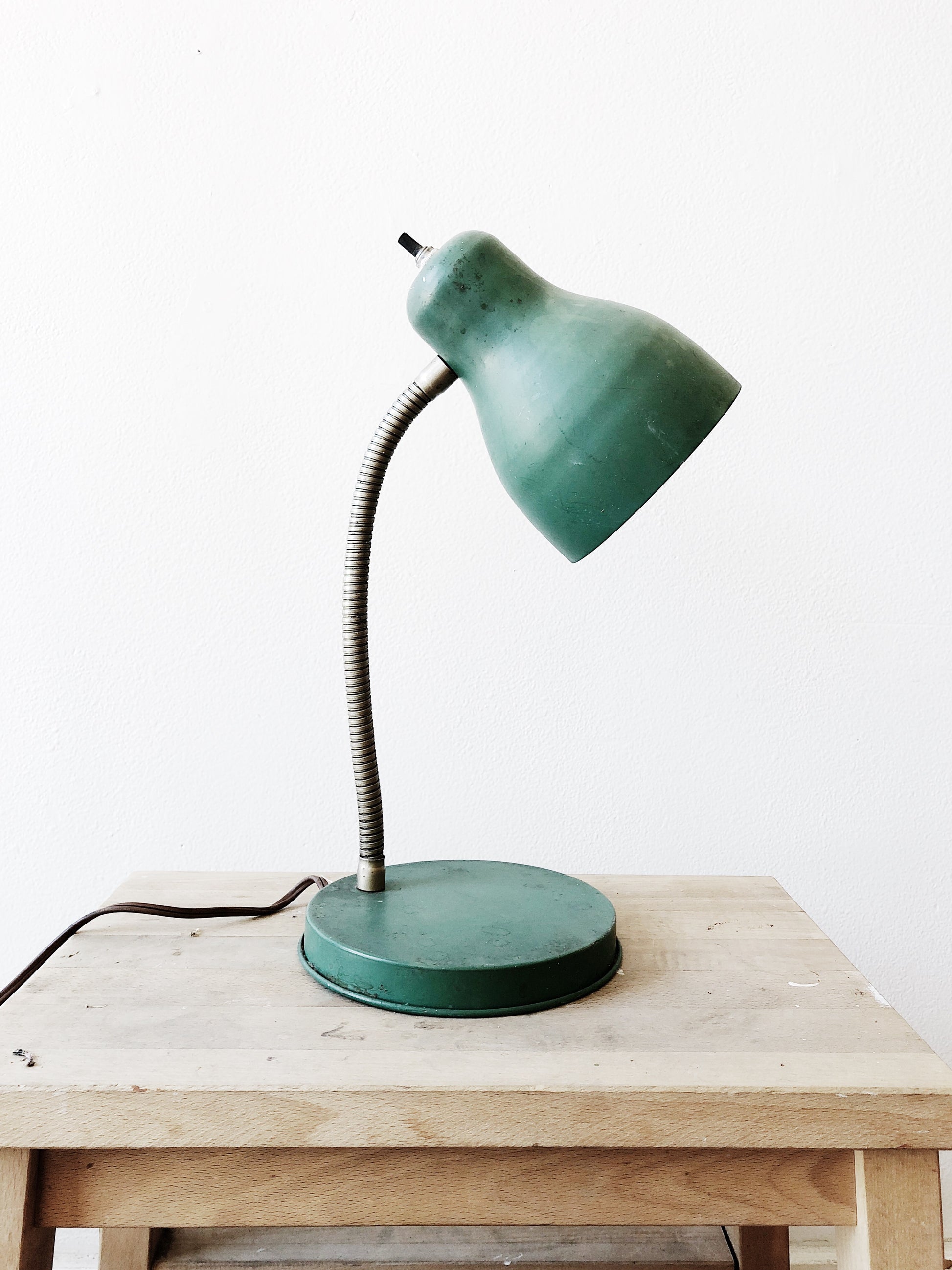 The perfect gooseneck in the perfect shade of vintage green enamel and brass. This guy has a wall mount as well. Win win win