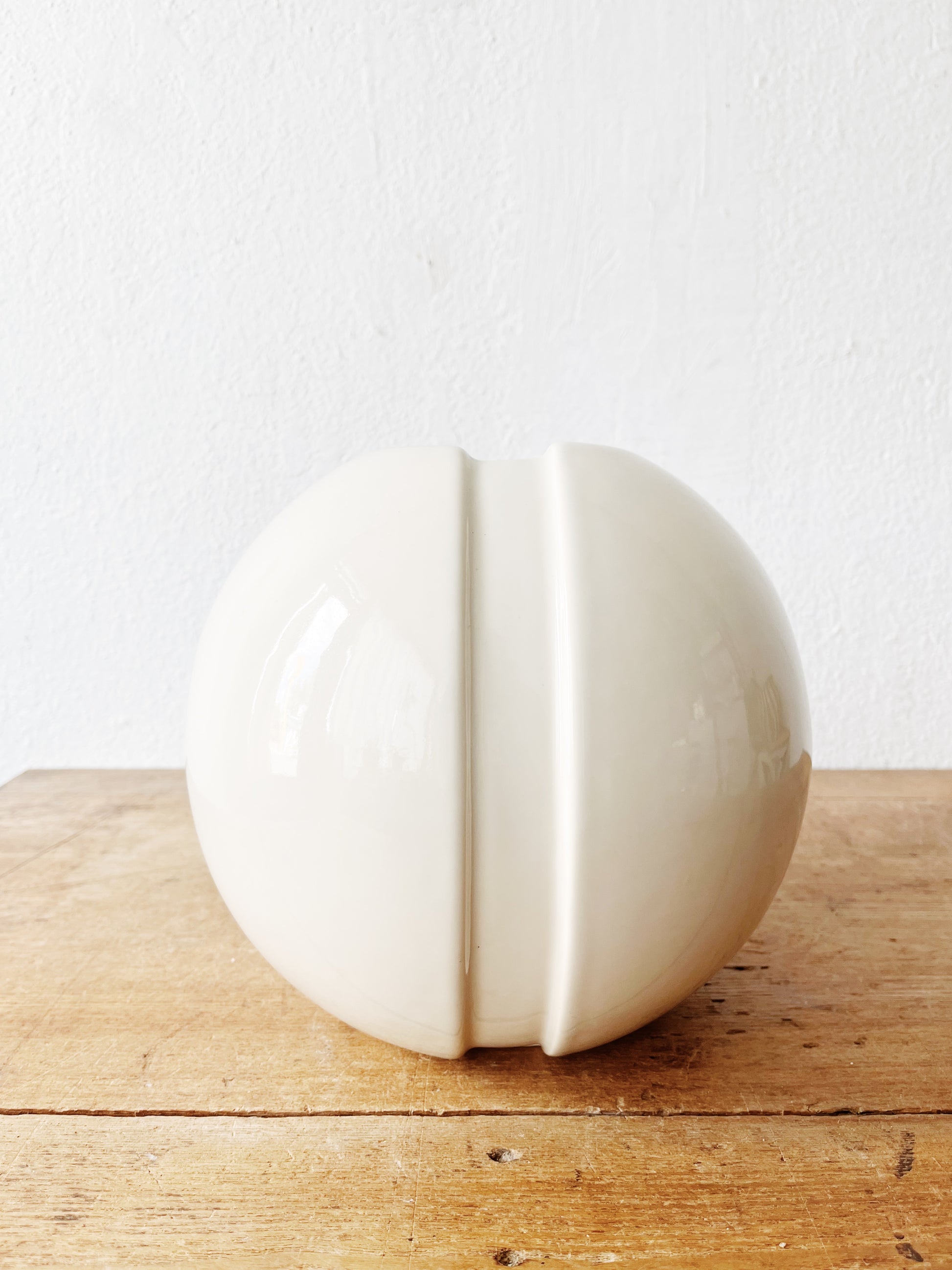 Large ceramic orb vase by Haeger pottery. Warm white bordering on cool ivory, with deco influence design. Looks great filled or empty
