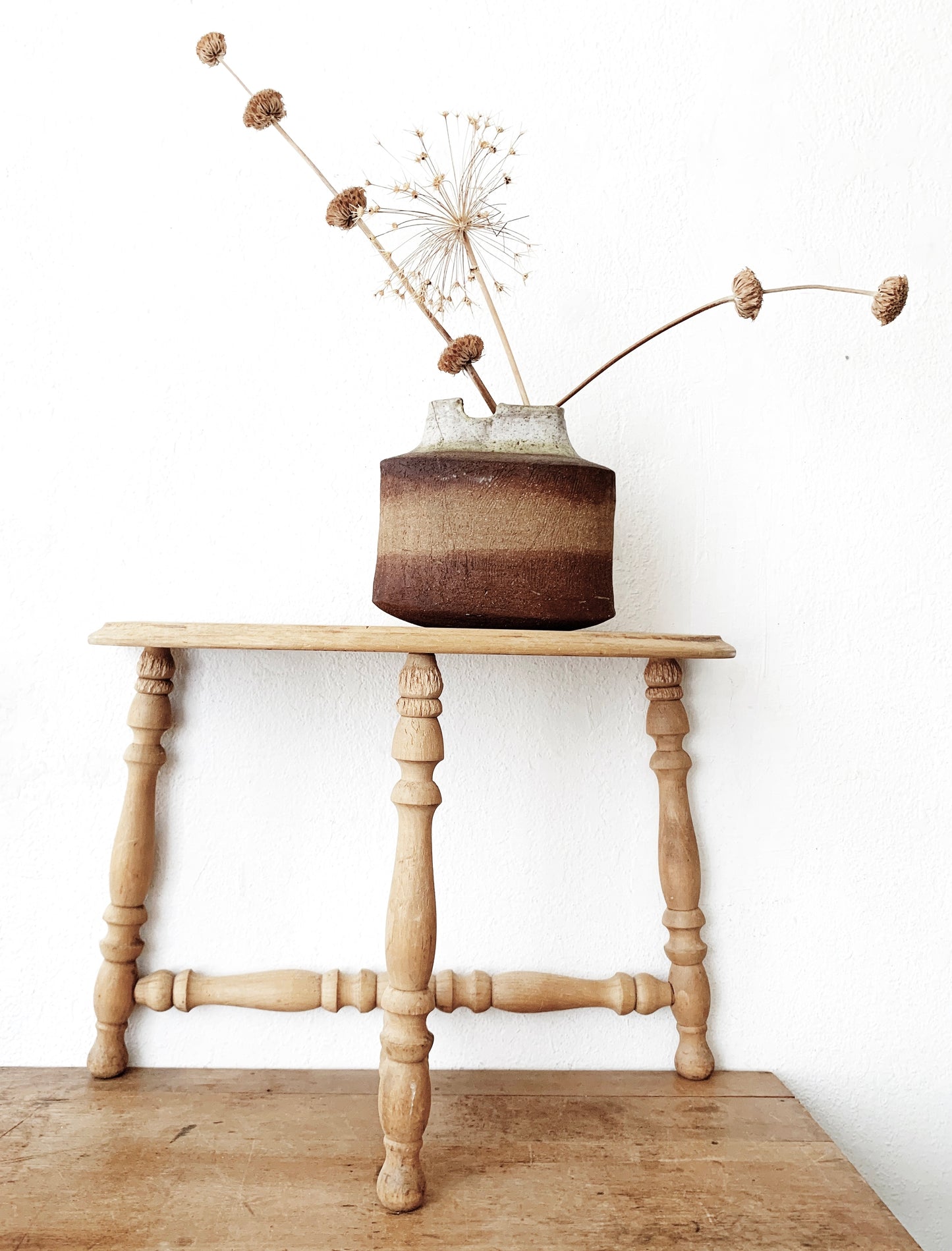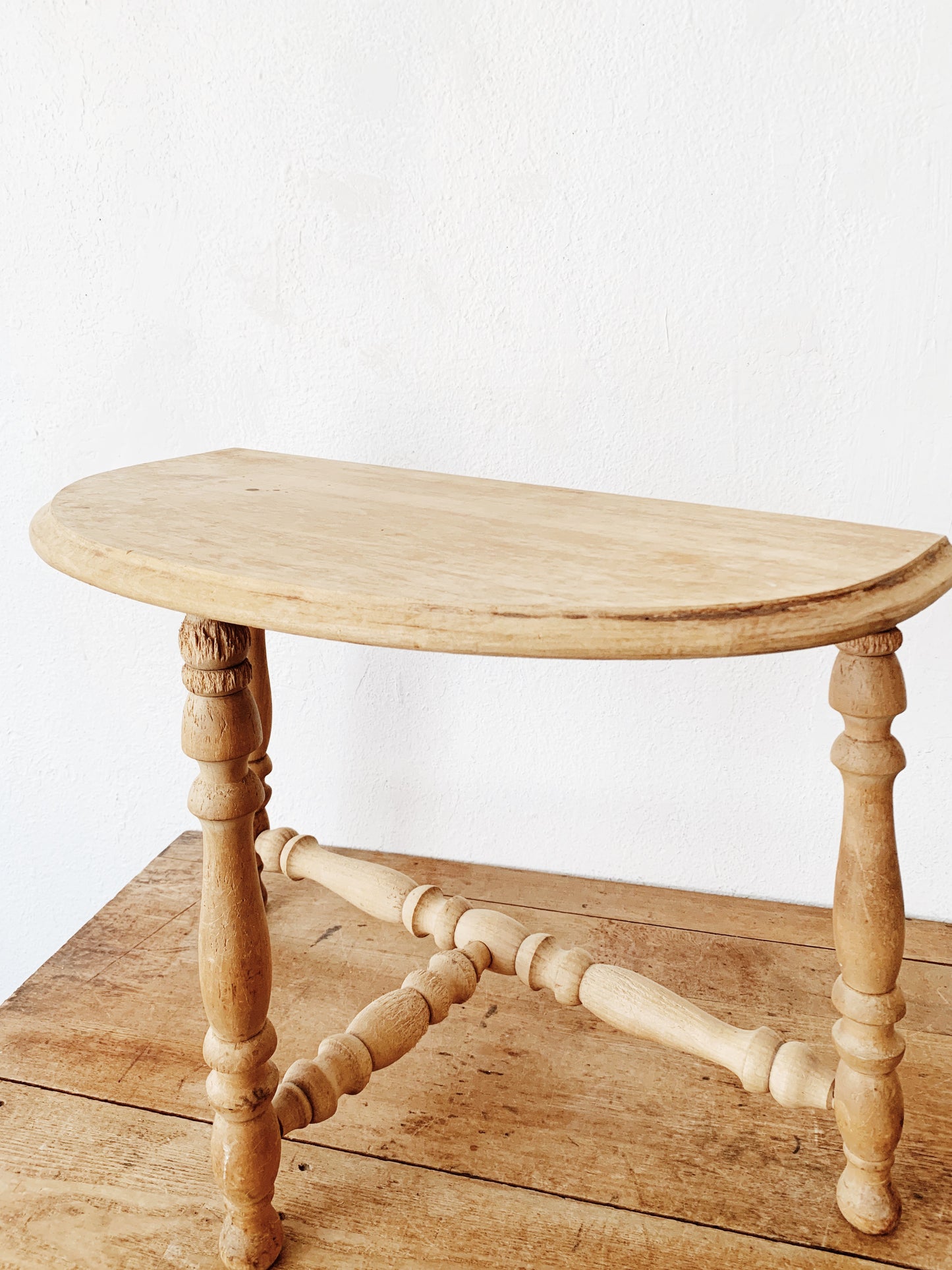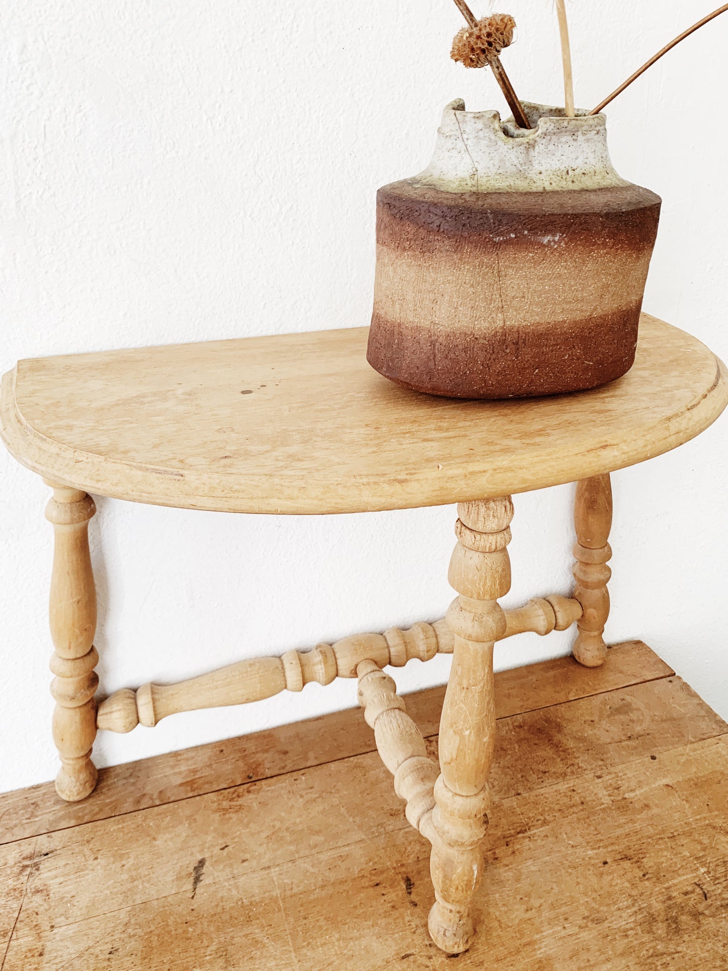 Wonderful half round, natural wood table with spindle legs. Great for small spaces