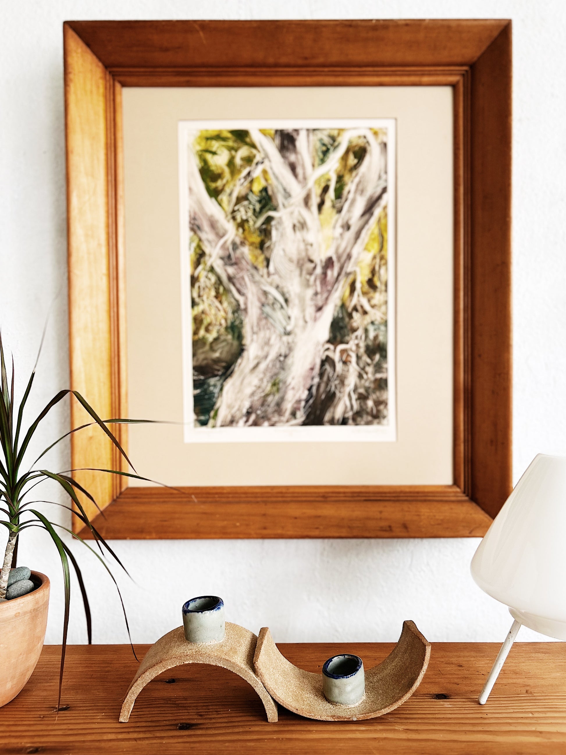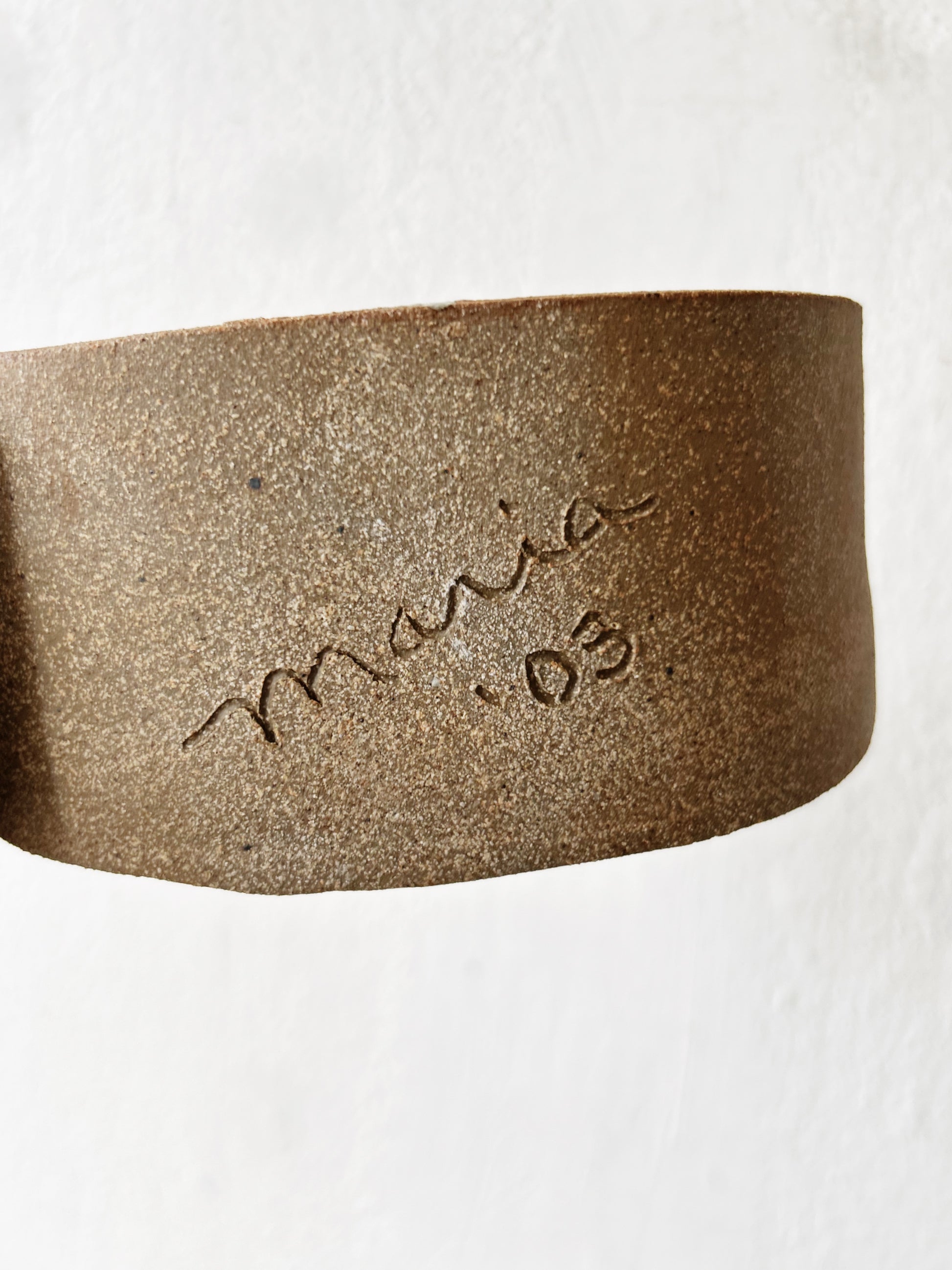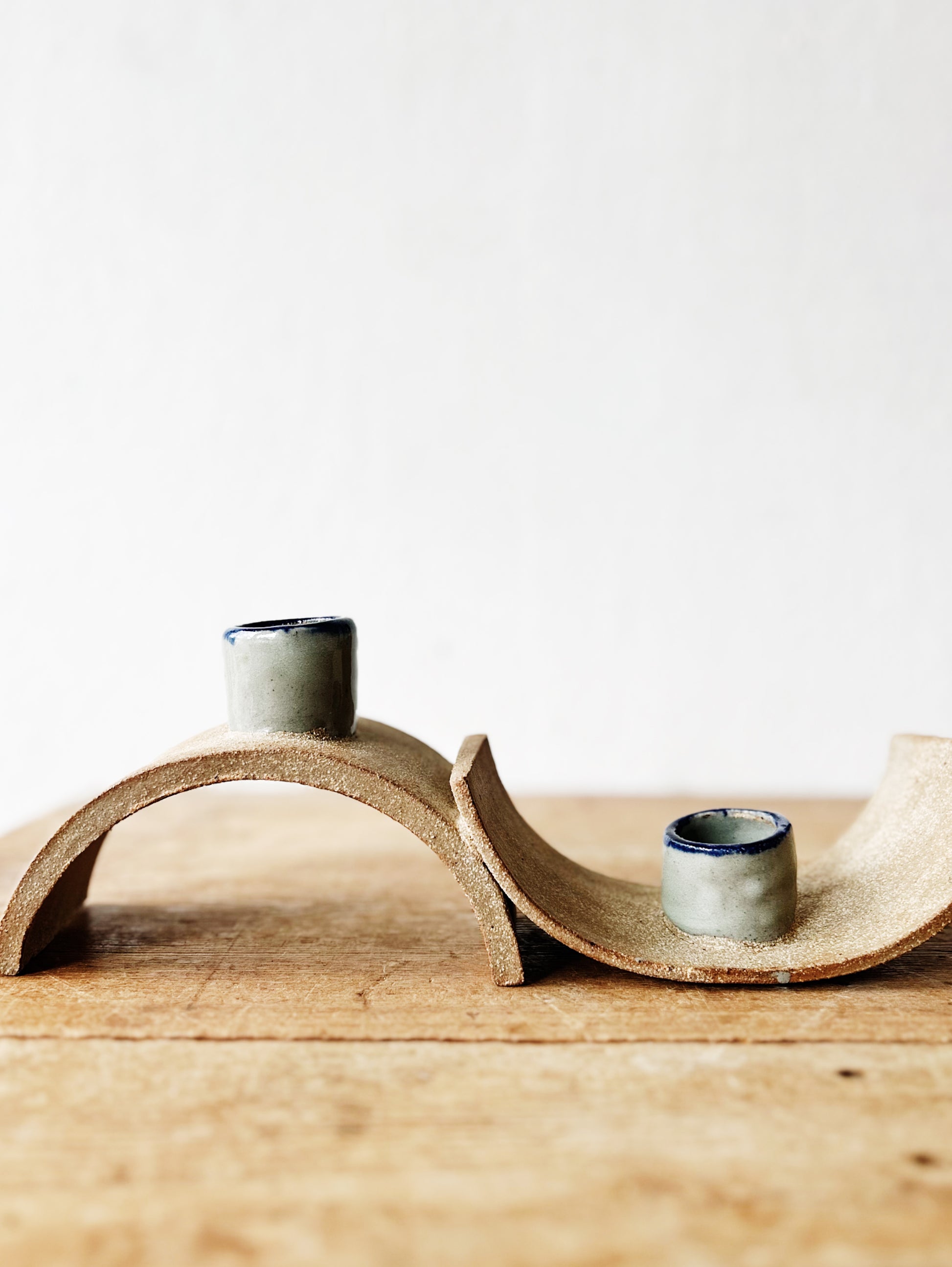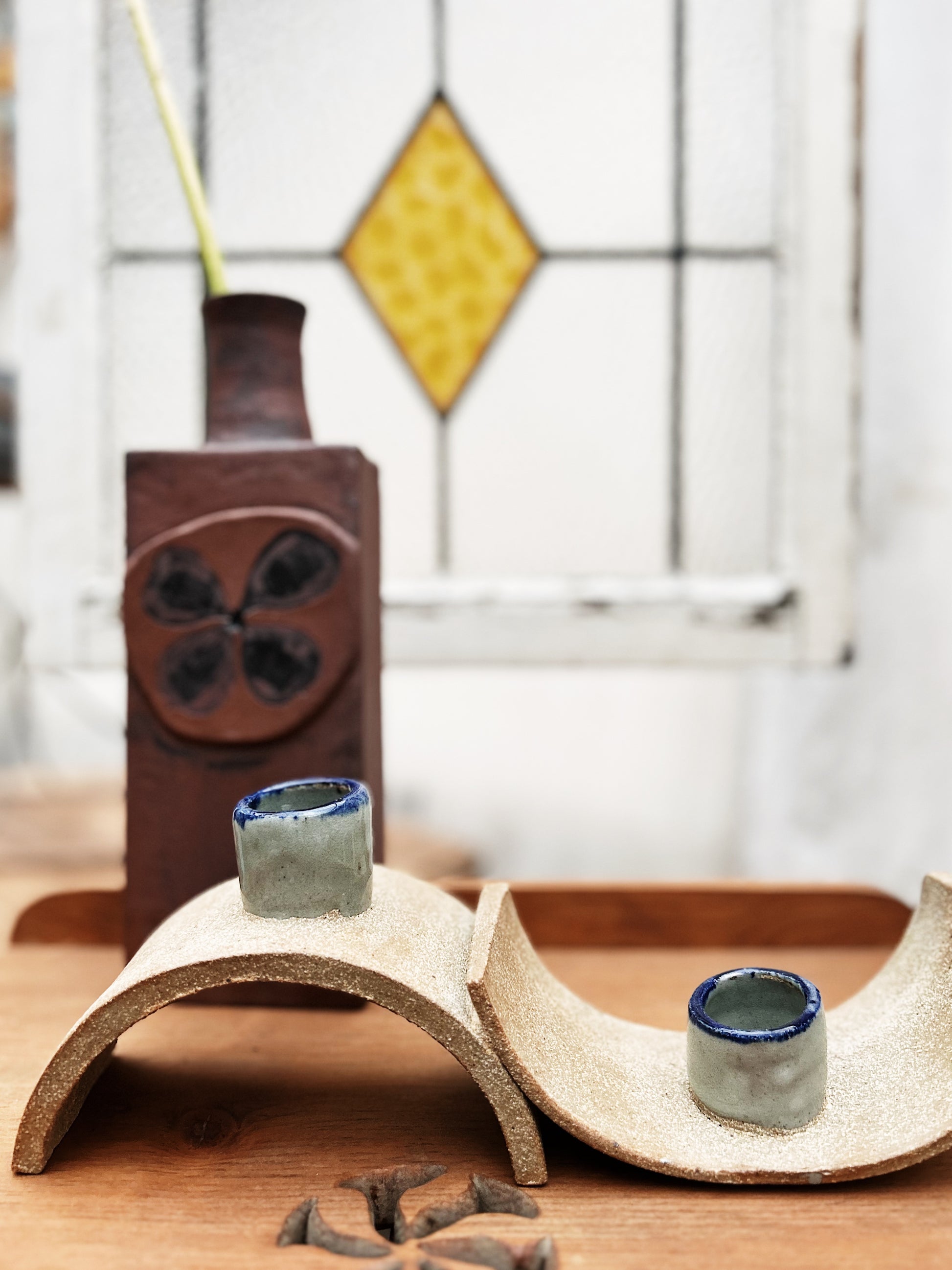Slab built ceramic candelabra. Takes a nice chunky candle somewhere between a taper and a pillar. Really nicely made. Signed dated
