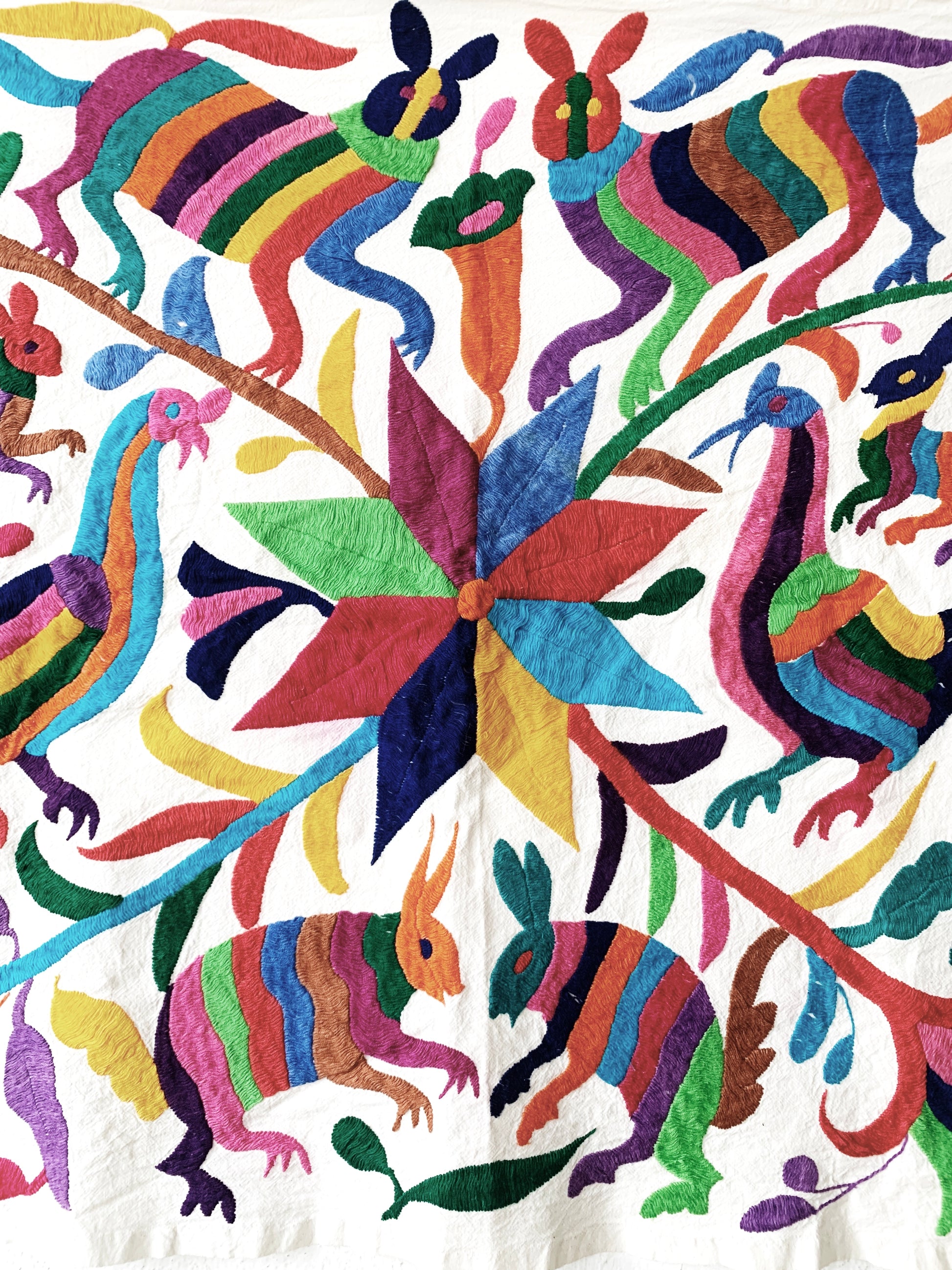 Stunning vintage hand embroidered folk art textile. Silk embroidery thread on cotton. Would be gorgeous framed in an old wood frame. Or just pin it up as shown here. Such a colorful happy piece, expertly done!