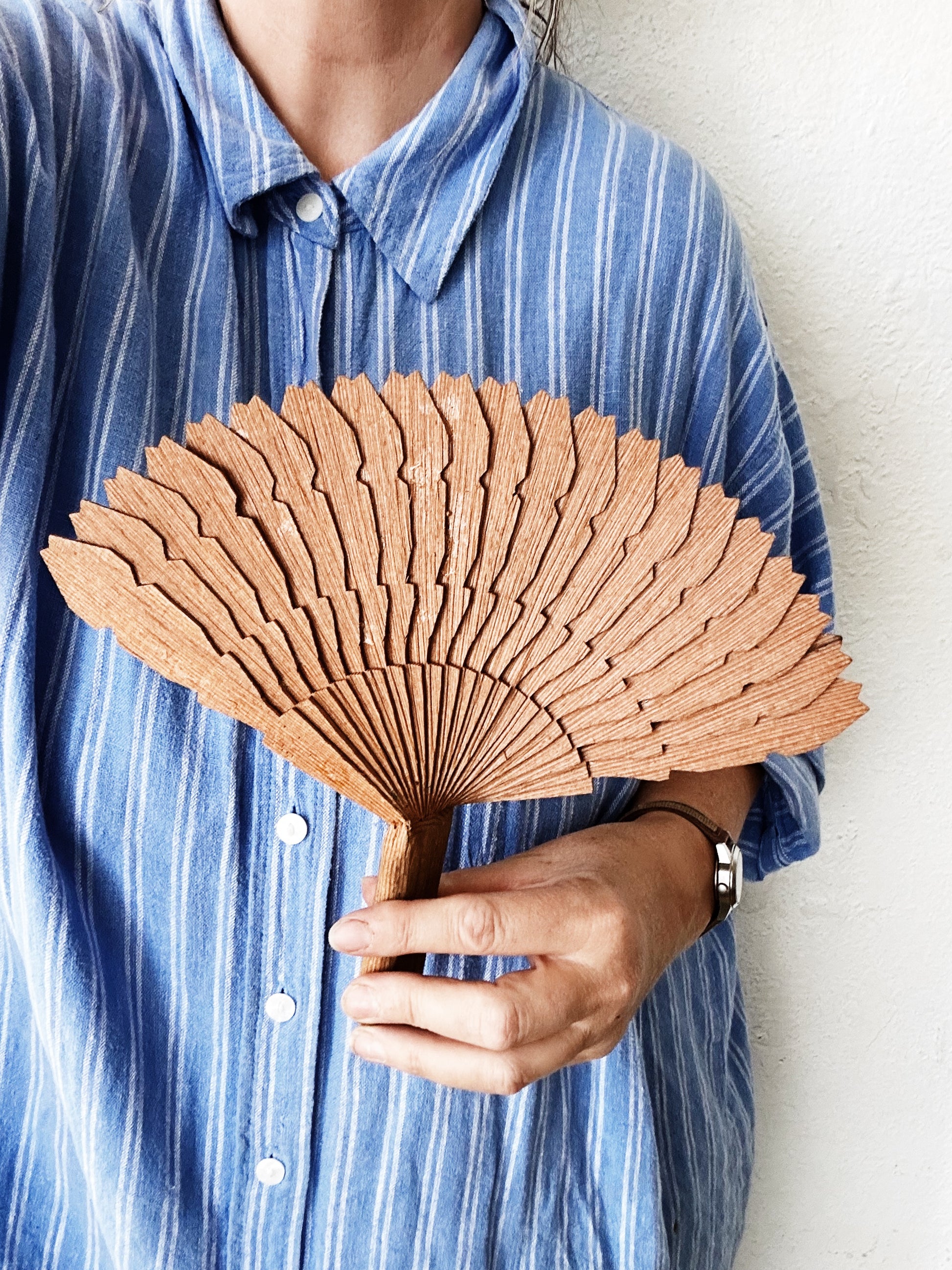 These little hand fans work great and a easy on the eyes. Like the old paper hand fans, but these are made of thin wood so they are sturdier! Hand made.