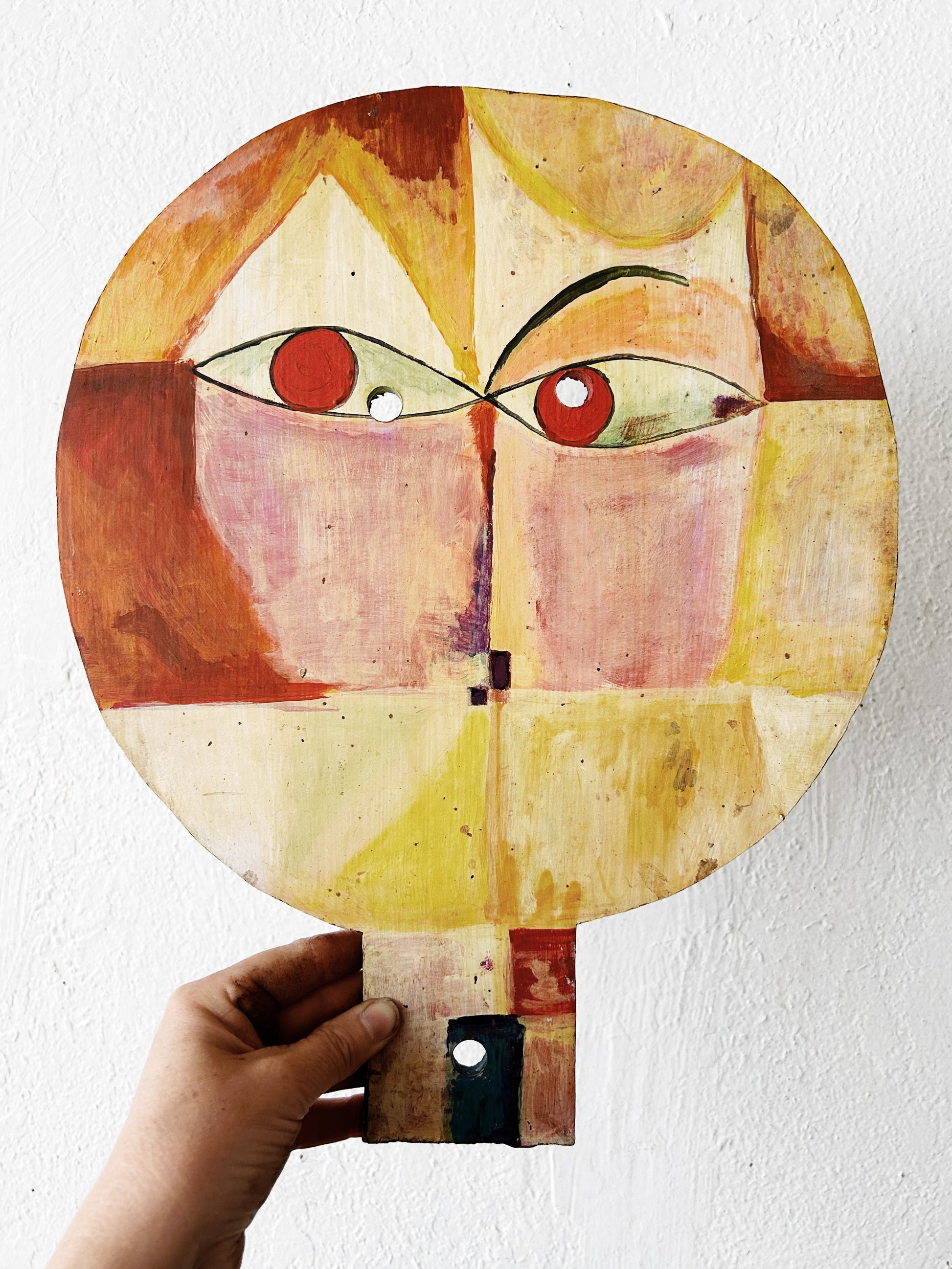 Vintage Hand Painted Wood Paul Klee Folk Art