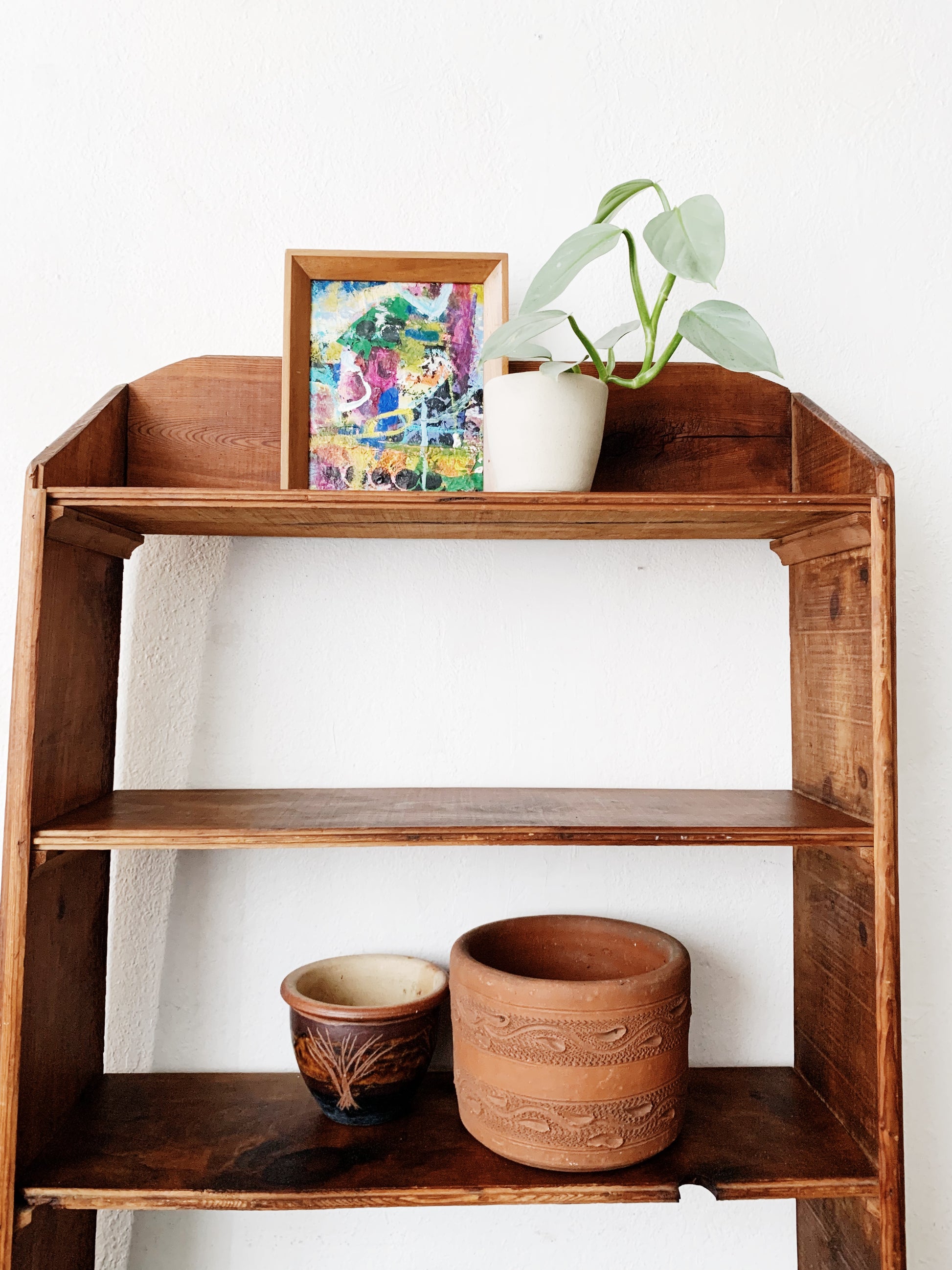 The perfect rustic handmade shelf with open back. Sturdy! In excellent condition. Hard to find nowadays.