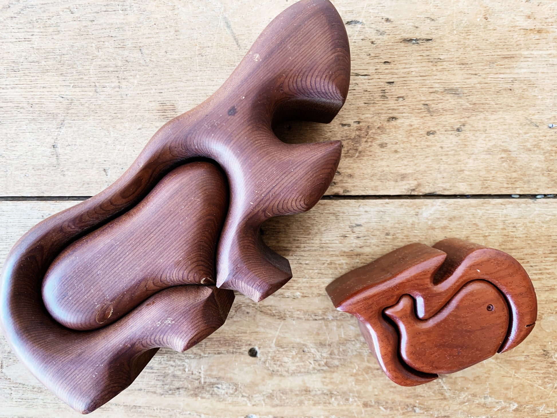 Two wonderful hand crafted red wood novelty boxes. Chose hippo or whale at checkout