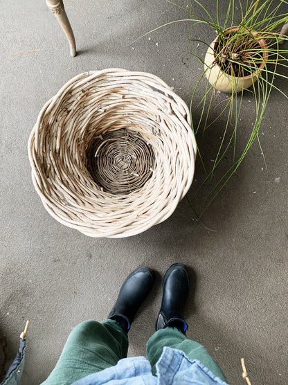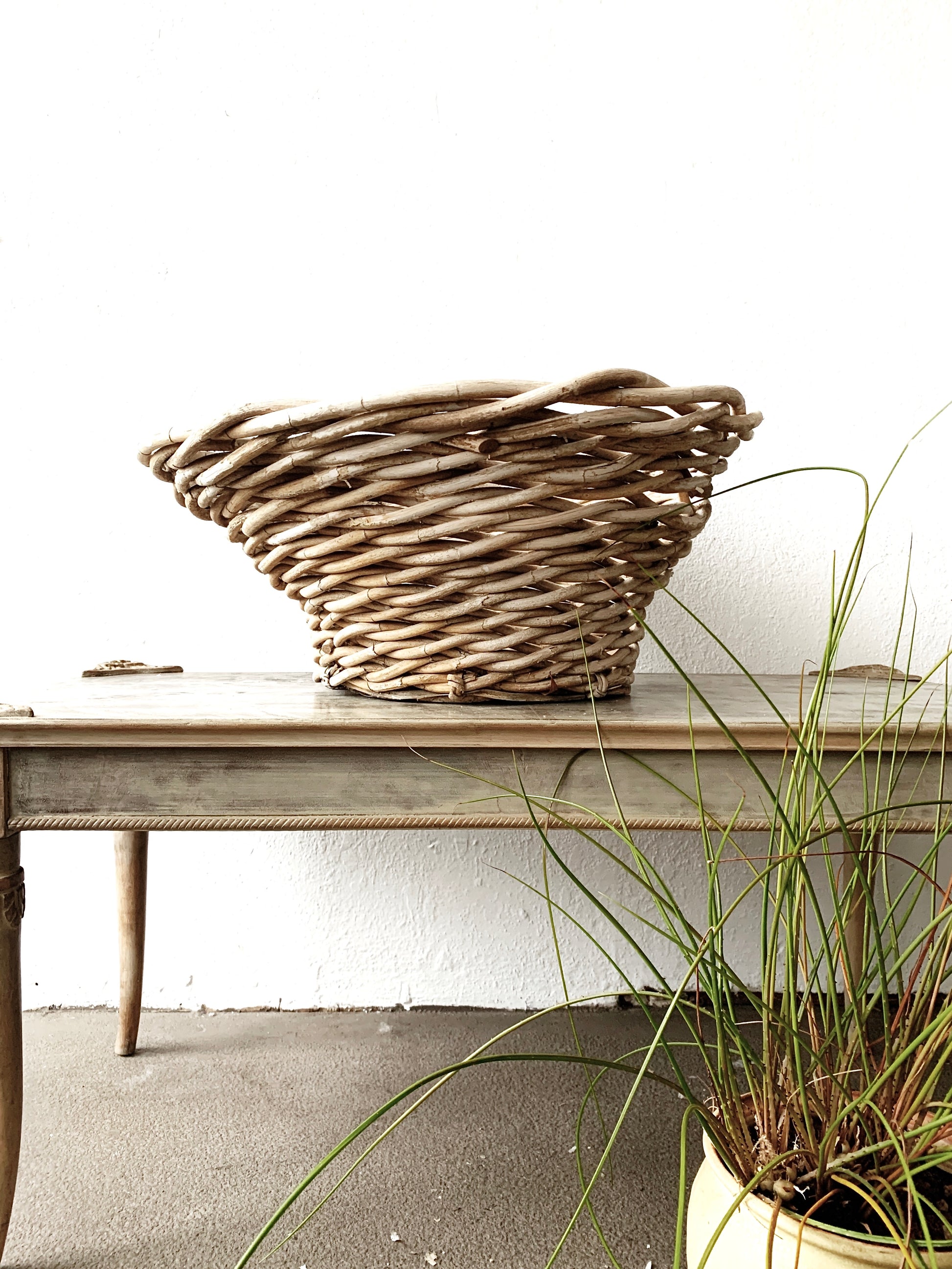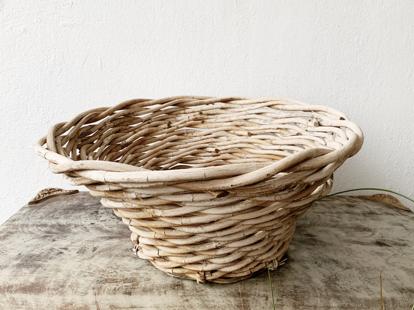 Wonderful organic shape to this handmade basket. Distressed natural pale greyhound, sculptural with the look snd feel of driftwood. Great for holding many things around the house.