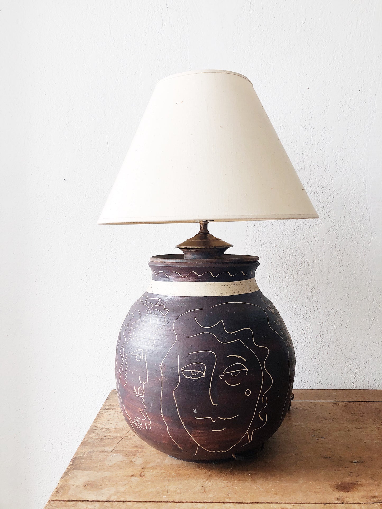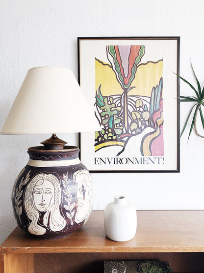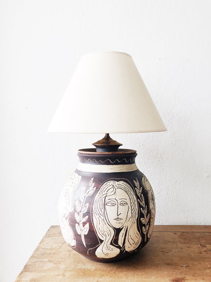 Vintage Handmade Ceramic Face Lamp