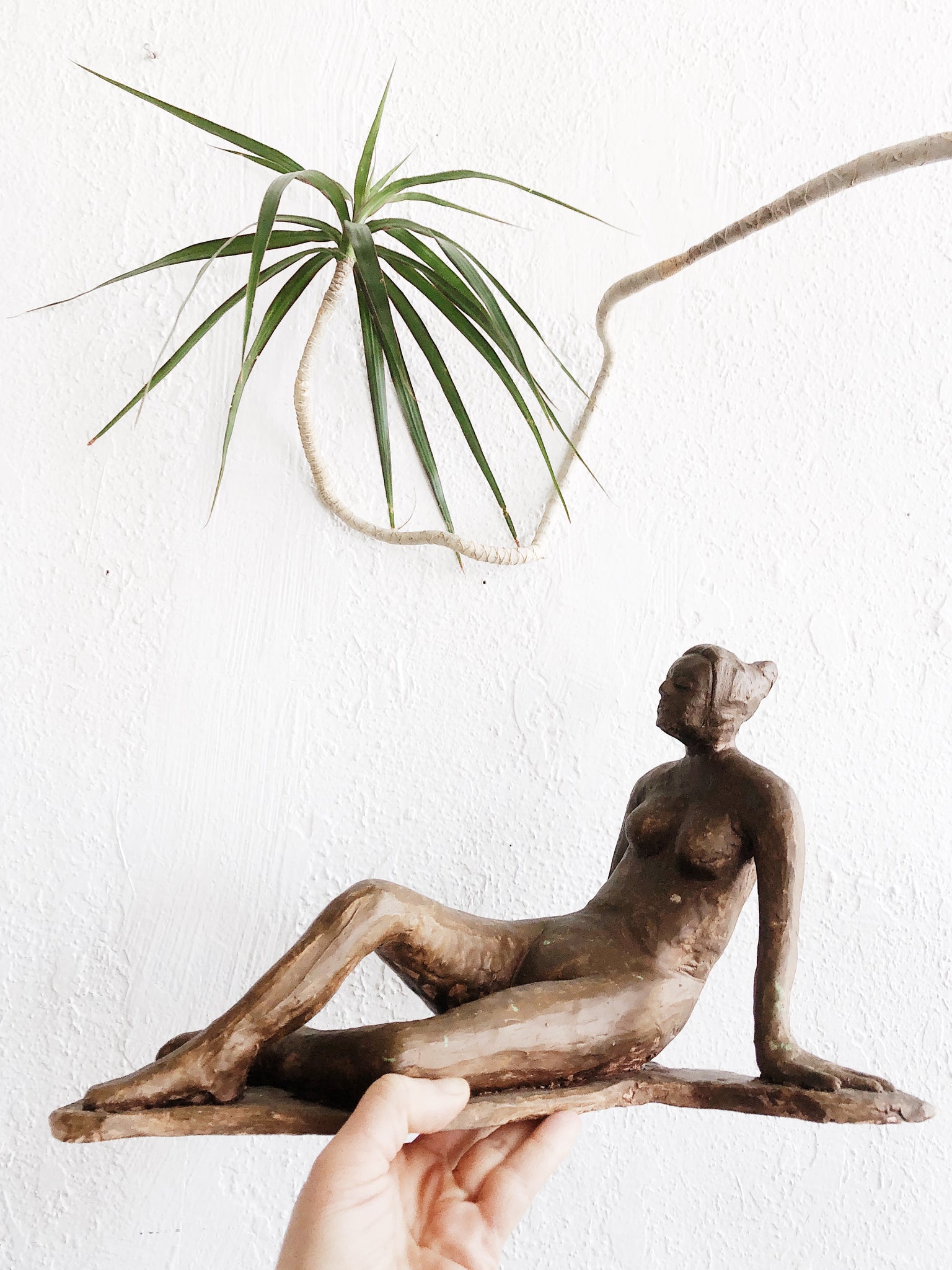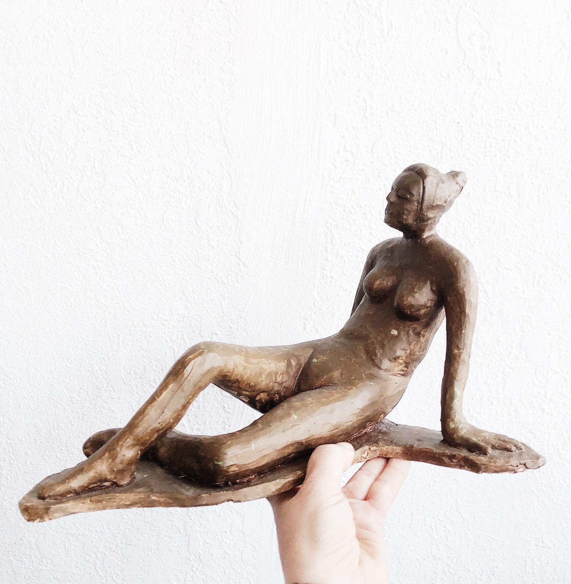 A large and lovely handmade ceramic nude sculpture. Matte finish...this one has beautiful form and expression. Very Dégas