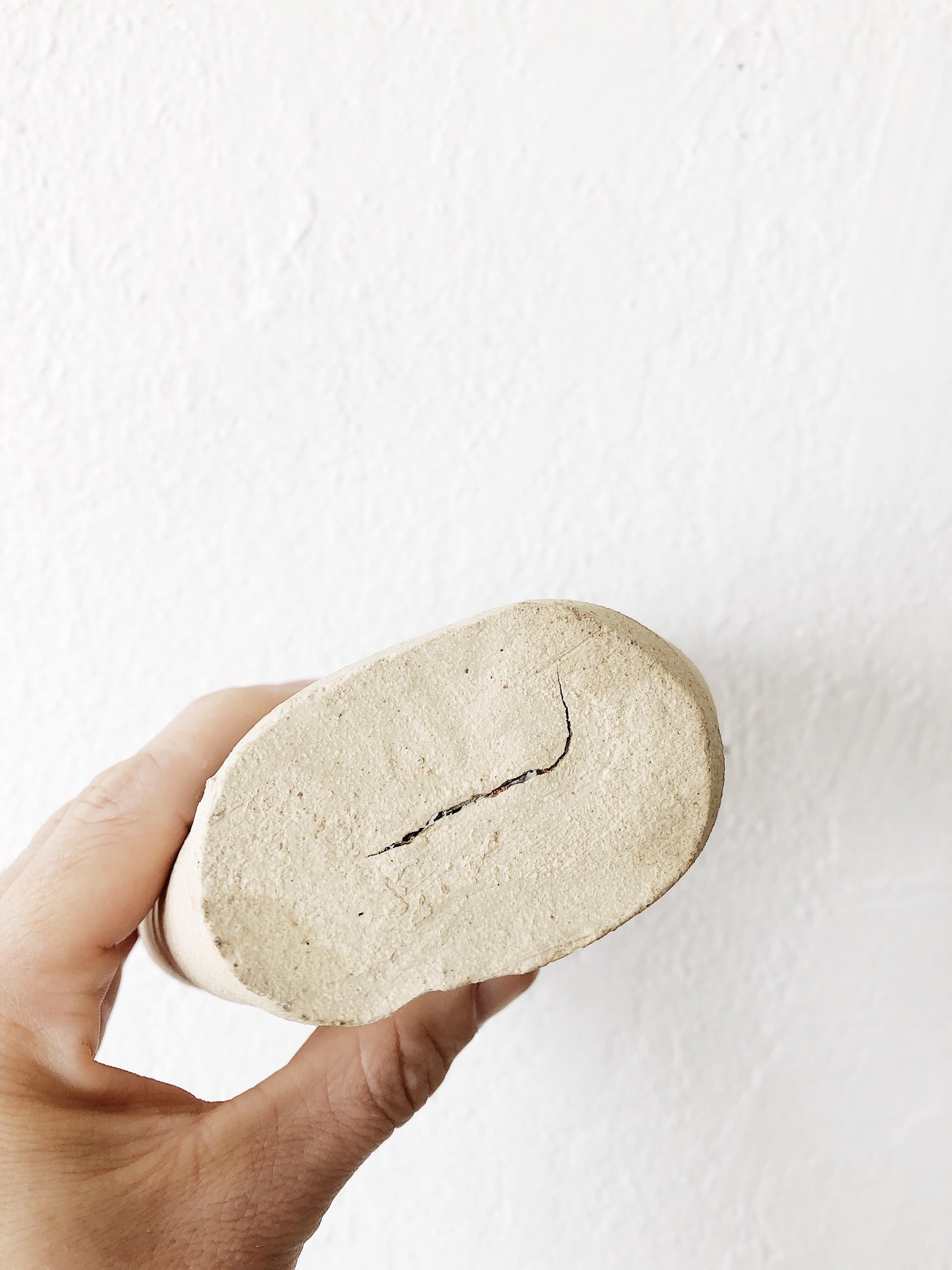 Lovely indigo bamboo and an orange moon. Delicate stoneware vessel in an unglazed ecru. Unique shape. Notice the kiln crack... doesn’t compromise the piece but this will not hold water