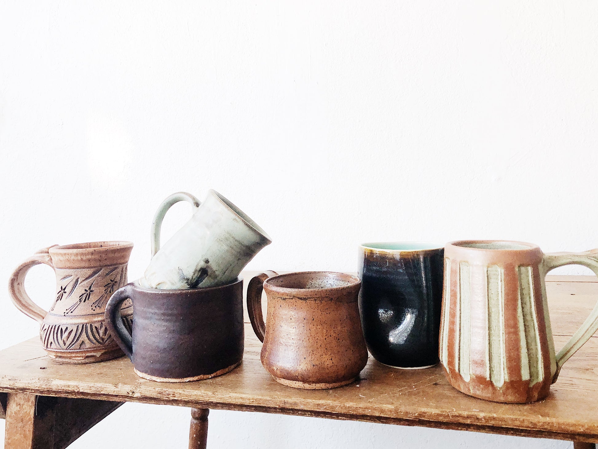Vintage Handmade Stoneware Studio Mugs