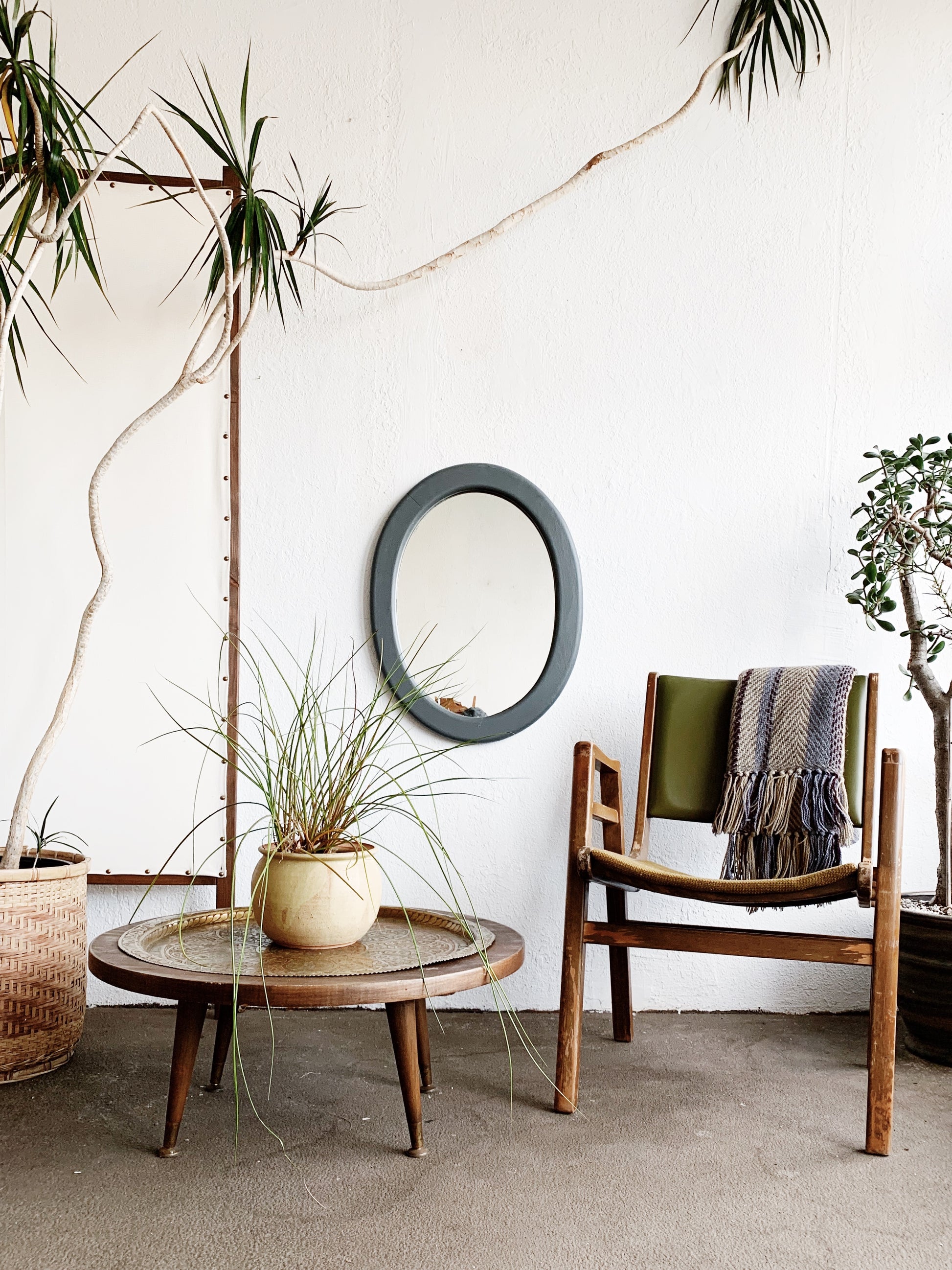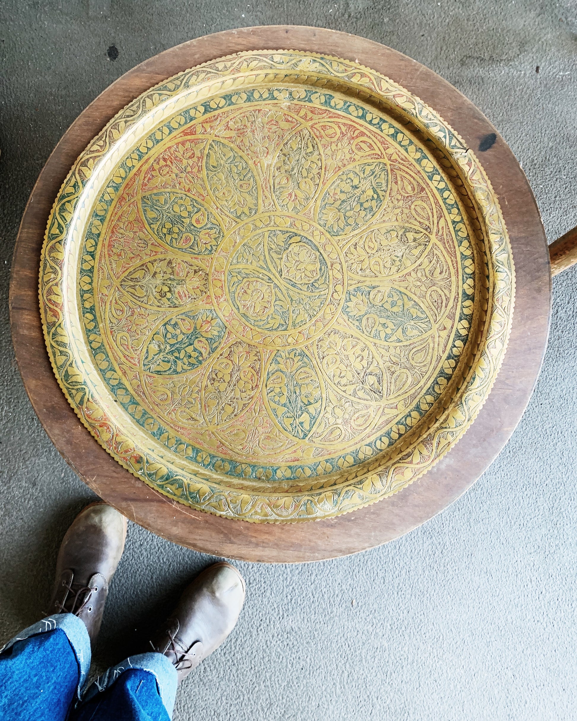 Vintage Handmade Table With Incised Brass Tray