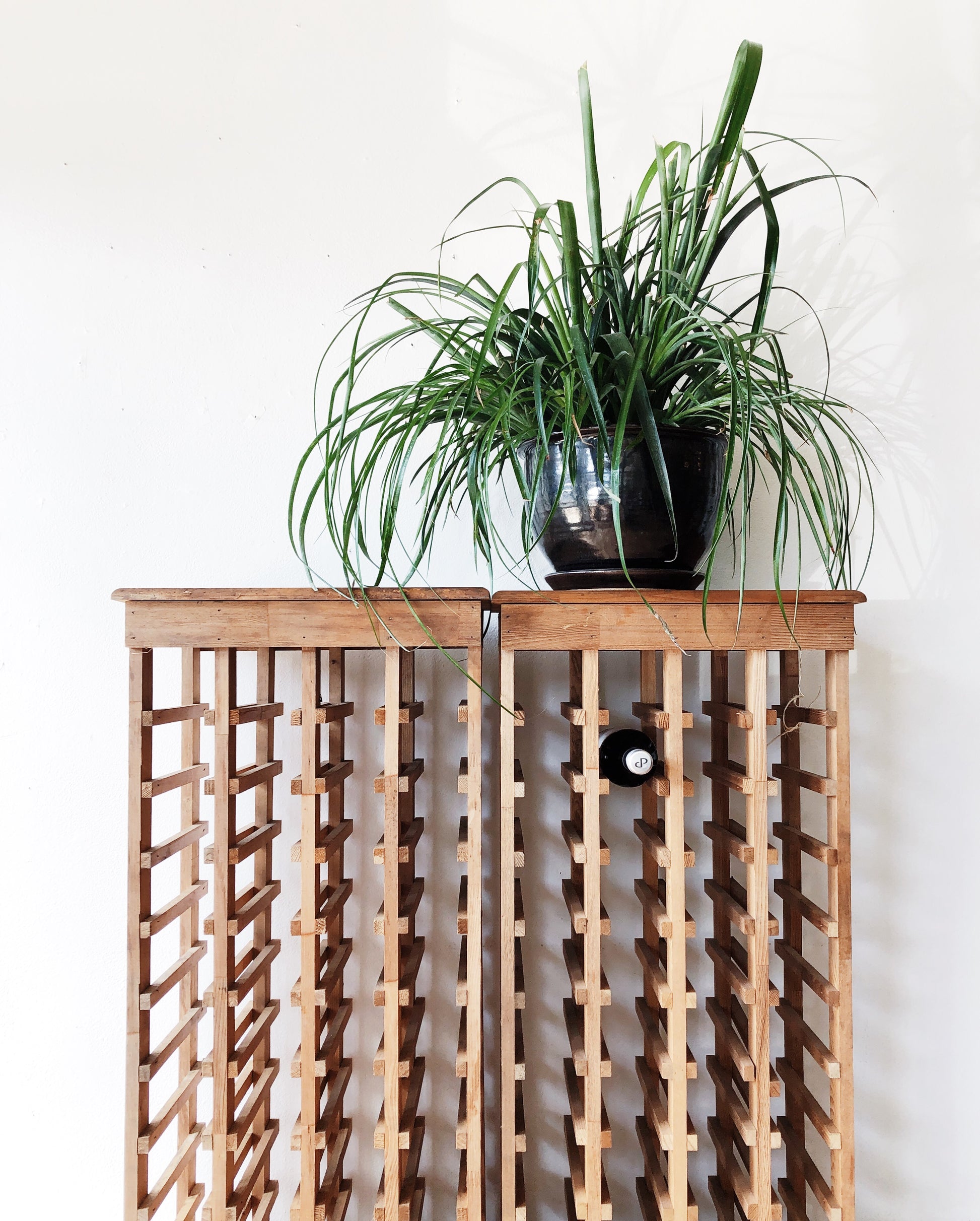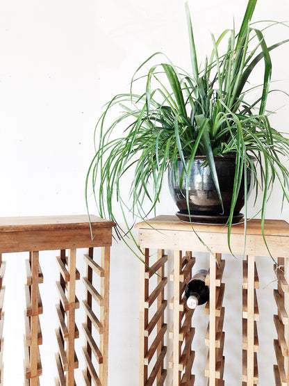 Really well made vintage wine racks. These have a natural rustic look. The addition of the surface on top for plants is perfect!