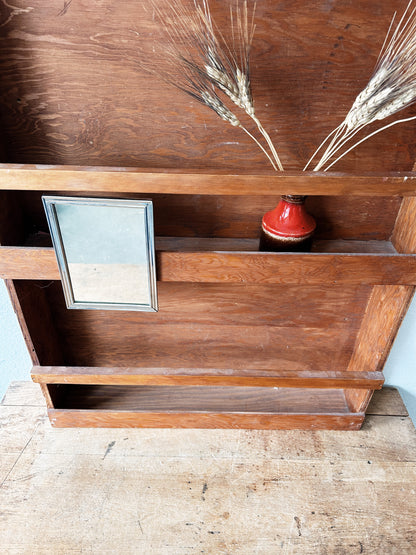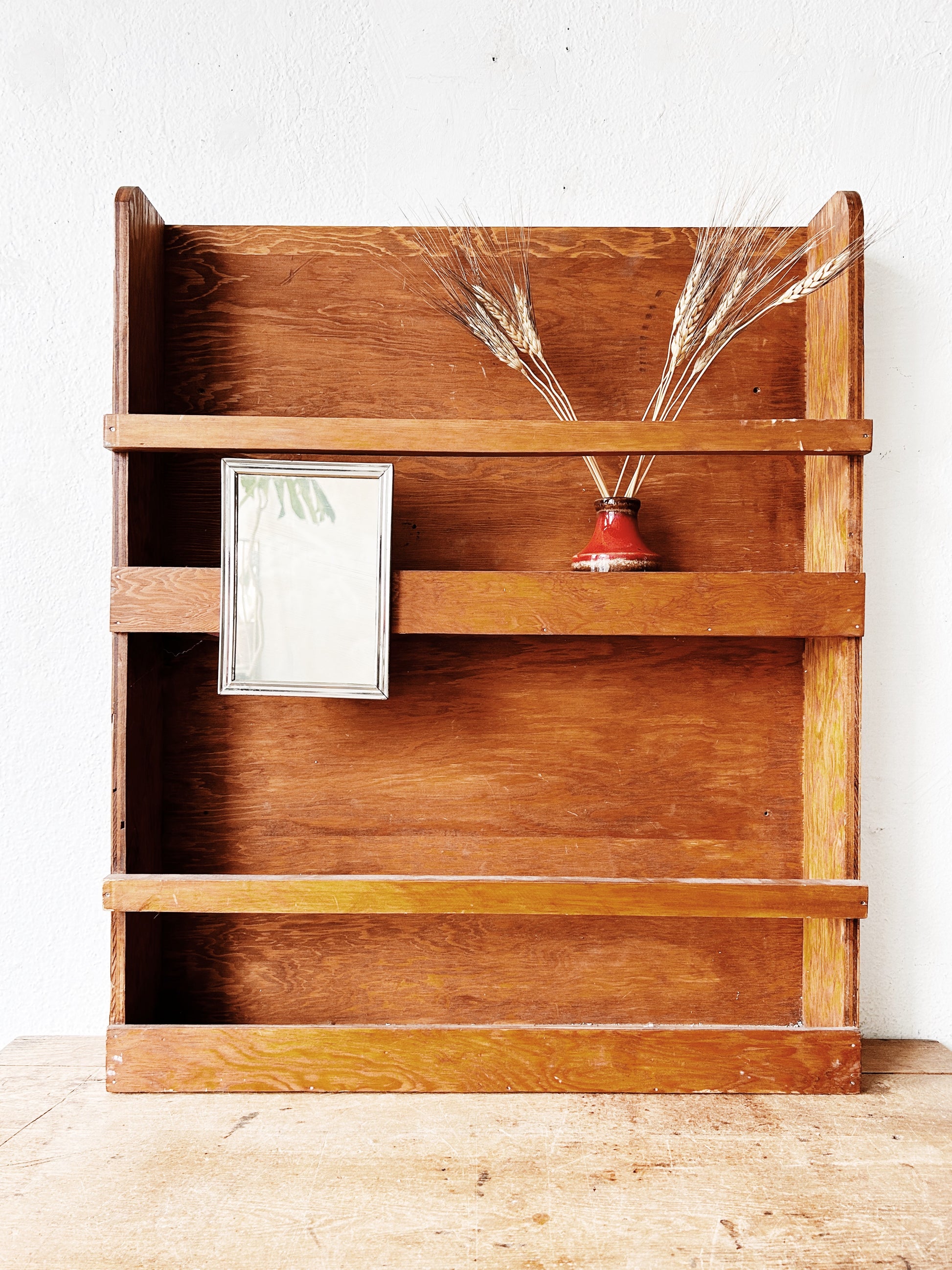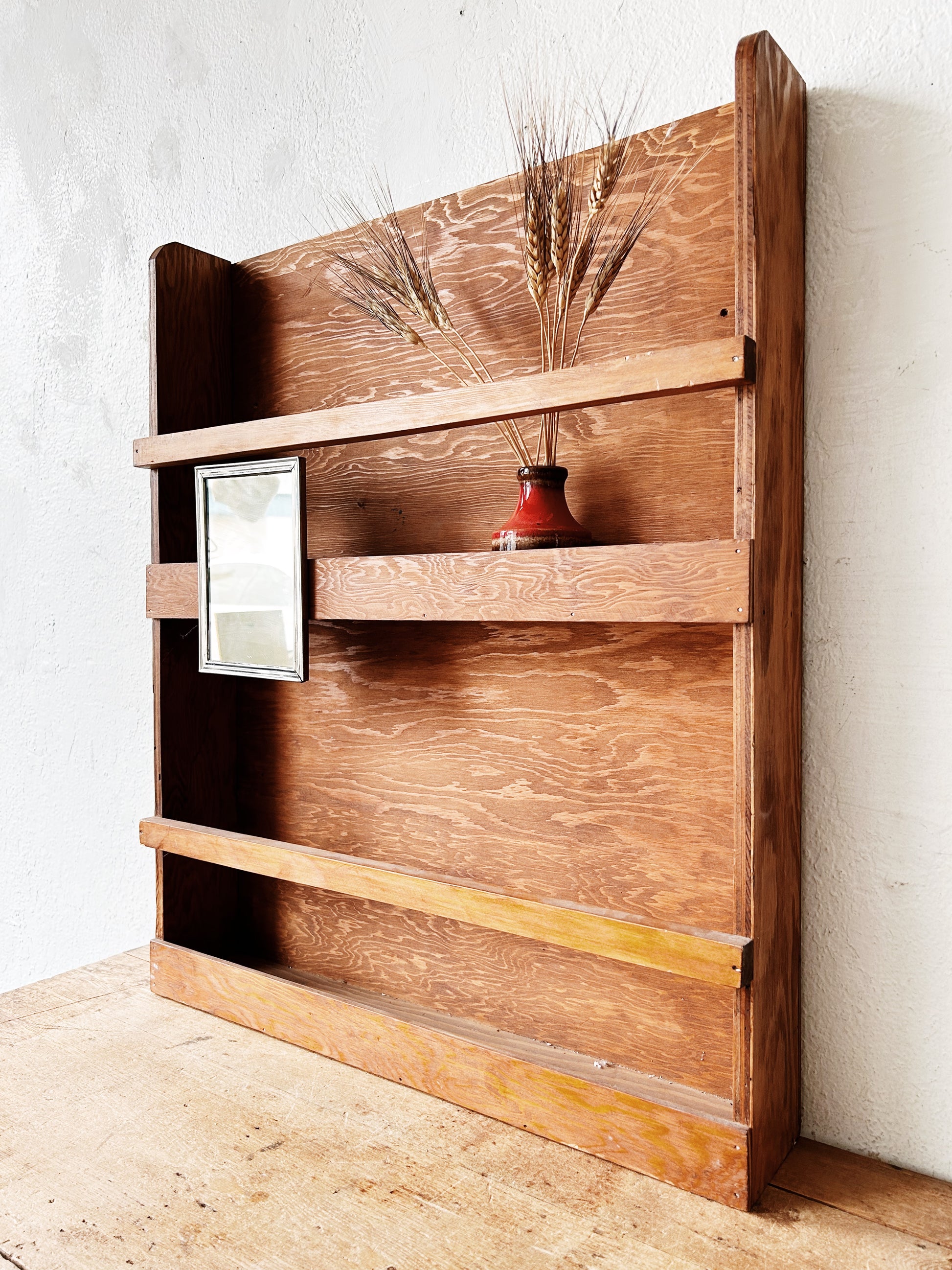 Vintage handmade ply double shelf in a nice larger size and that modern craft vibe were all crazy for. Sturdy- great in the kitchen/bathroom/entry ! Has holes for easy hang. A great piece.