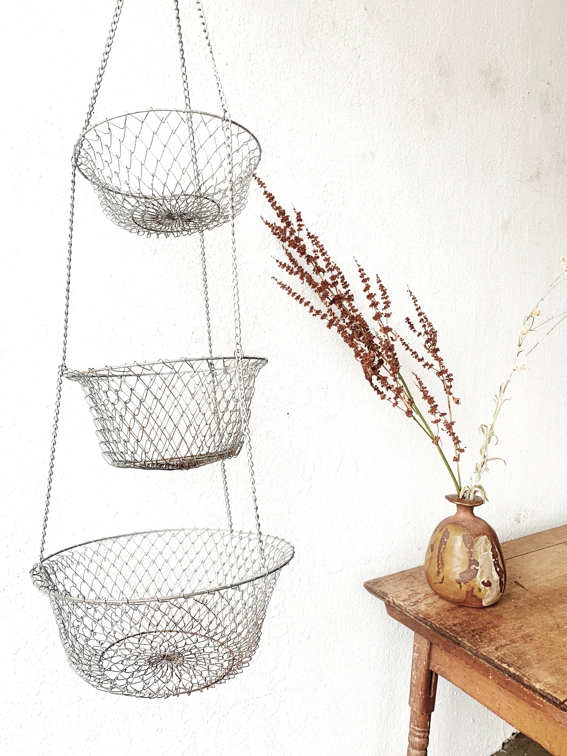 Fantastic larger sized galvanized metal hanging baskets. Nice aged patina including a little rust