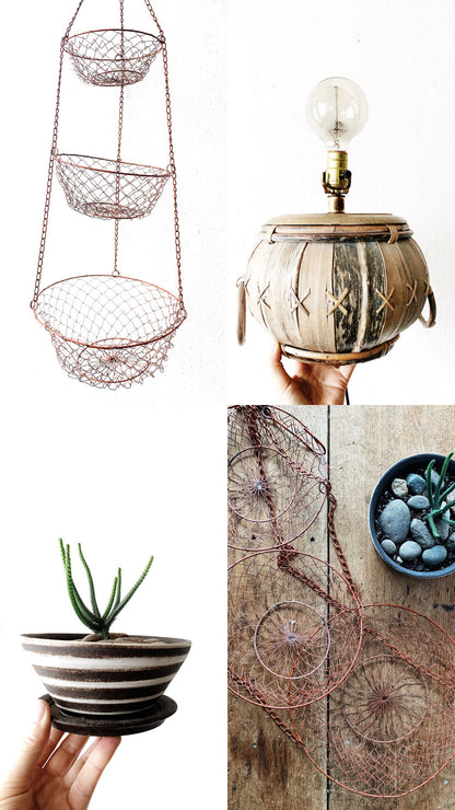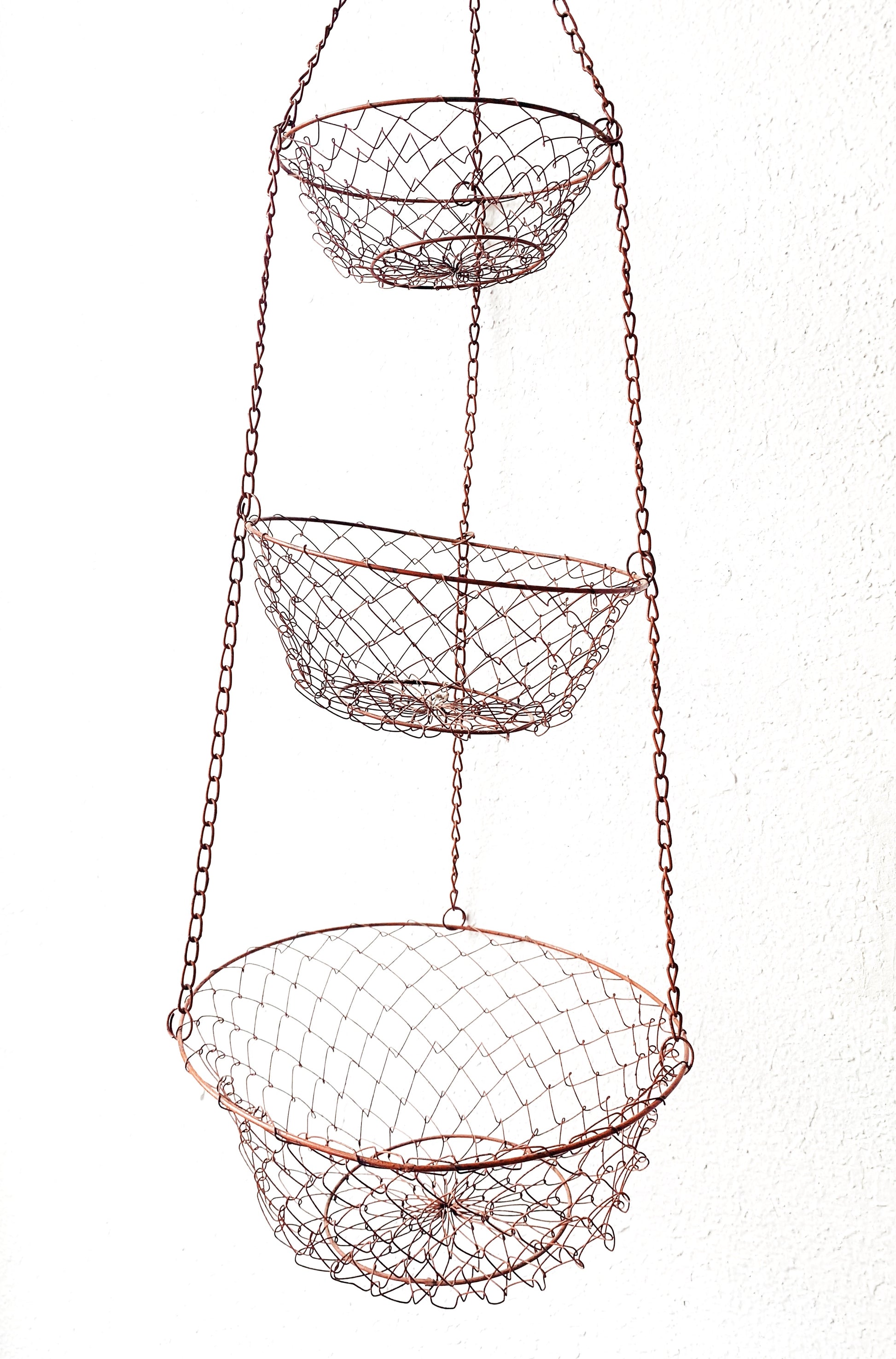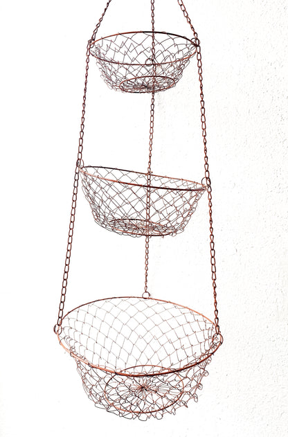 Classic vintage hanging fruit basket in a great dark terra cotta. These are useful in other rooms too, like the bathroom!