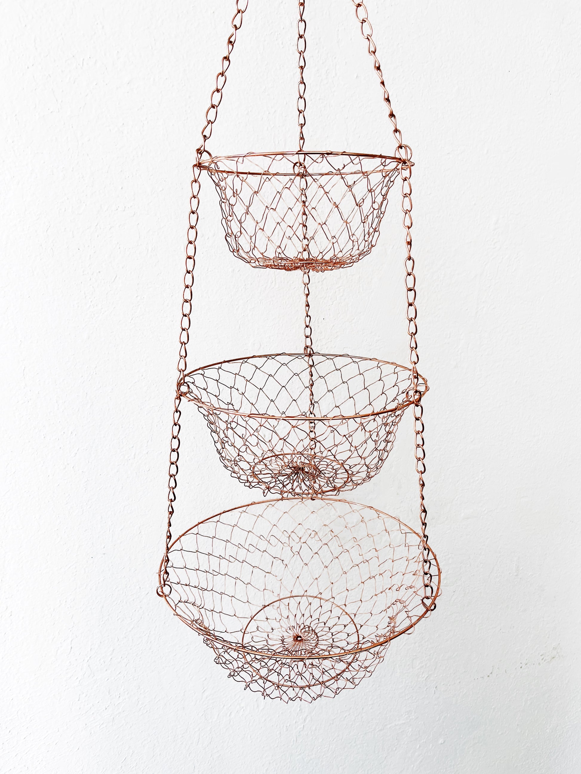 Classic vintage hanging fruit basket in copper! These are useful in other rooms too, like the bathroom