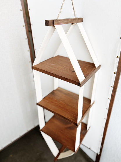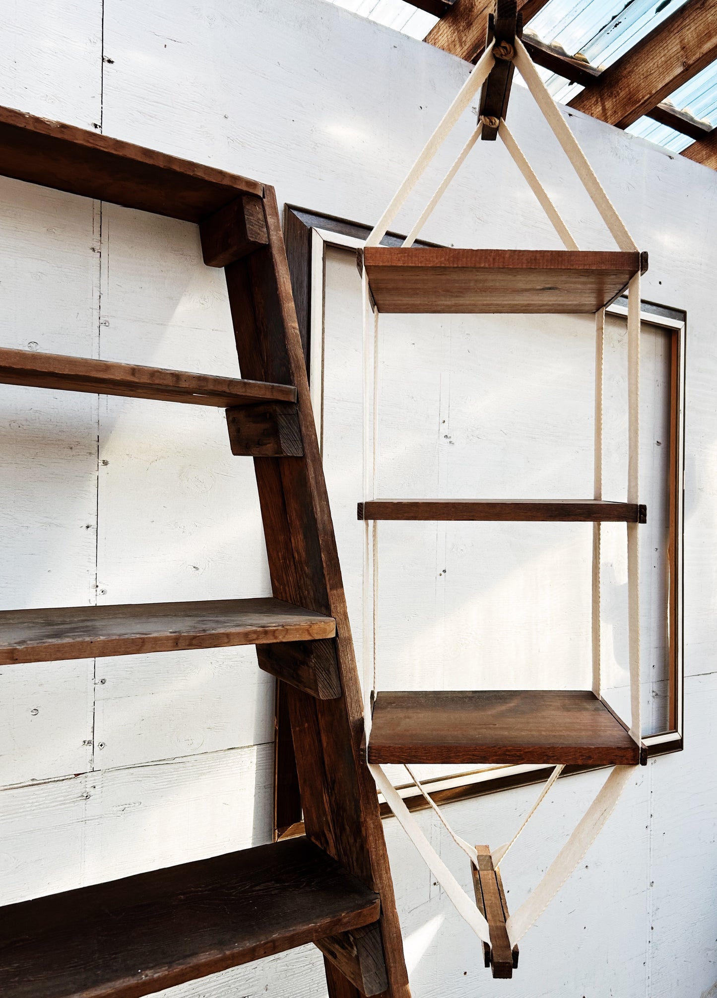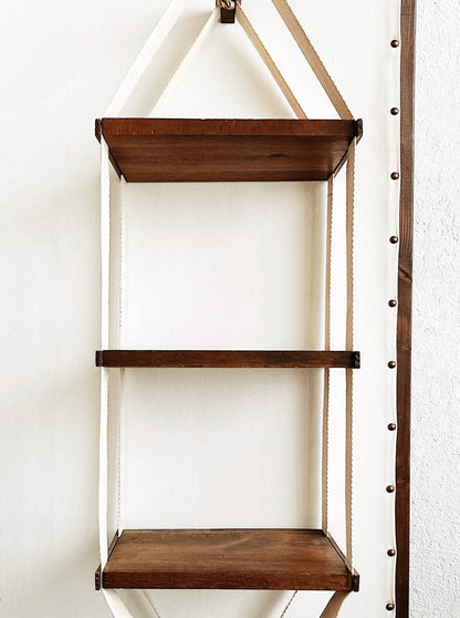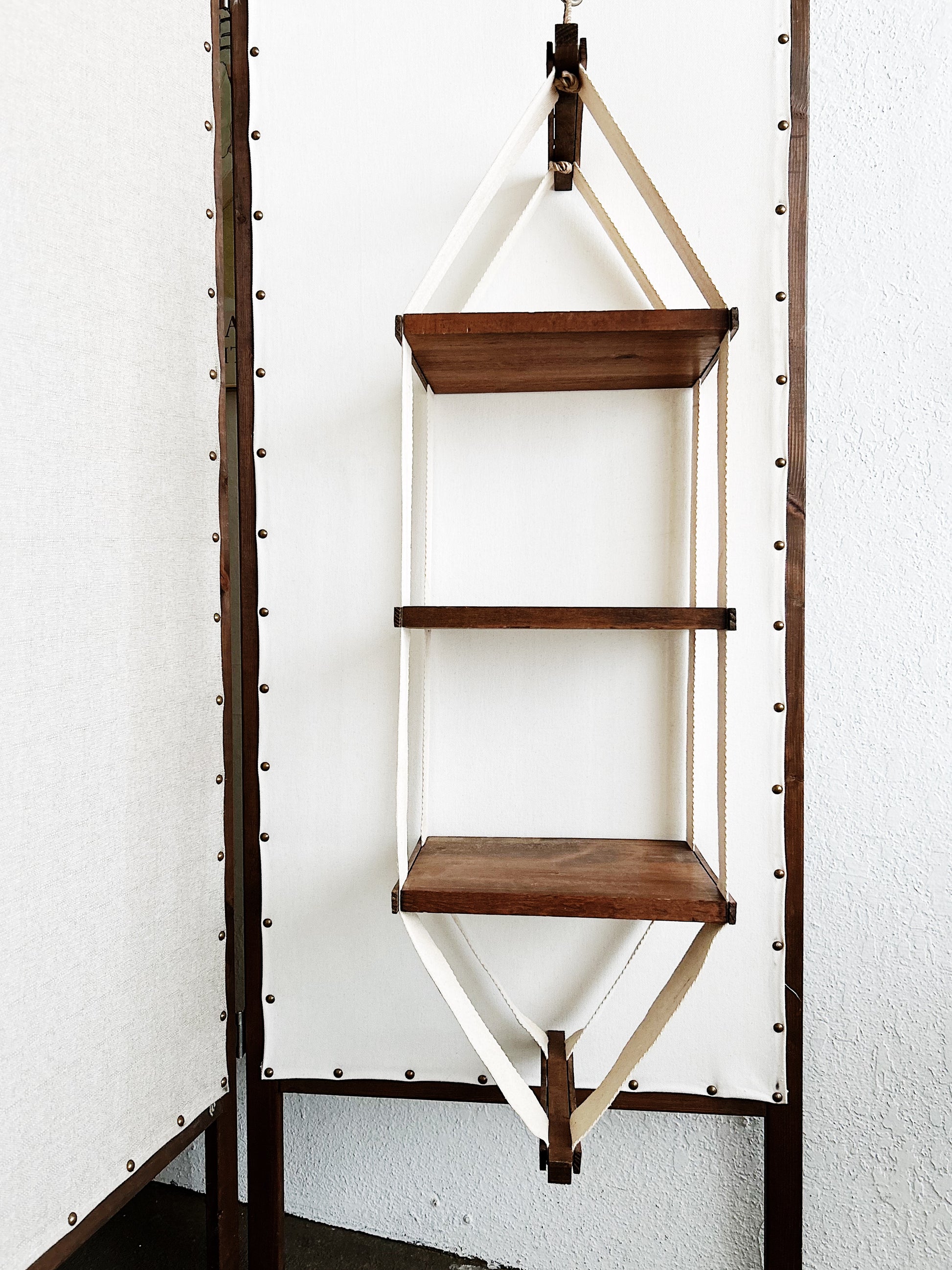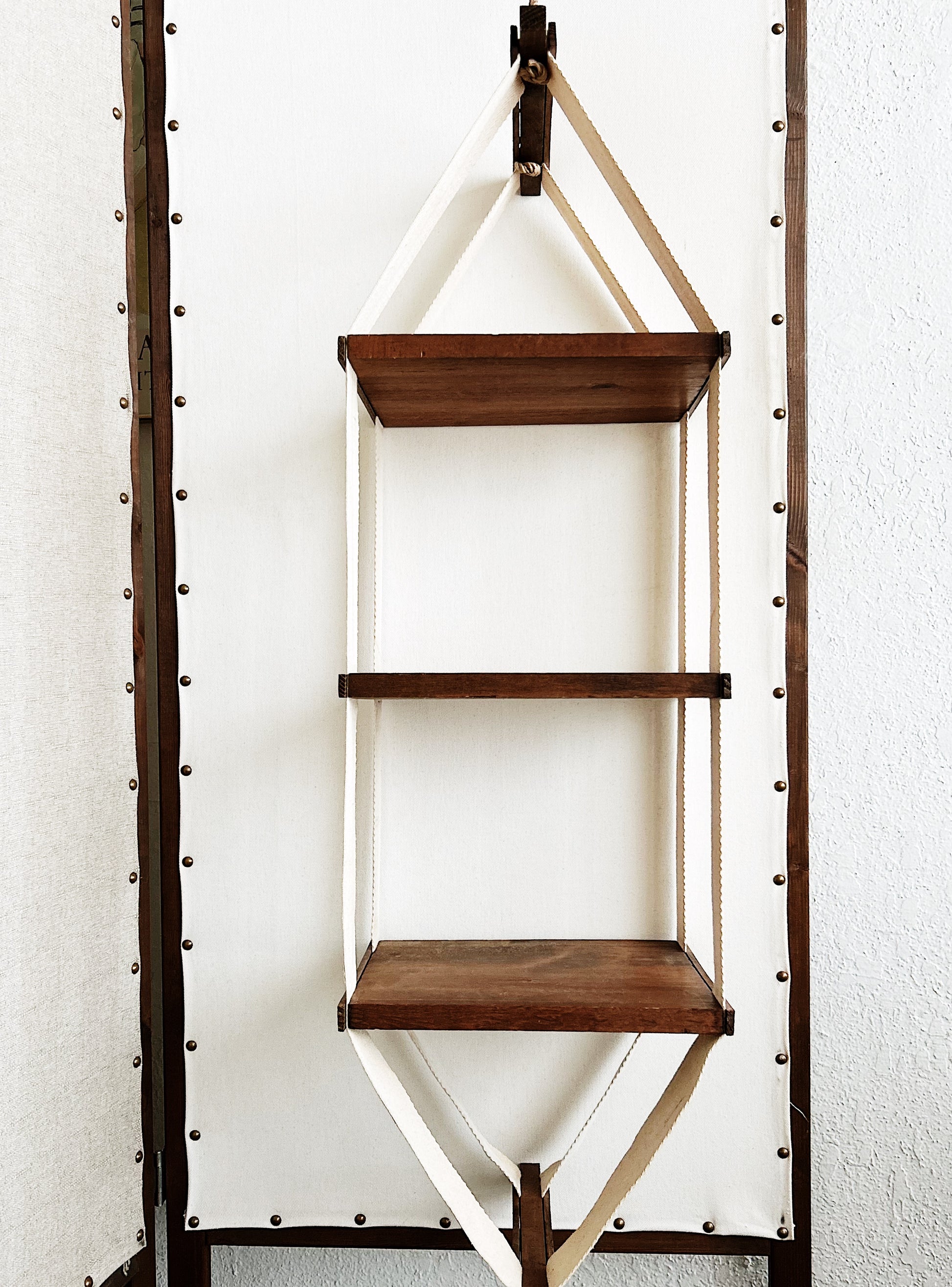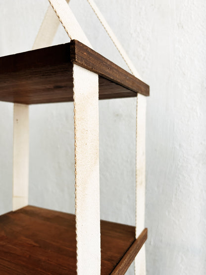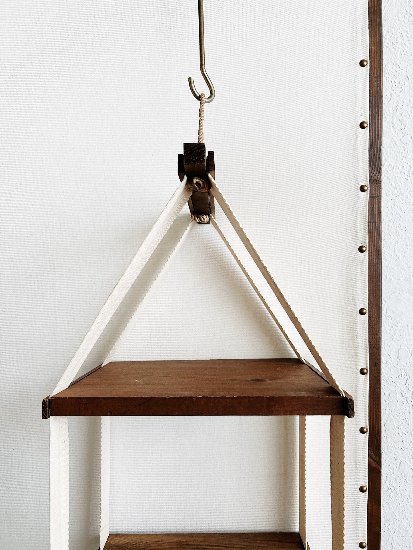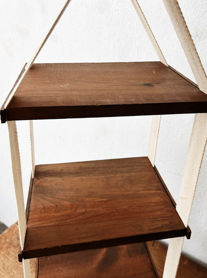 Great vintage hanging wood shelves, held together by ivory cotton twill tape. In nice condotion with minor wear to the cotton.