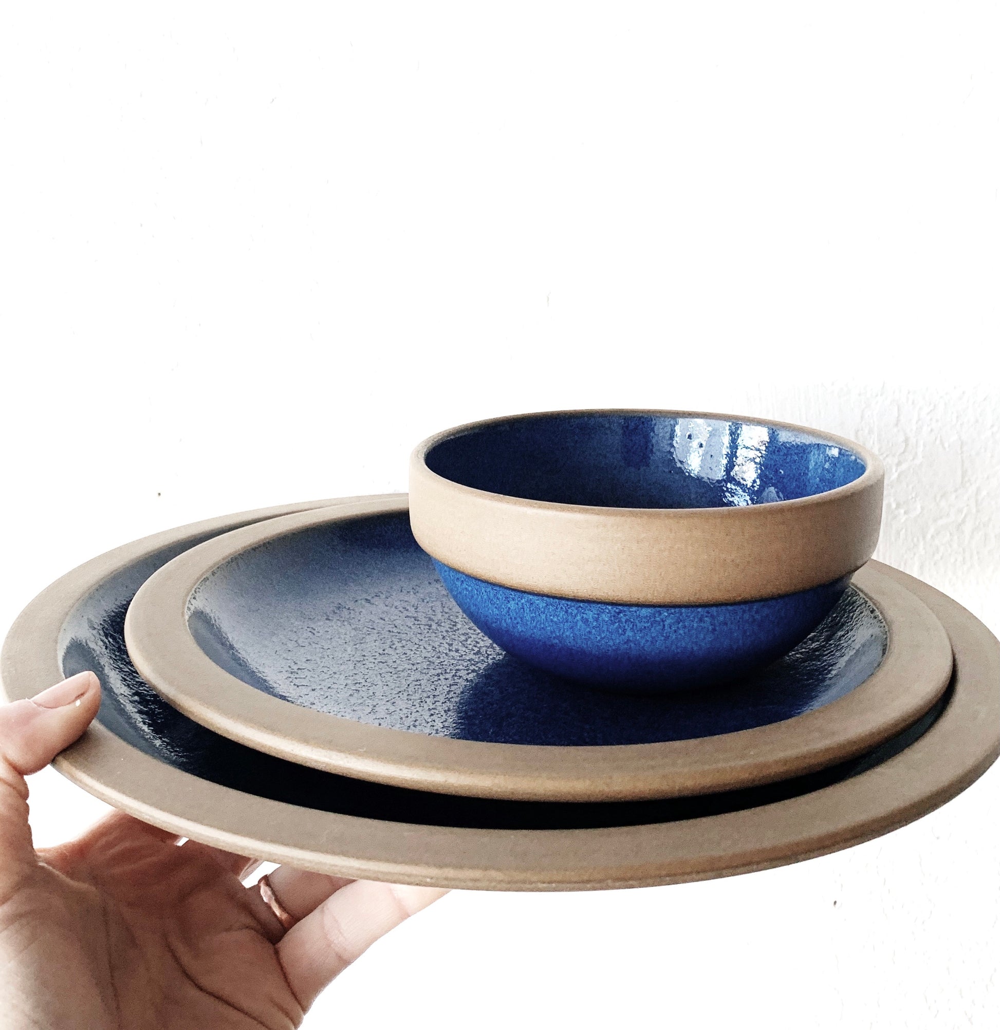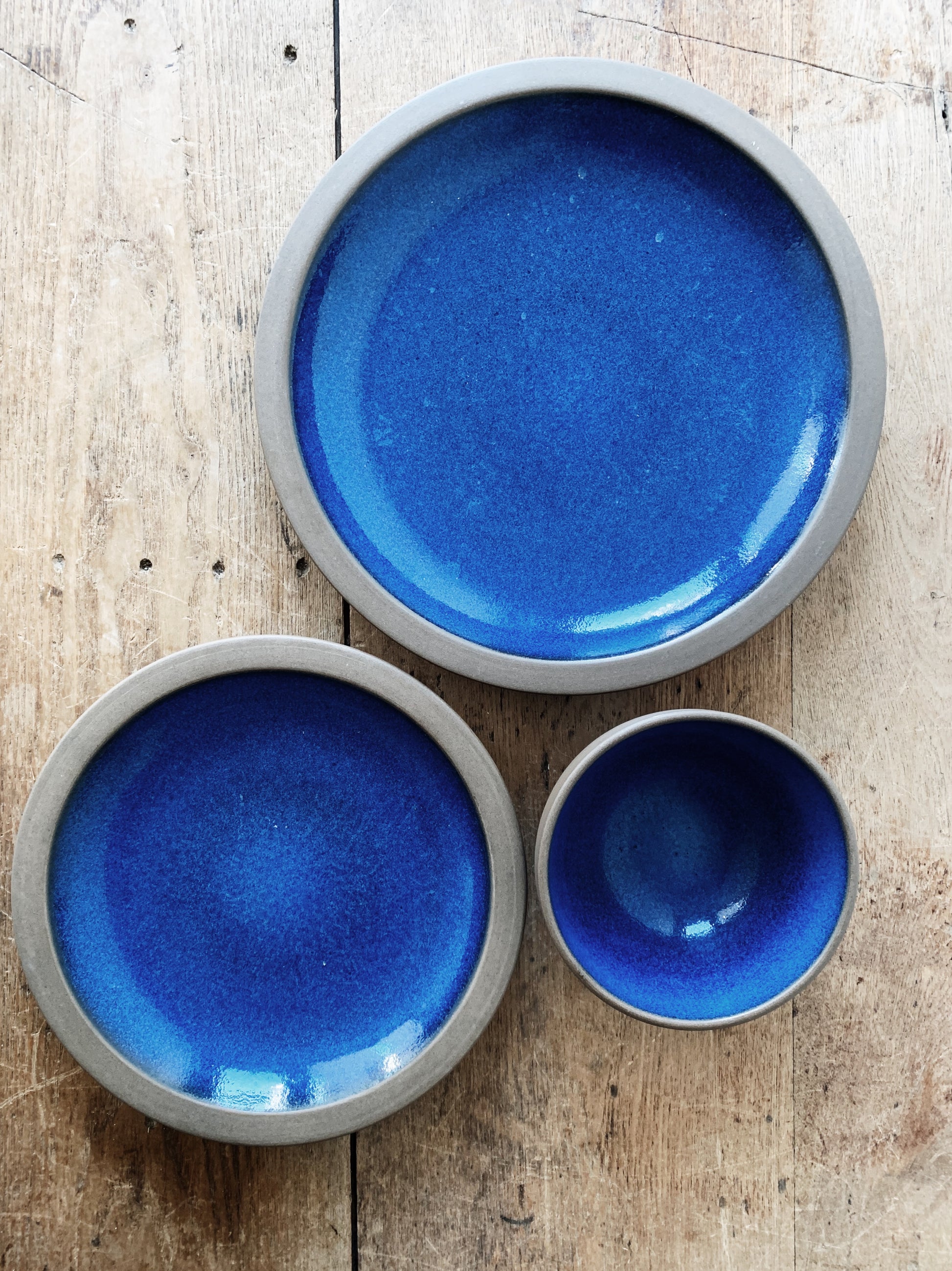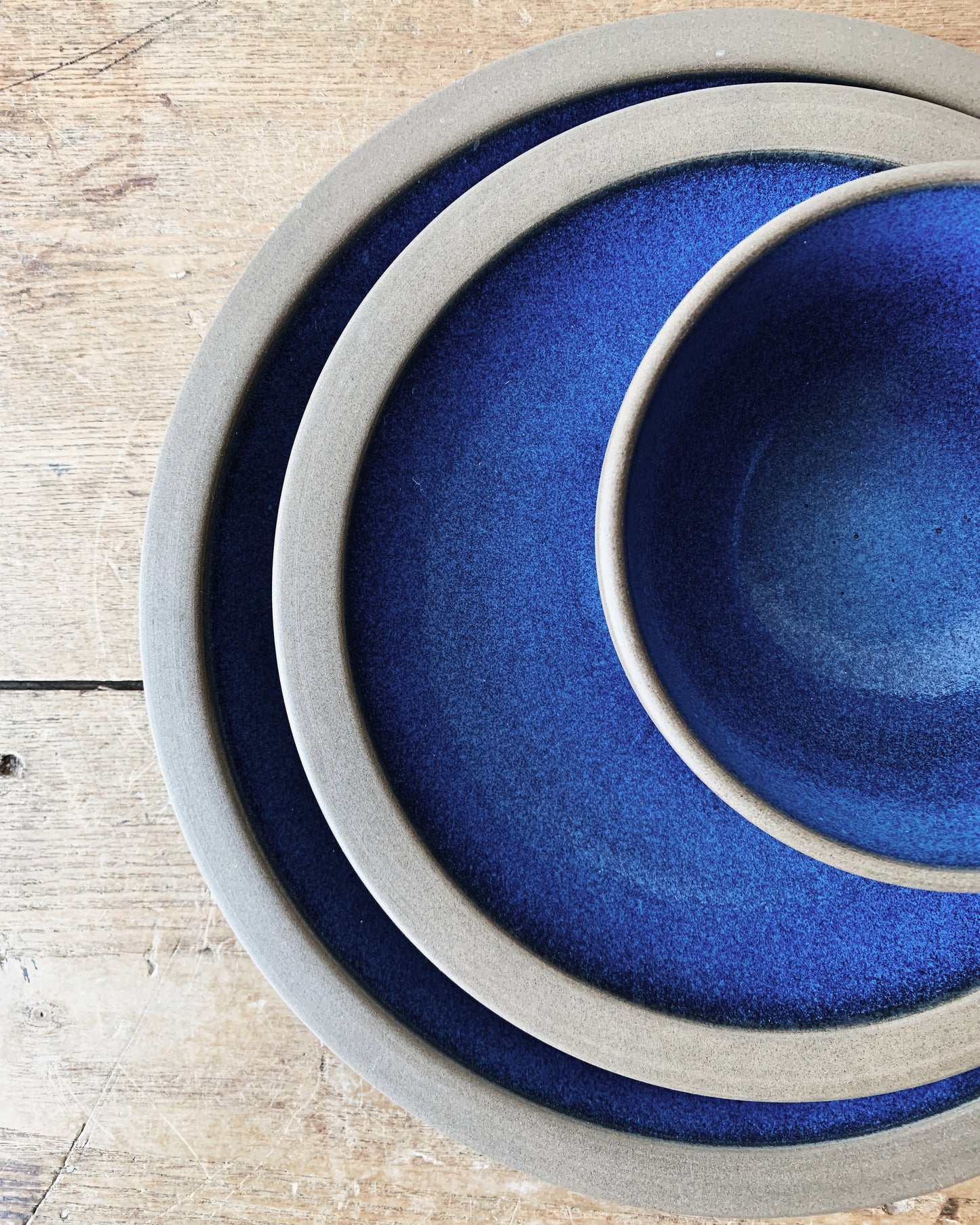 And all-time favorite. Vintage stoneware dish set by Heath ceramics circa 1960. The pattern is called Moonstone. Still in production today. Gorgeous deep cobalt glaze and dark matte clay underside and rim.