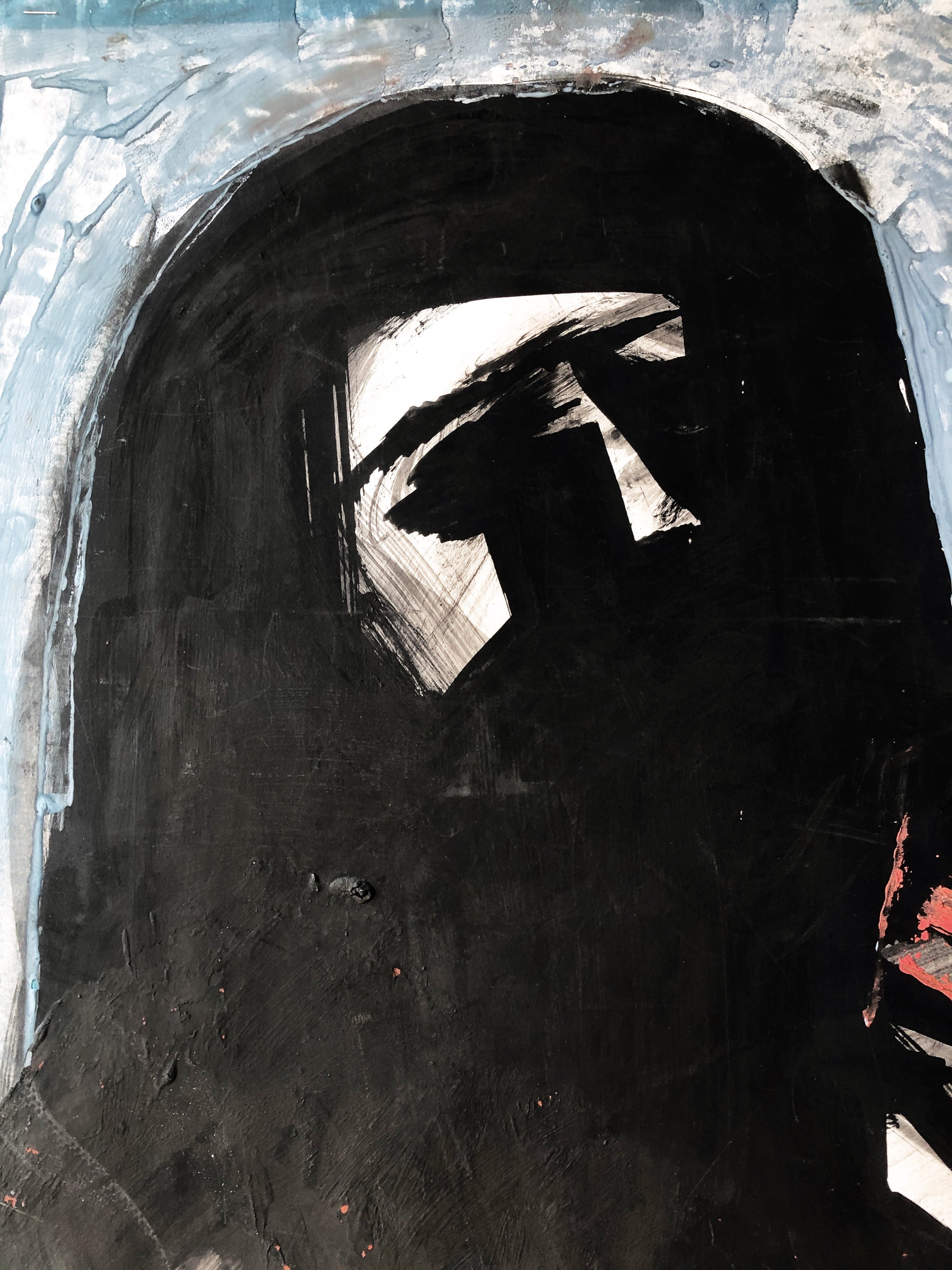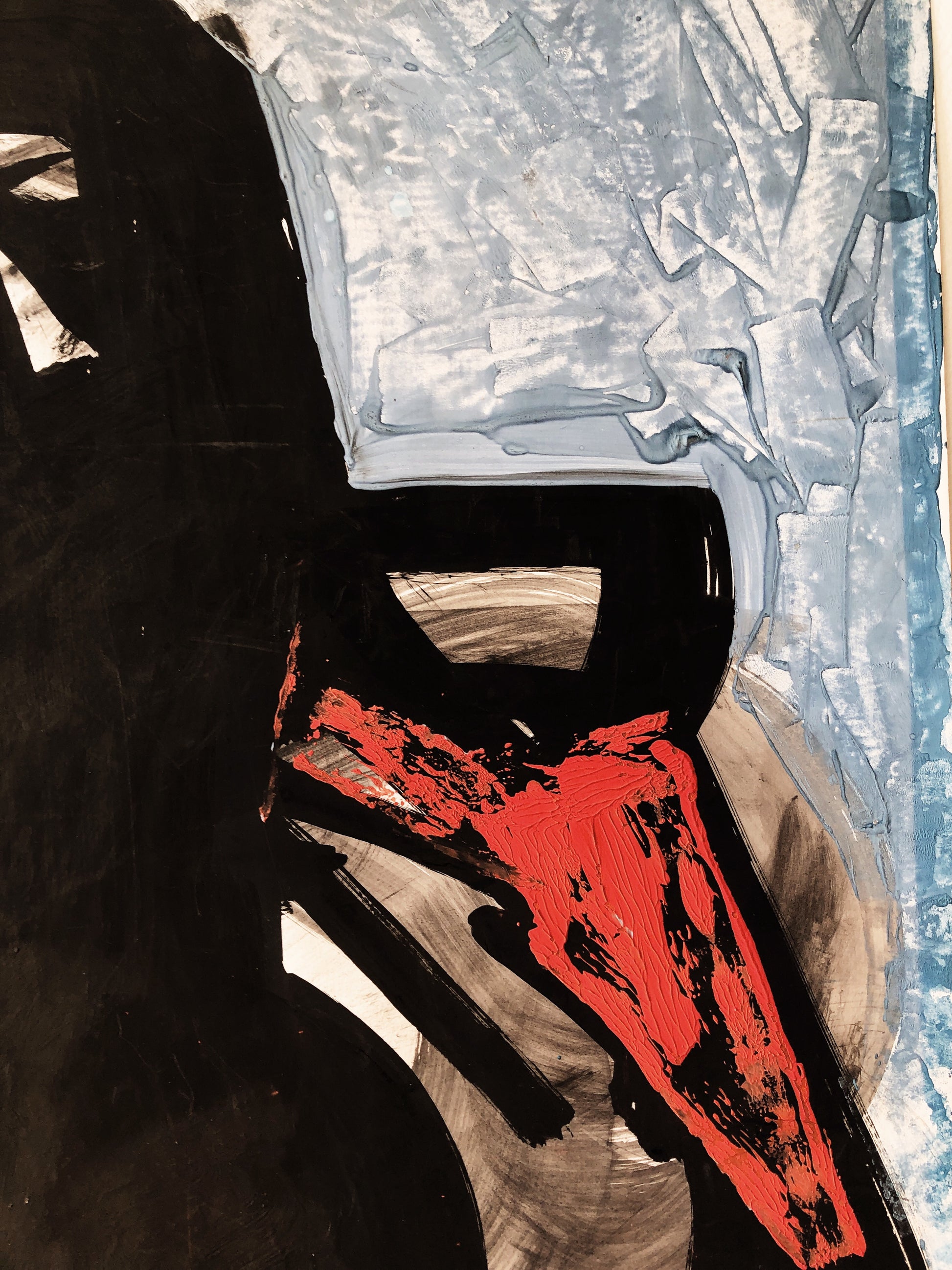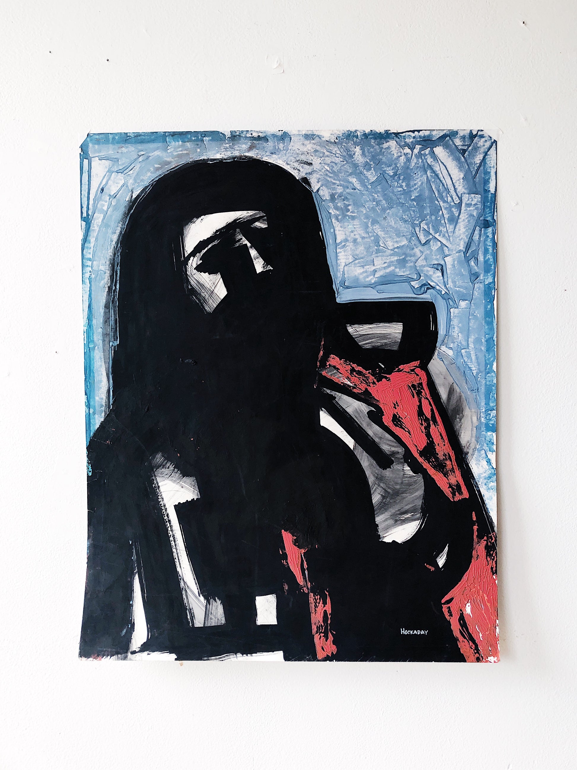 One of a collection of vintage paintings created by Hockaday. Large scale and with multi mediums and fantastic use of color. This one is an abstract acrylic and watercolor painting on heavyweight art paper