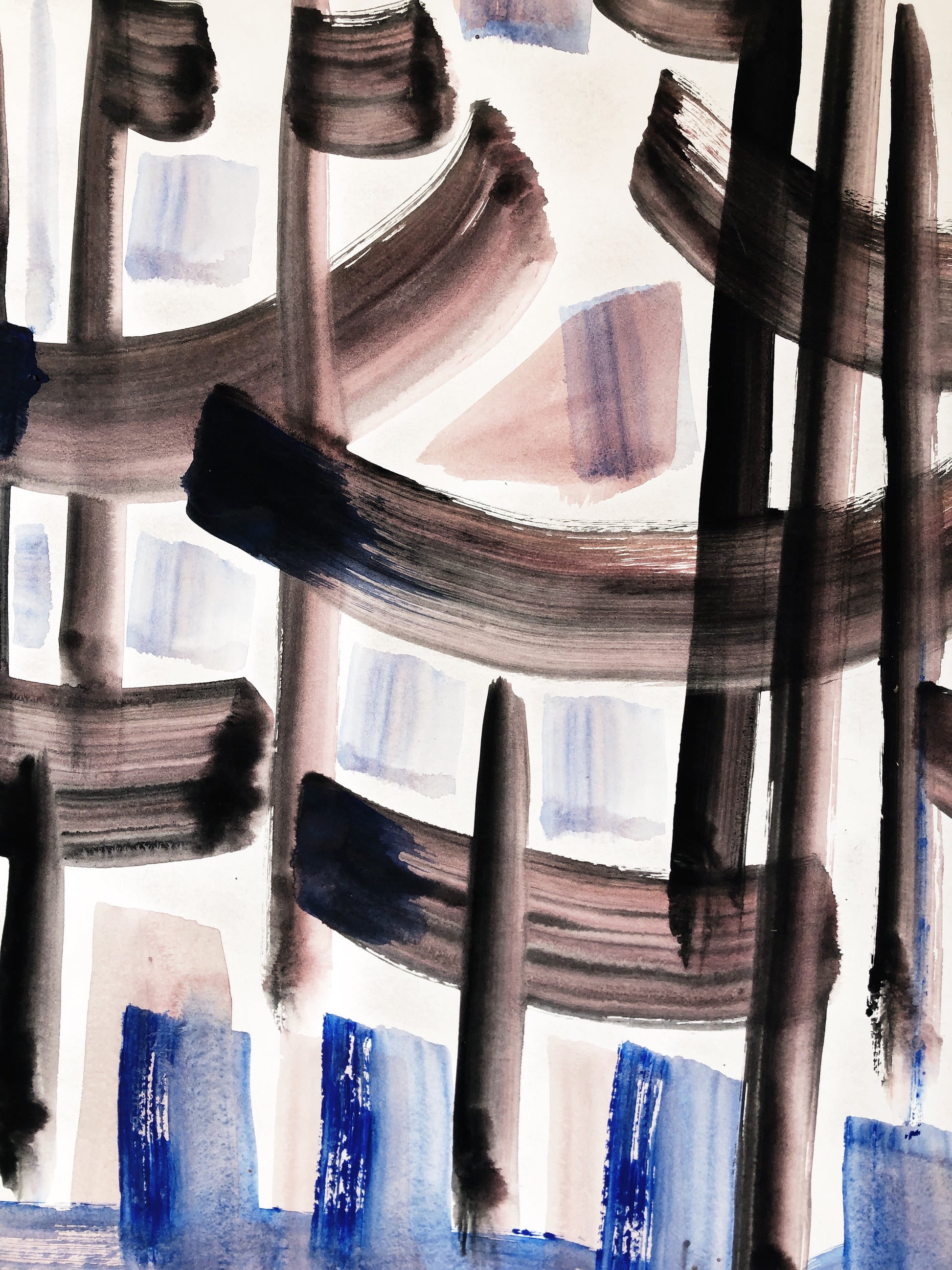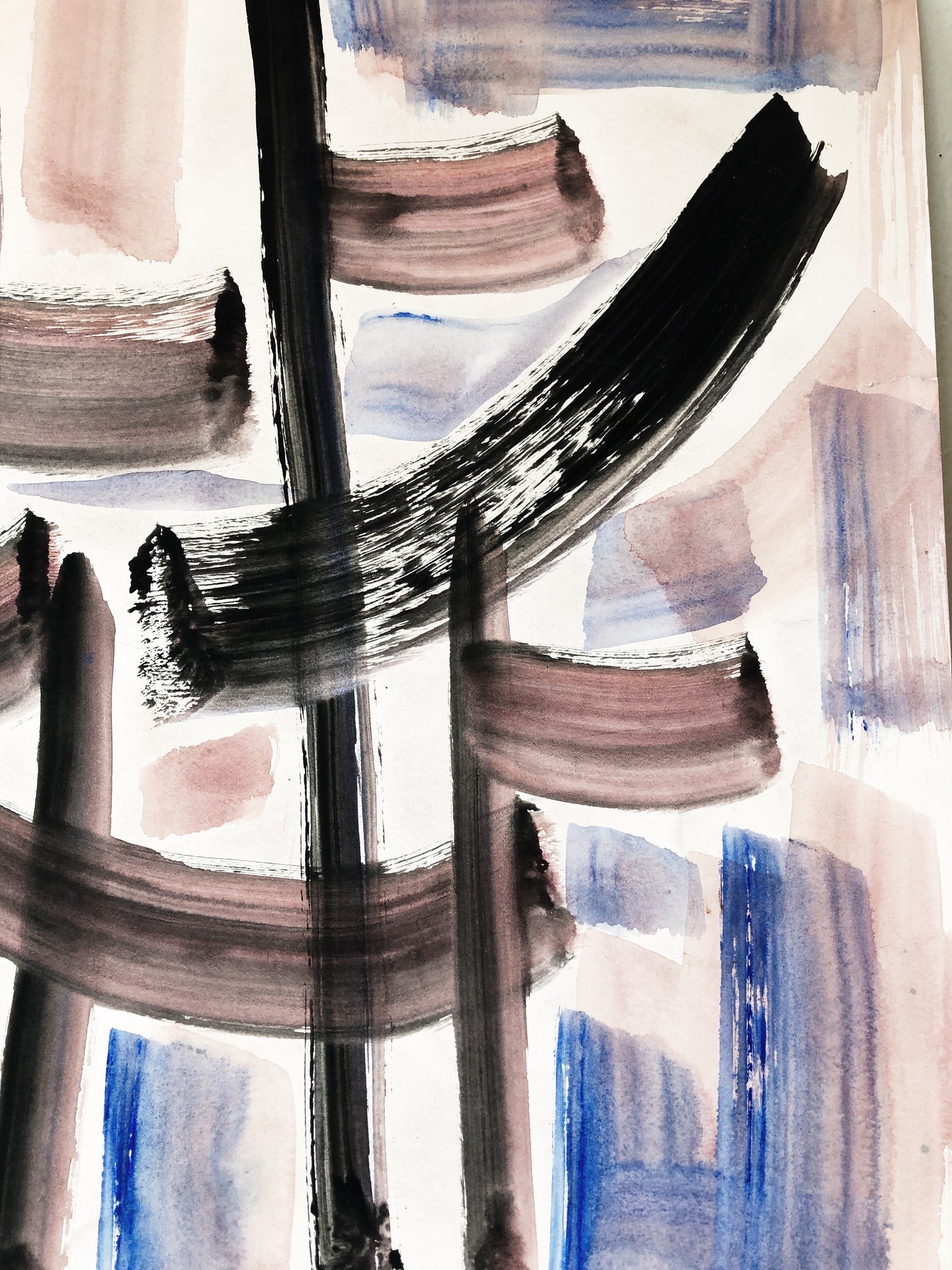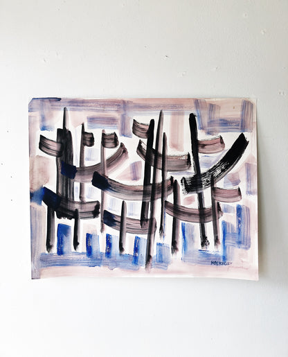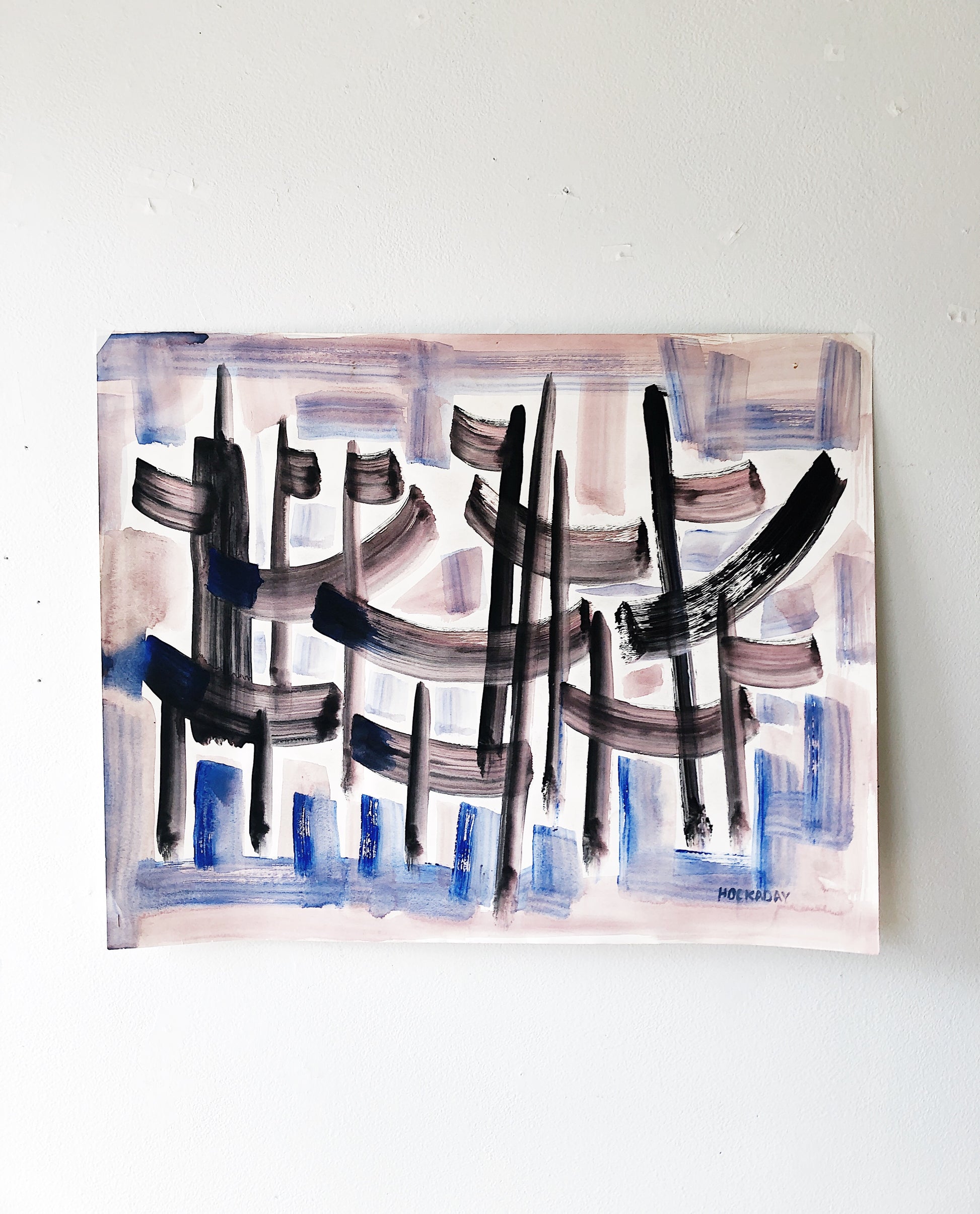 One of a collection of vintage paintings created by Hockaday. Large scale and with multi mediums and fantastic use of color. This one is an abstract acrylic and watercolor painting on heavyweight art paper