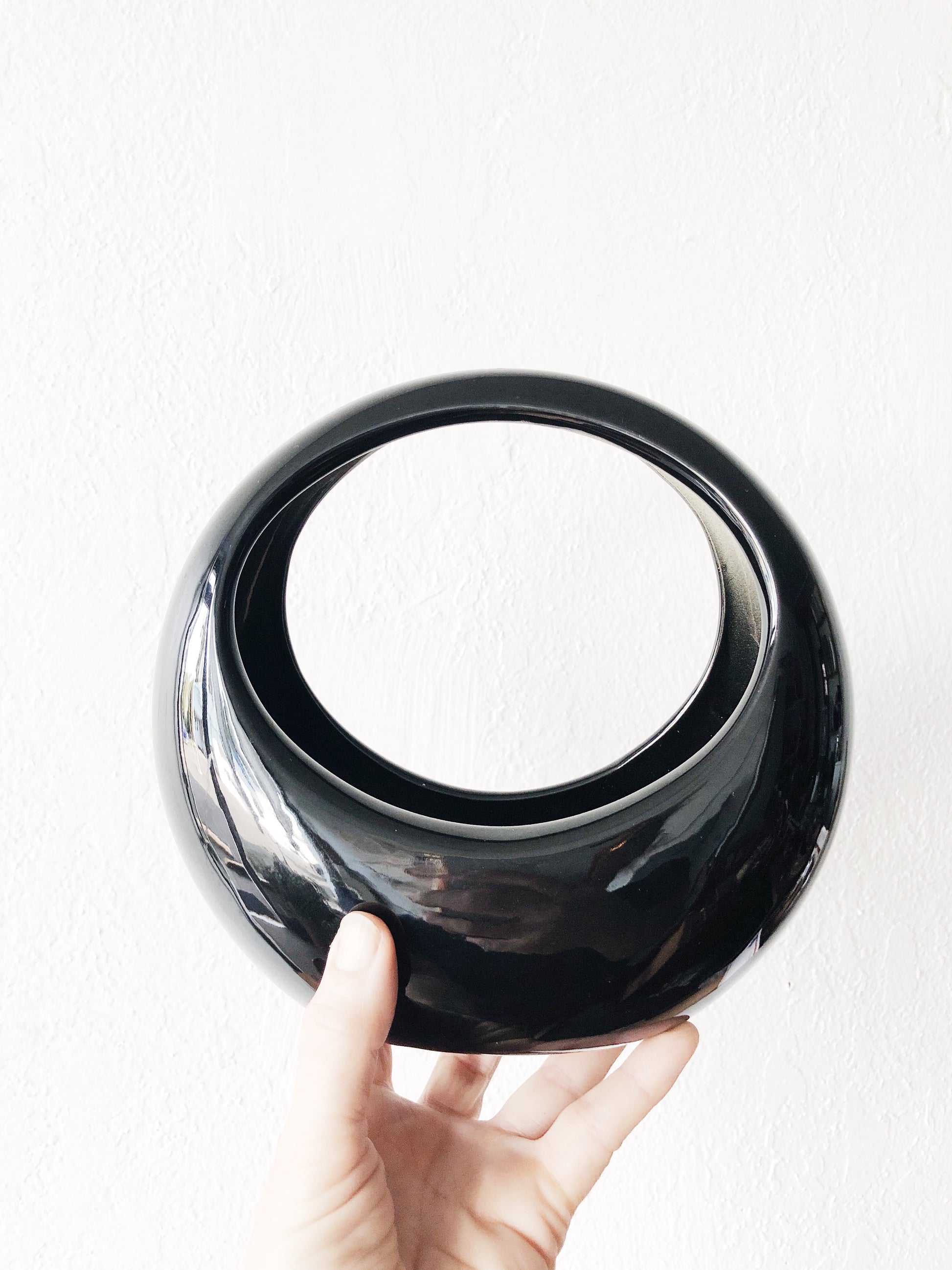Fab gloss black ceramic circular planter. Hang it or let it rest. Use as an Ikebana vase for arranging pretty blooms