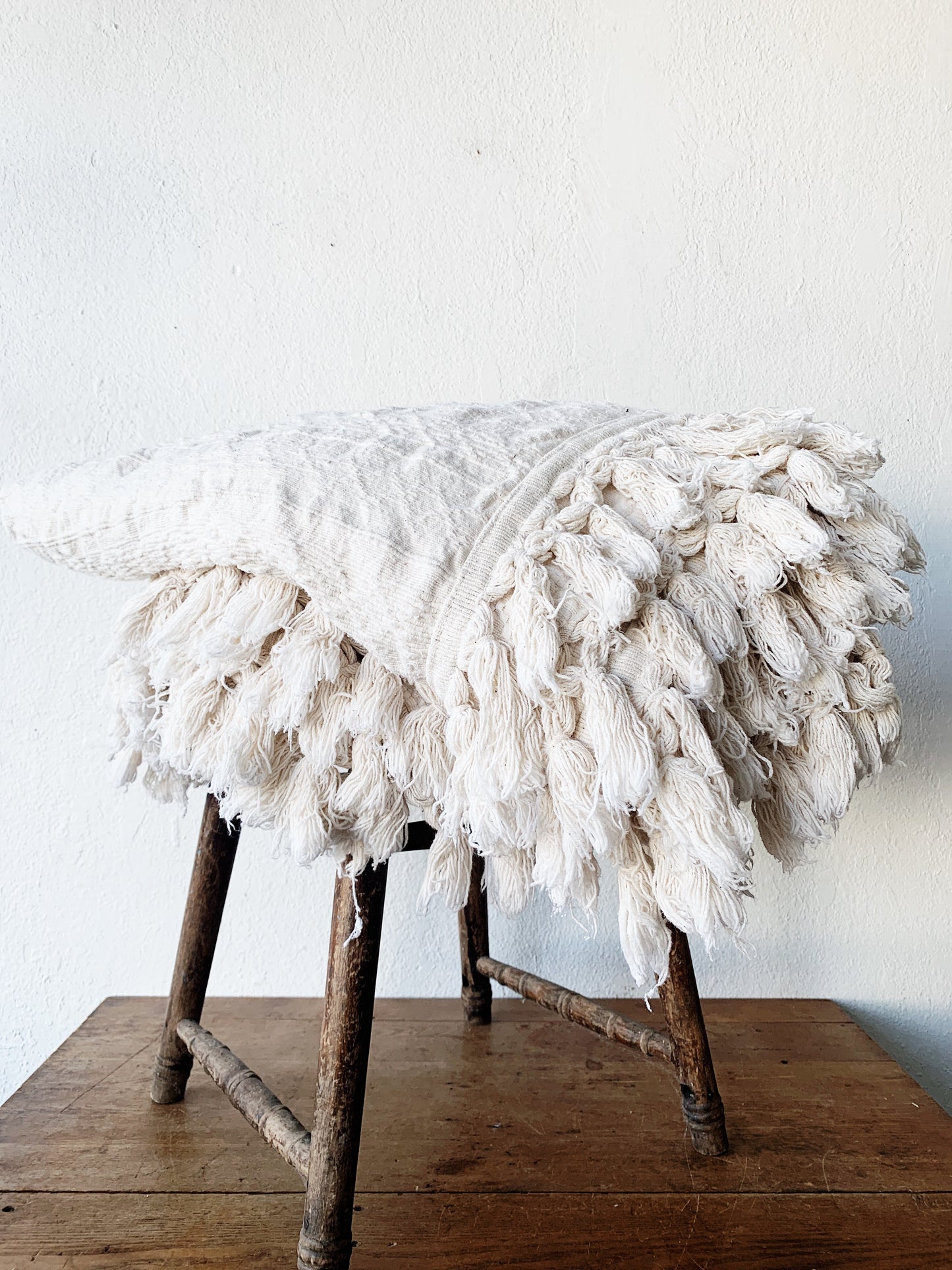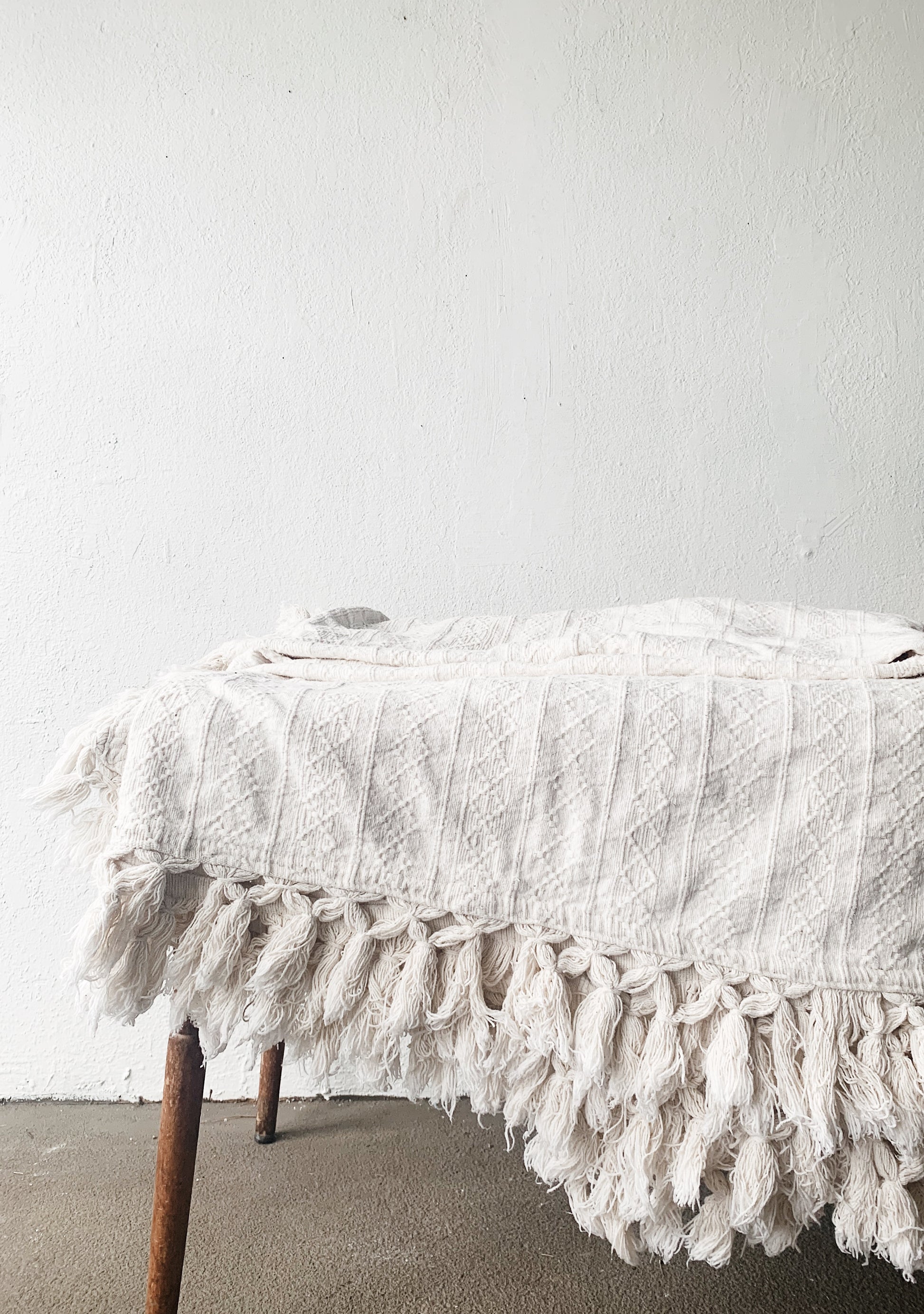Vintage Indian cotton bedspread with fringe. Weighty! Queen size
