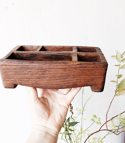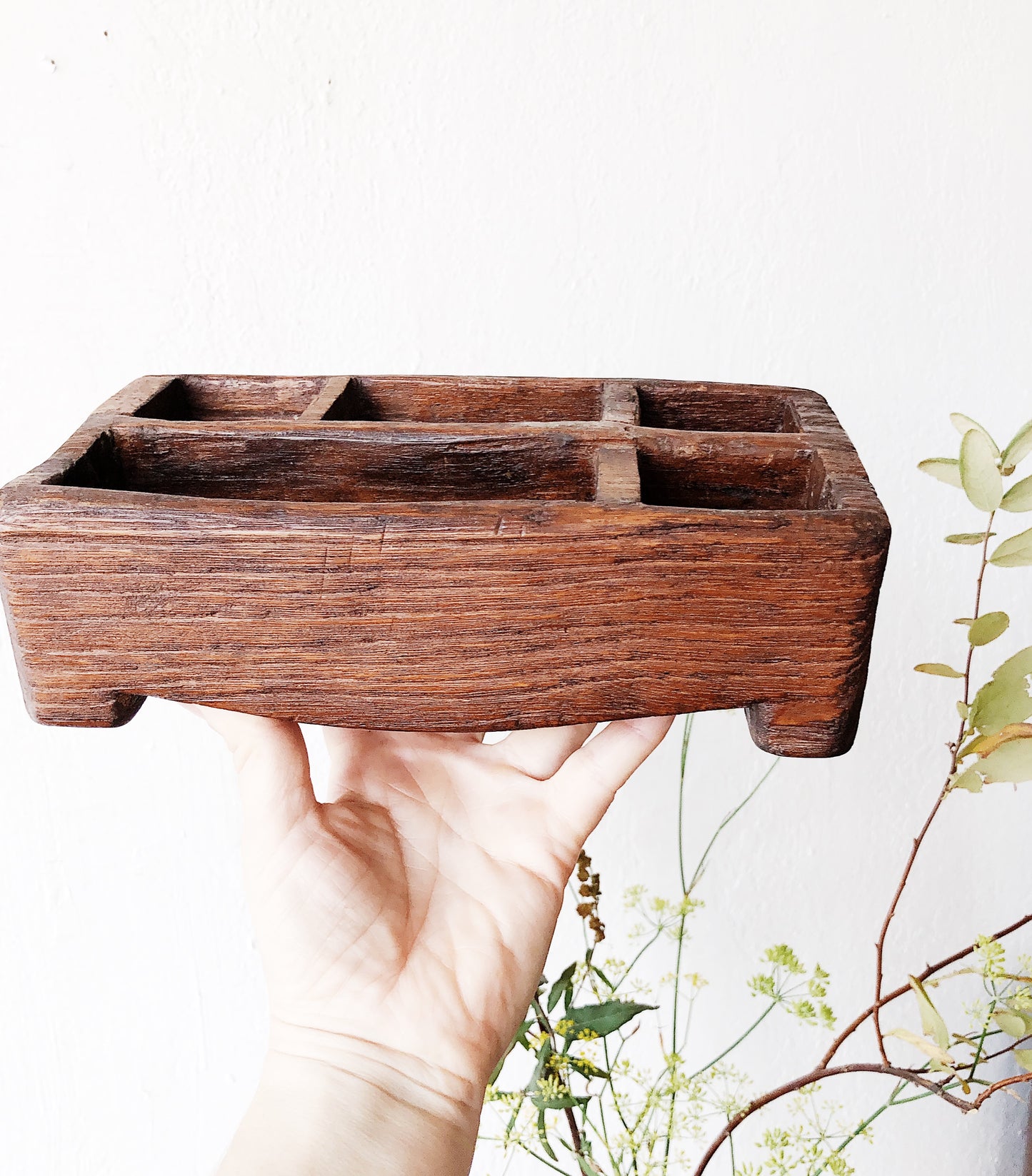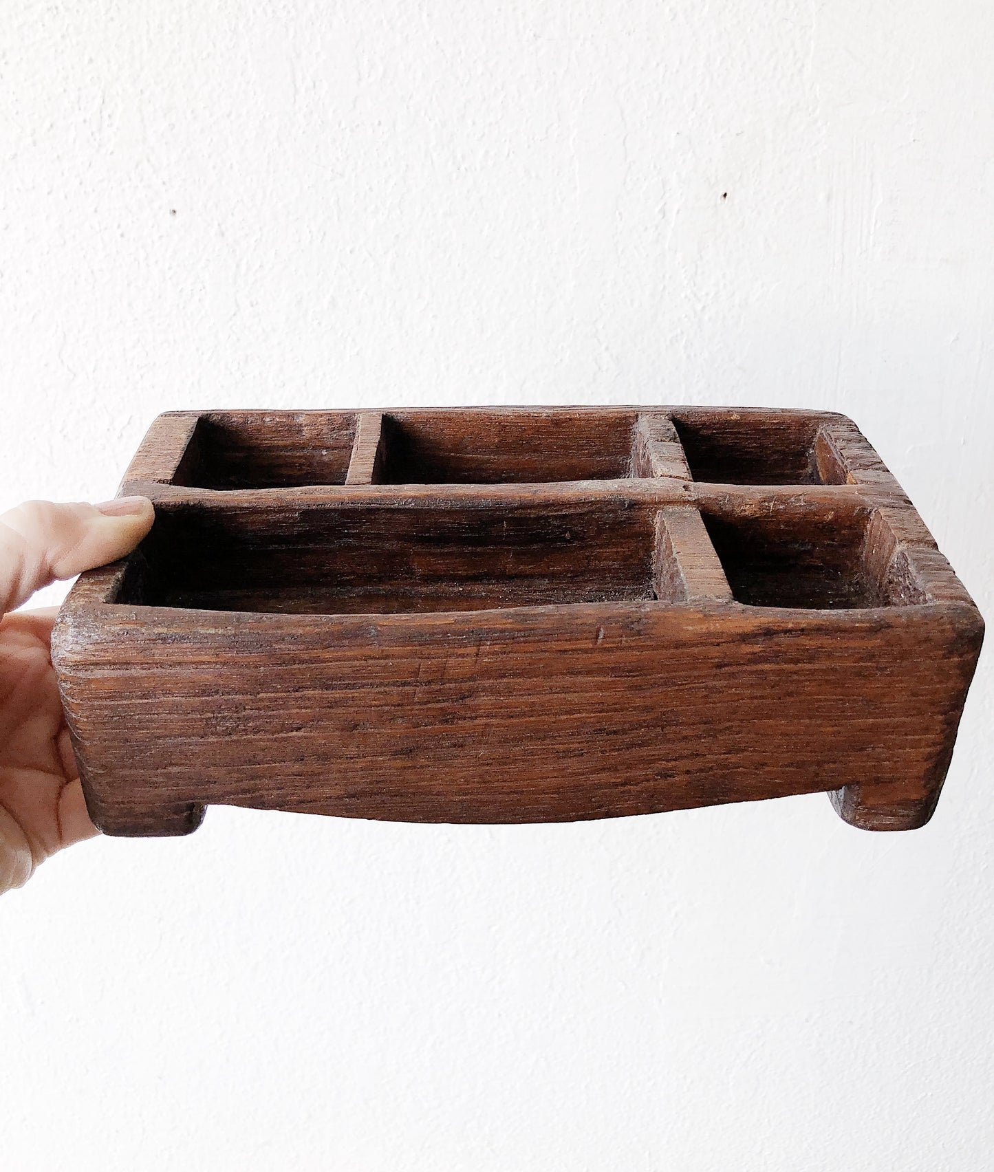 Chunky carved wood divided box that has a great primitive look. Perfect for jewels