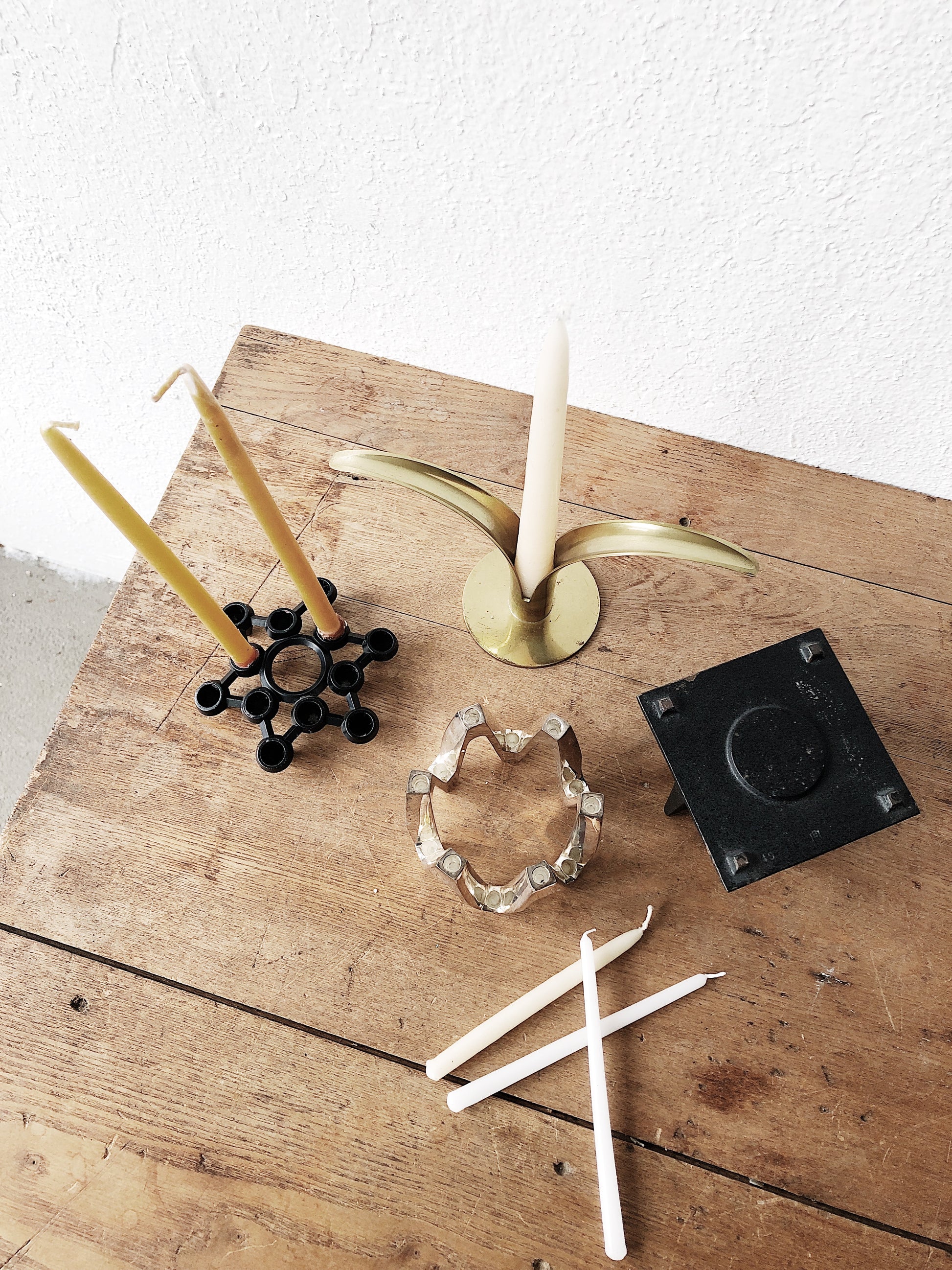 Iron mid century candle holder. Comes with 13 tiny taper candles too.