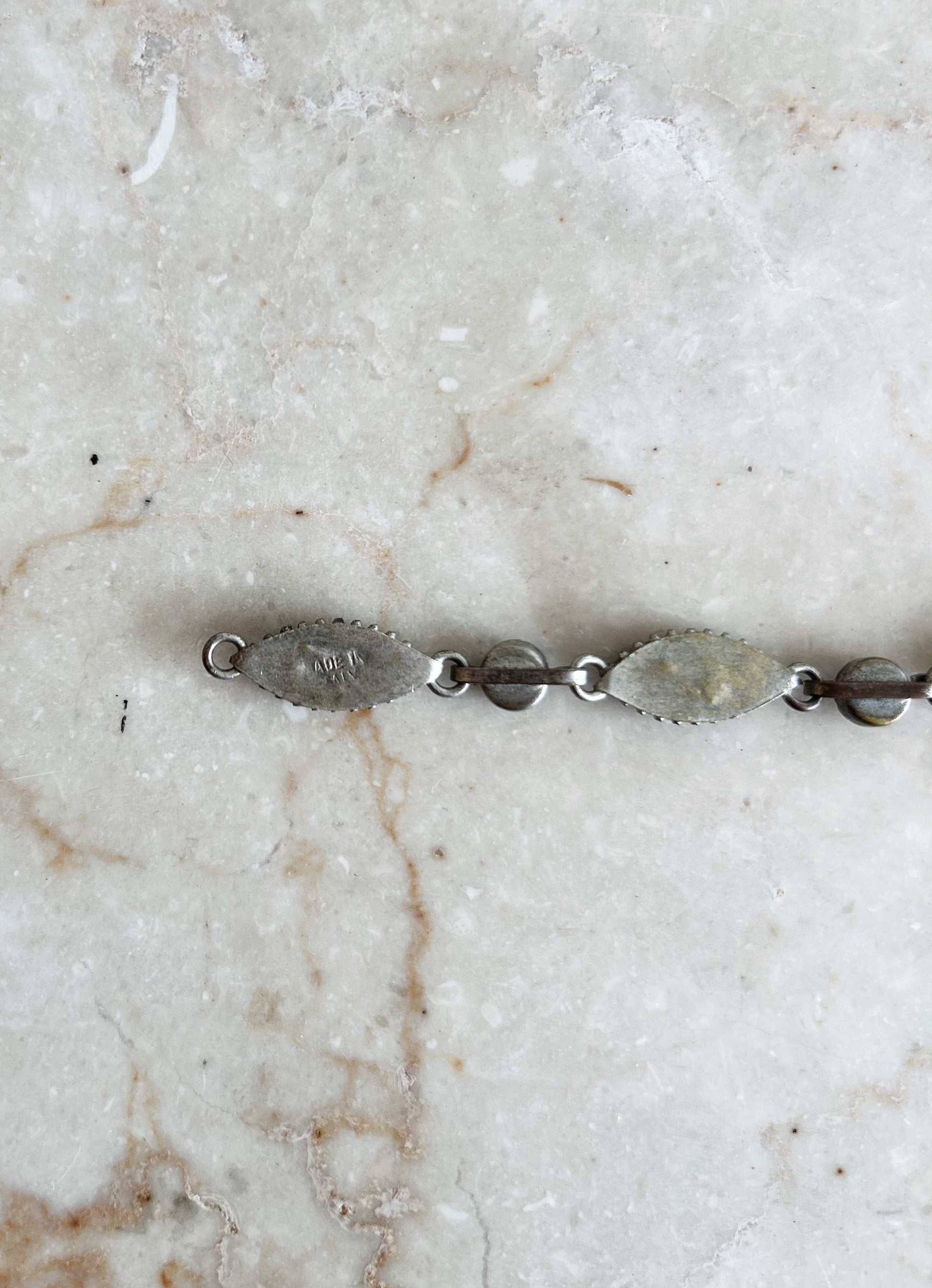Gorgeous artistry in this micro mosaic bracelet from Italy. Lovely colors against the warm silver. Tony beaded edging. Small hook clasp. Marked