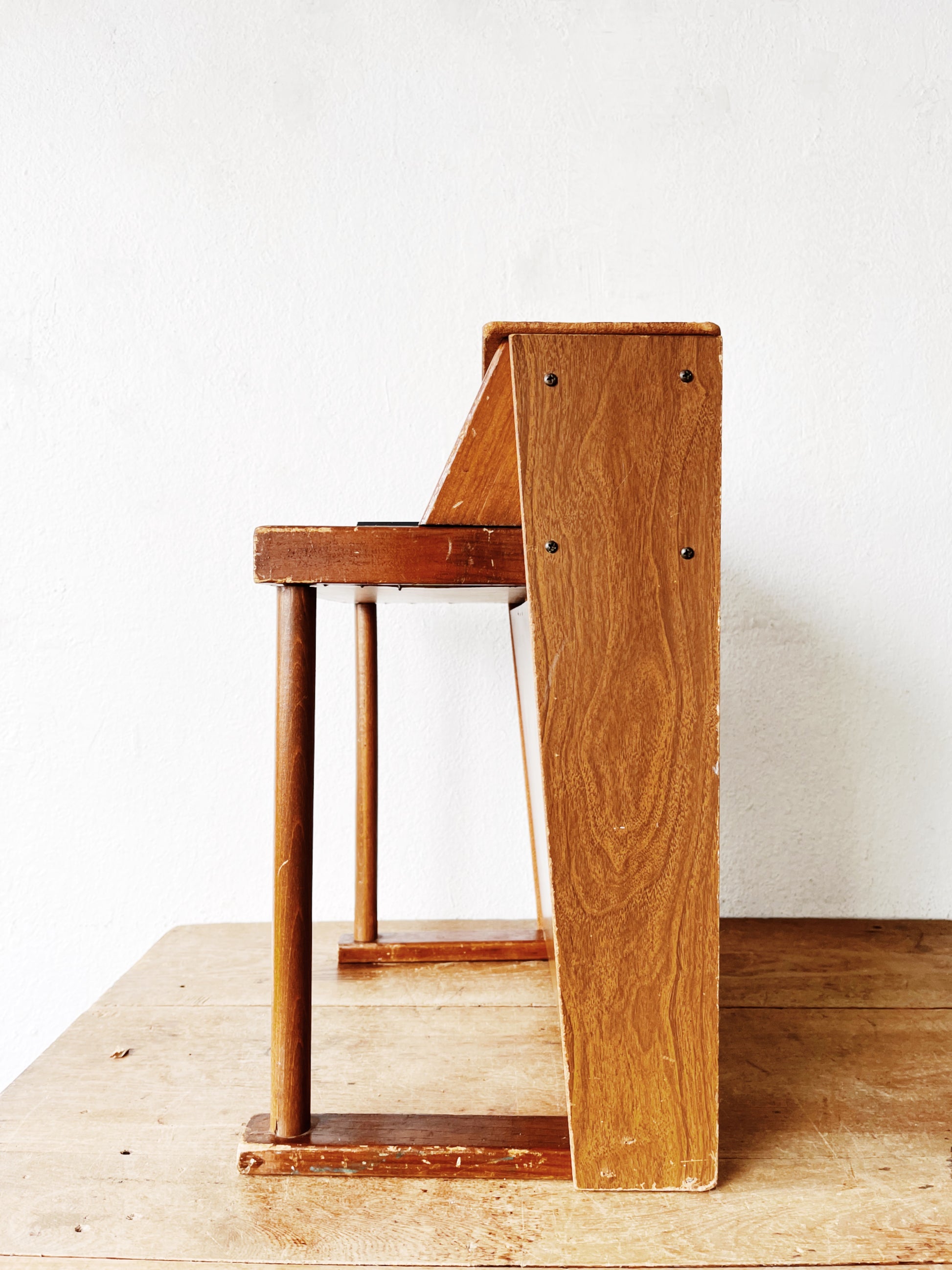 Vintage mid century Jaymar child’s piano. Wood case and ivory keys. A little out of tune but that’s what makes it so endearing. Some overall wear to the wood.