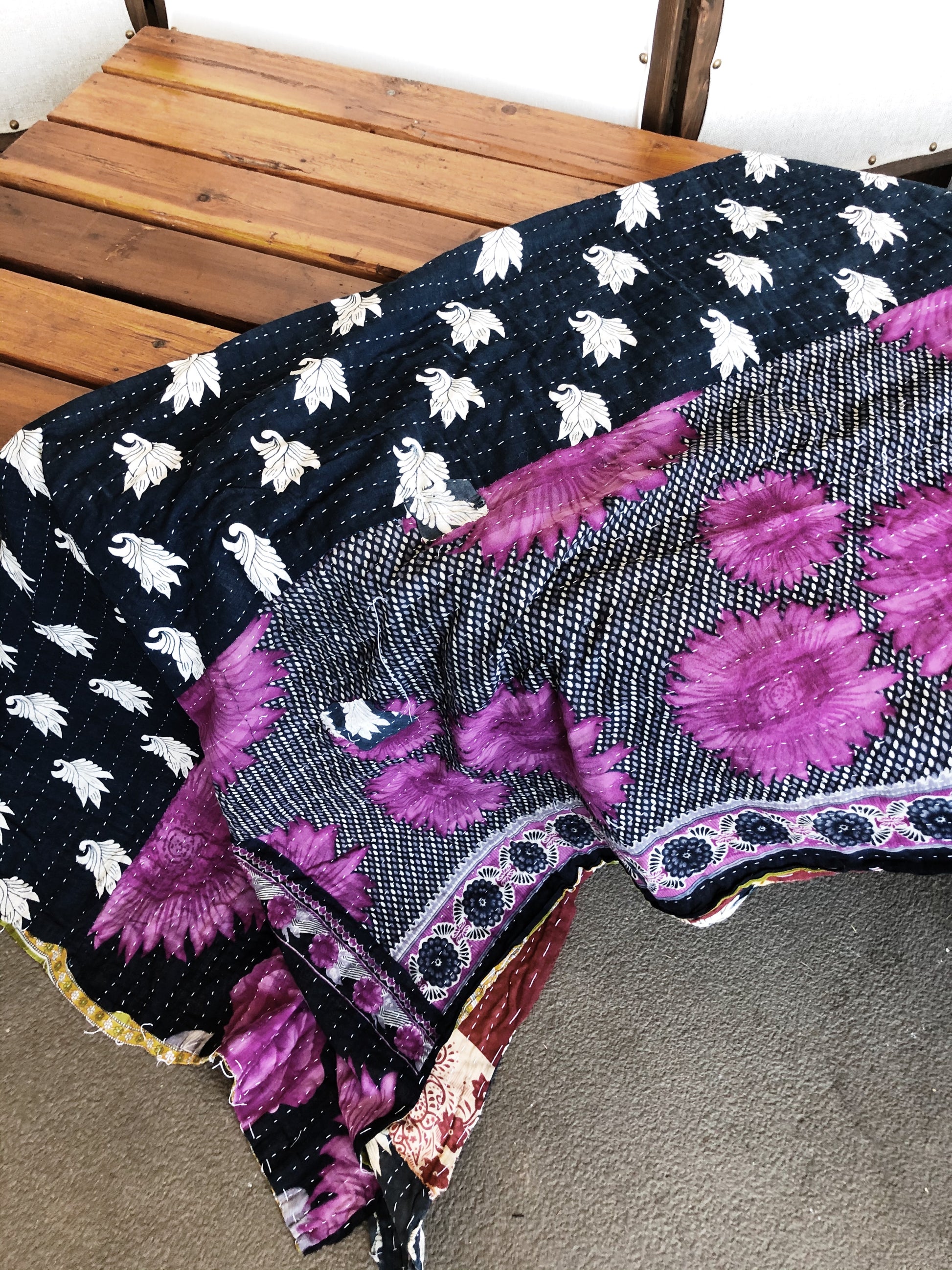 Vintage patchwork kantha. Super soft and a bit faded. We’ve tried to show all the fabrics in this beautiful quilt. One side is predominately the indigo pattern which we love. In wonderful condition