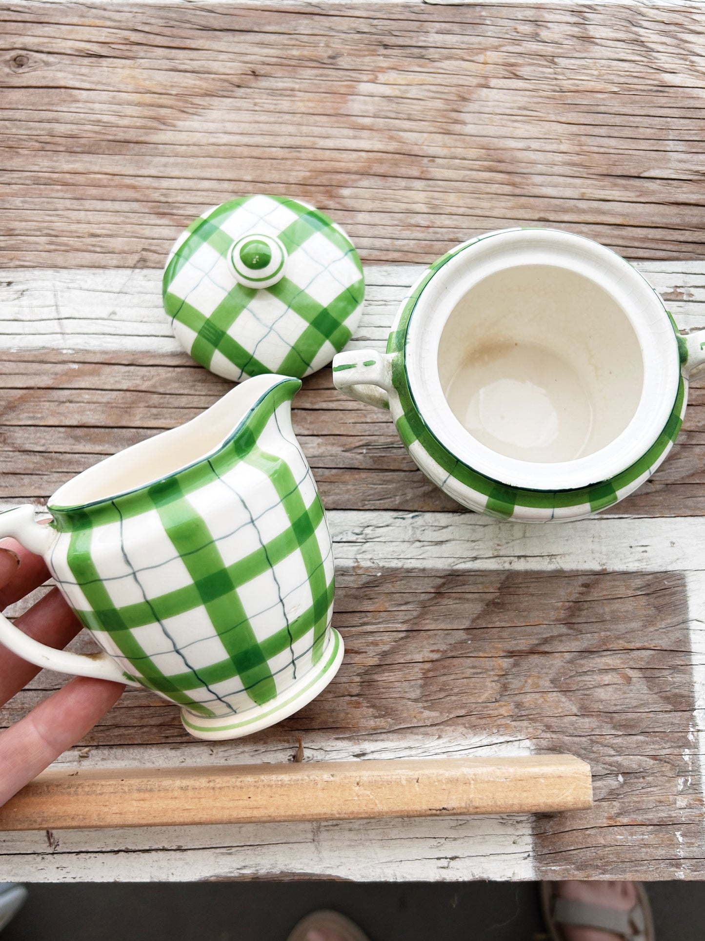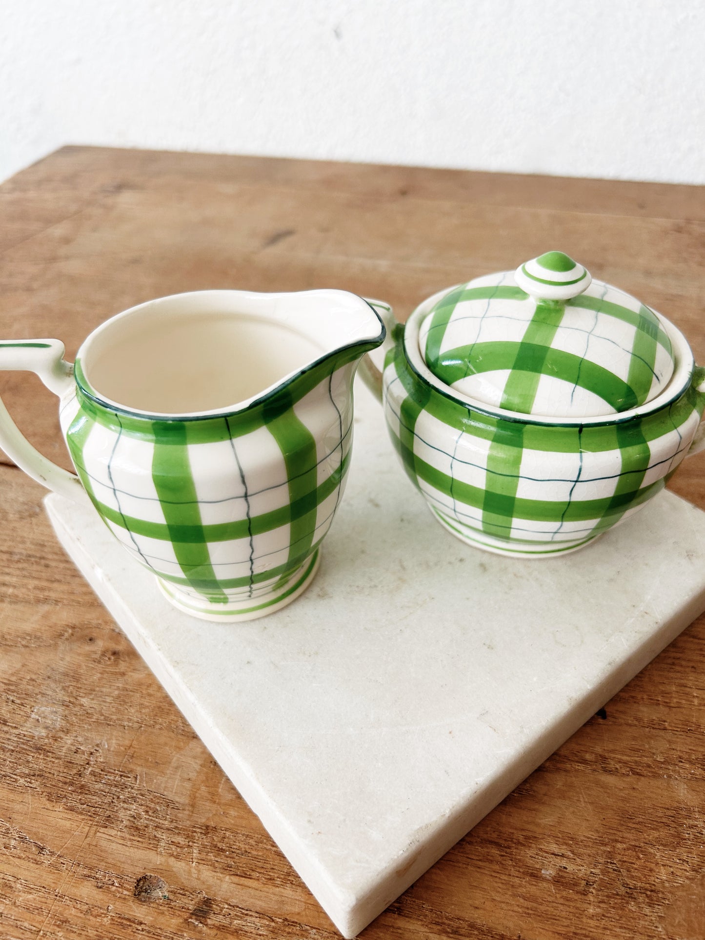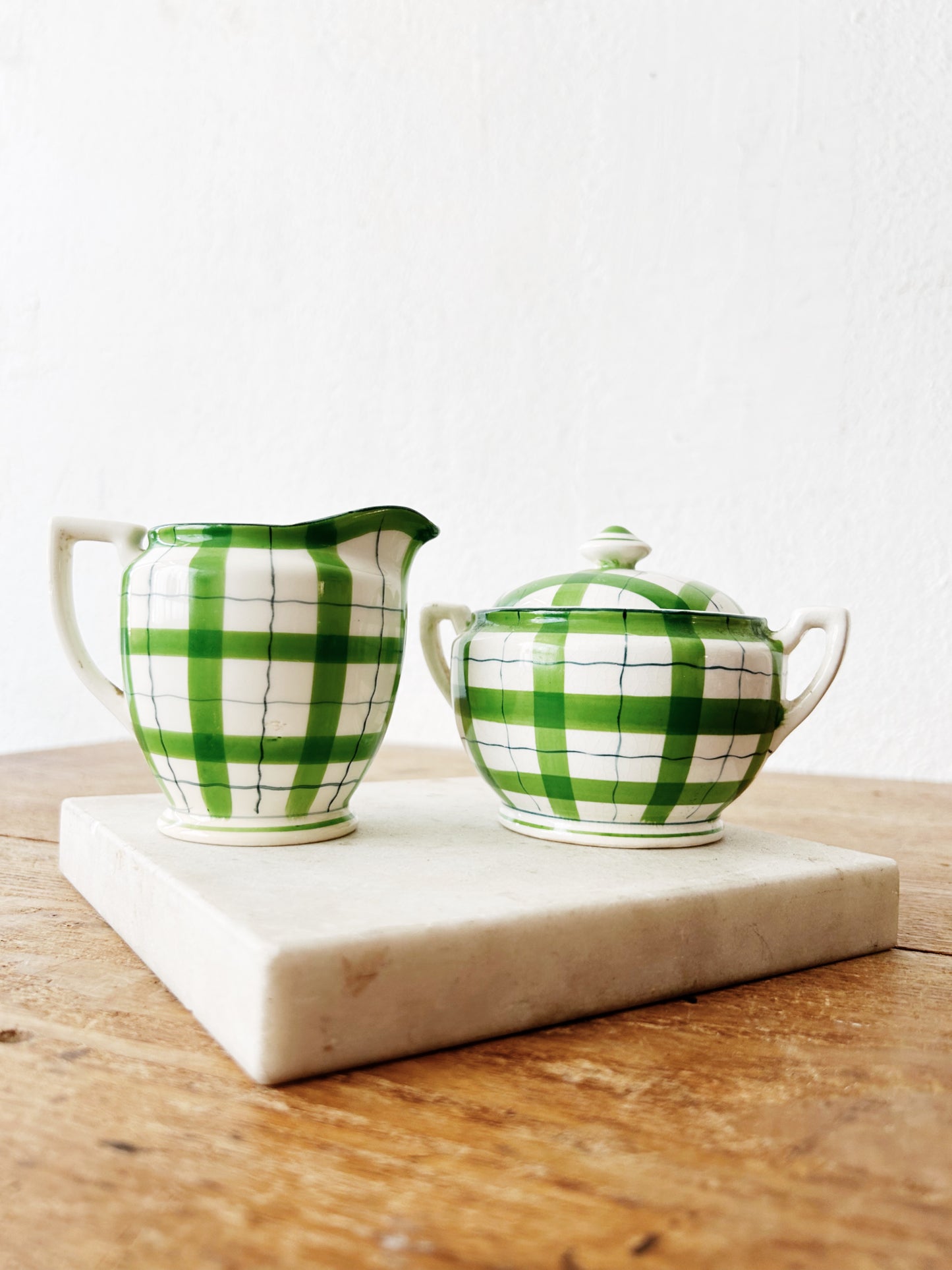 Wonderful hand painted mid century Kikusui cream and sugar china set from Japan. Love the colors and pattern. Excellent condition.