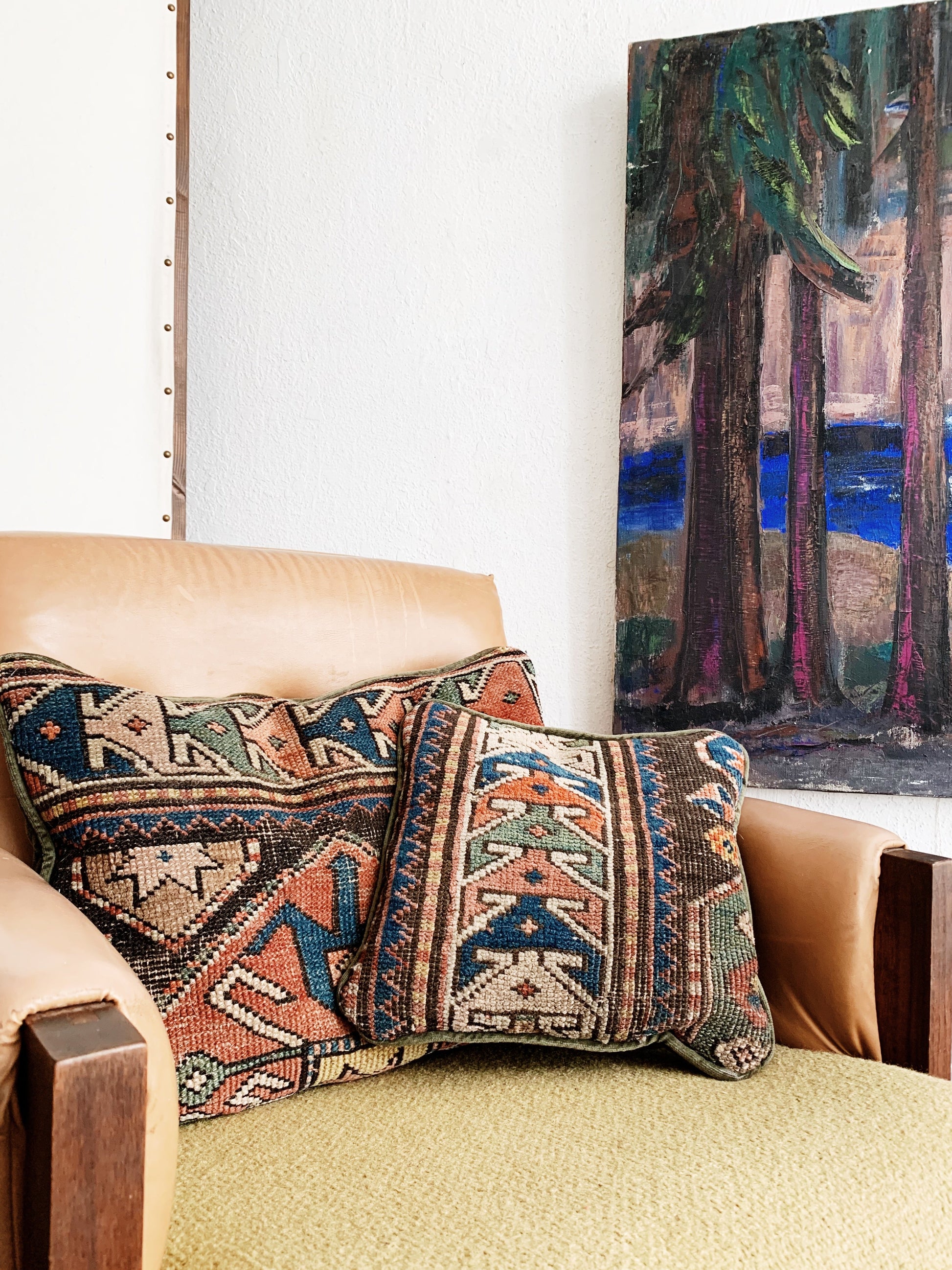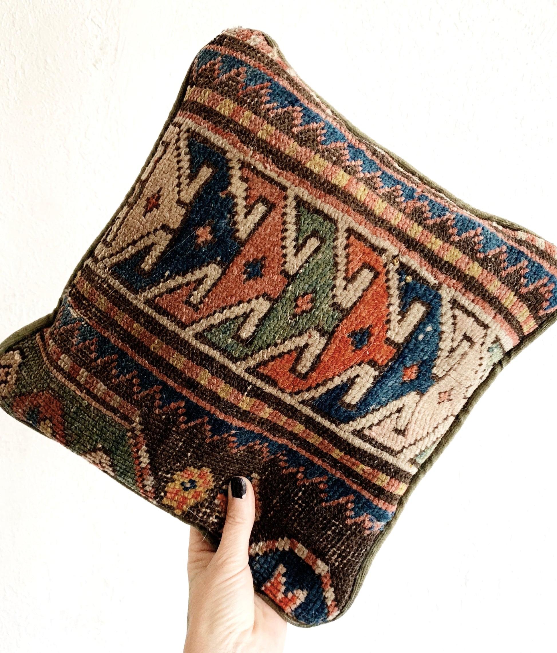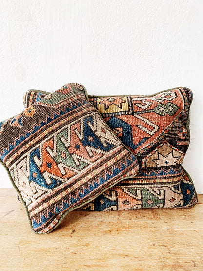 Vintage kilim pillow with olive green velvet backing. Sold separately, please chose.
