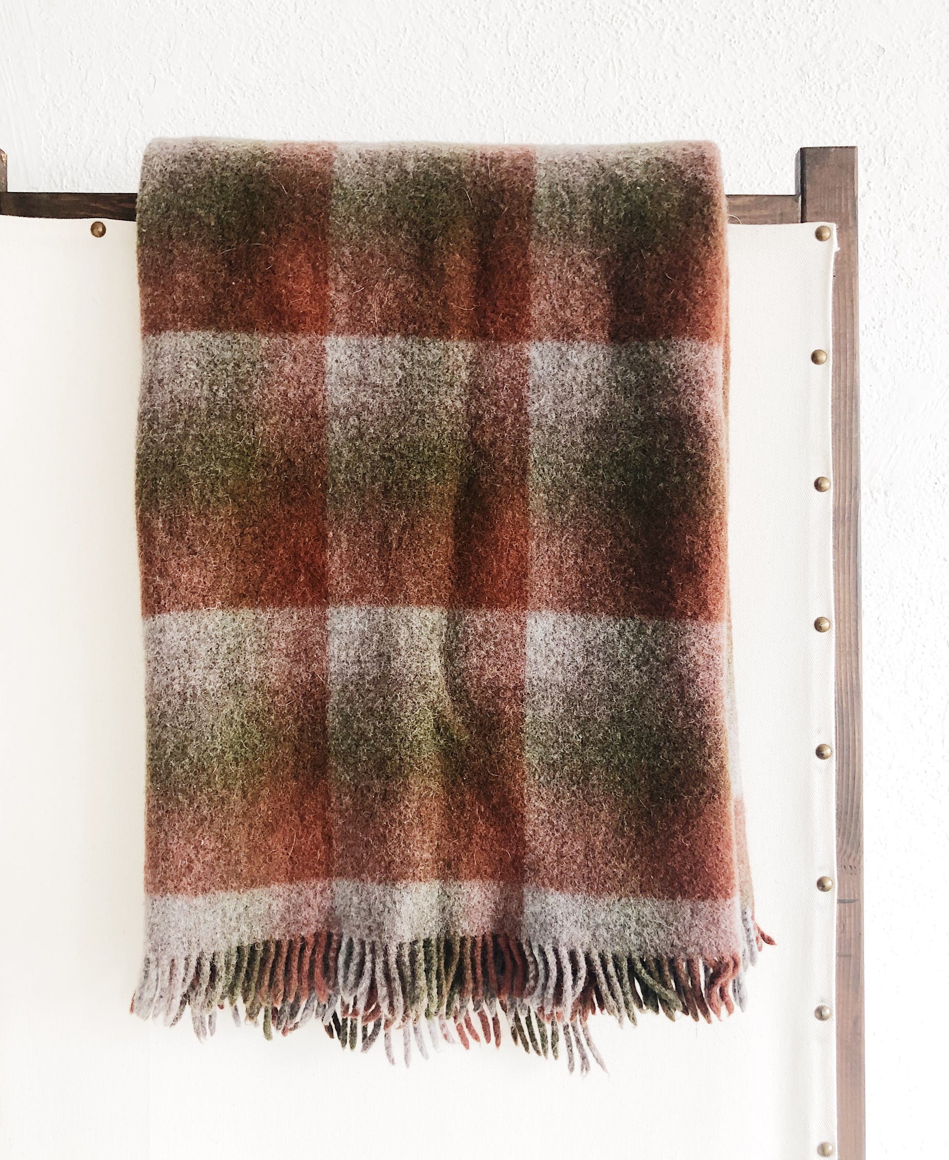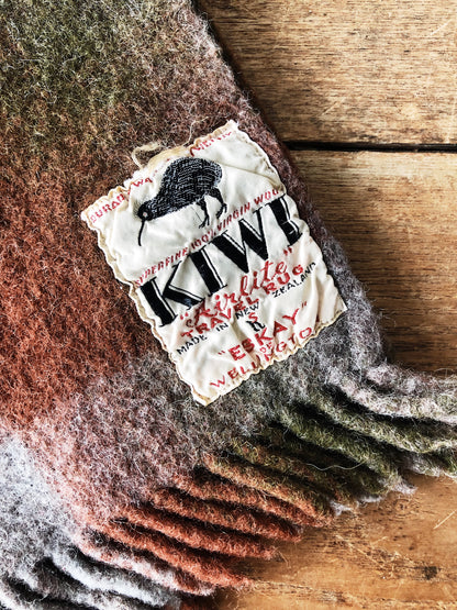 Made in New Zealand. Originally touted as the ‘airlite travel rug’, this wool blanket is thick and soft, and yes, could be used as a rug. Great colors. Fine condition