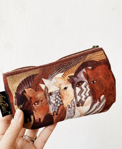 Vintage horse print Laurel Burch Pouch. Cotton print lined. Excel condition.