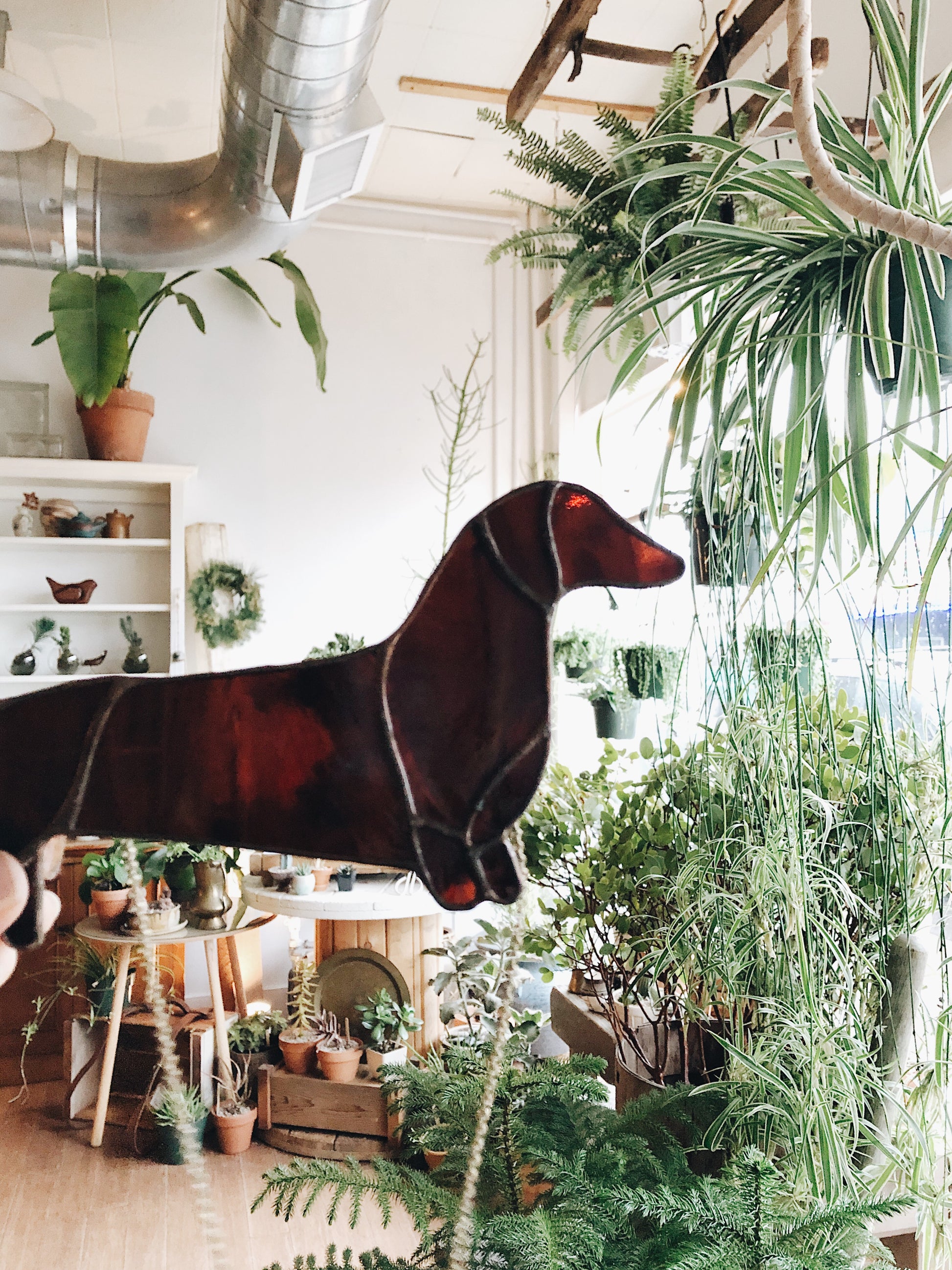 Vintage Leaded Glass Dachshund