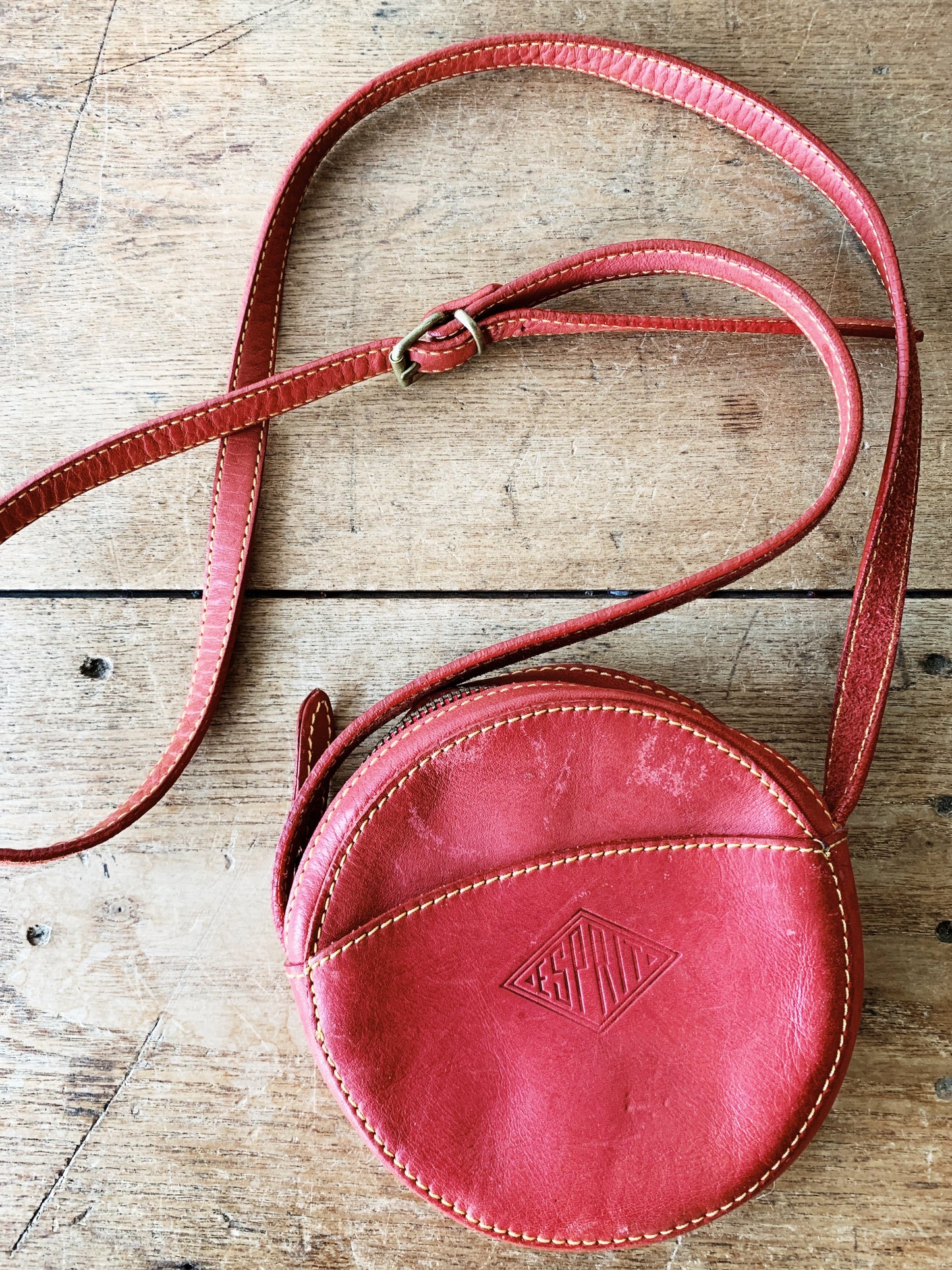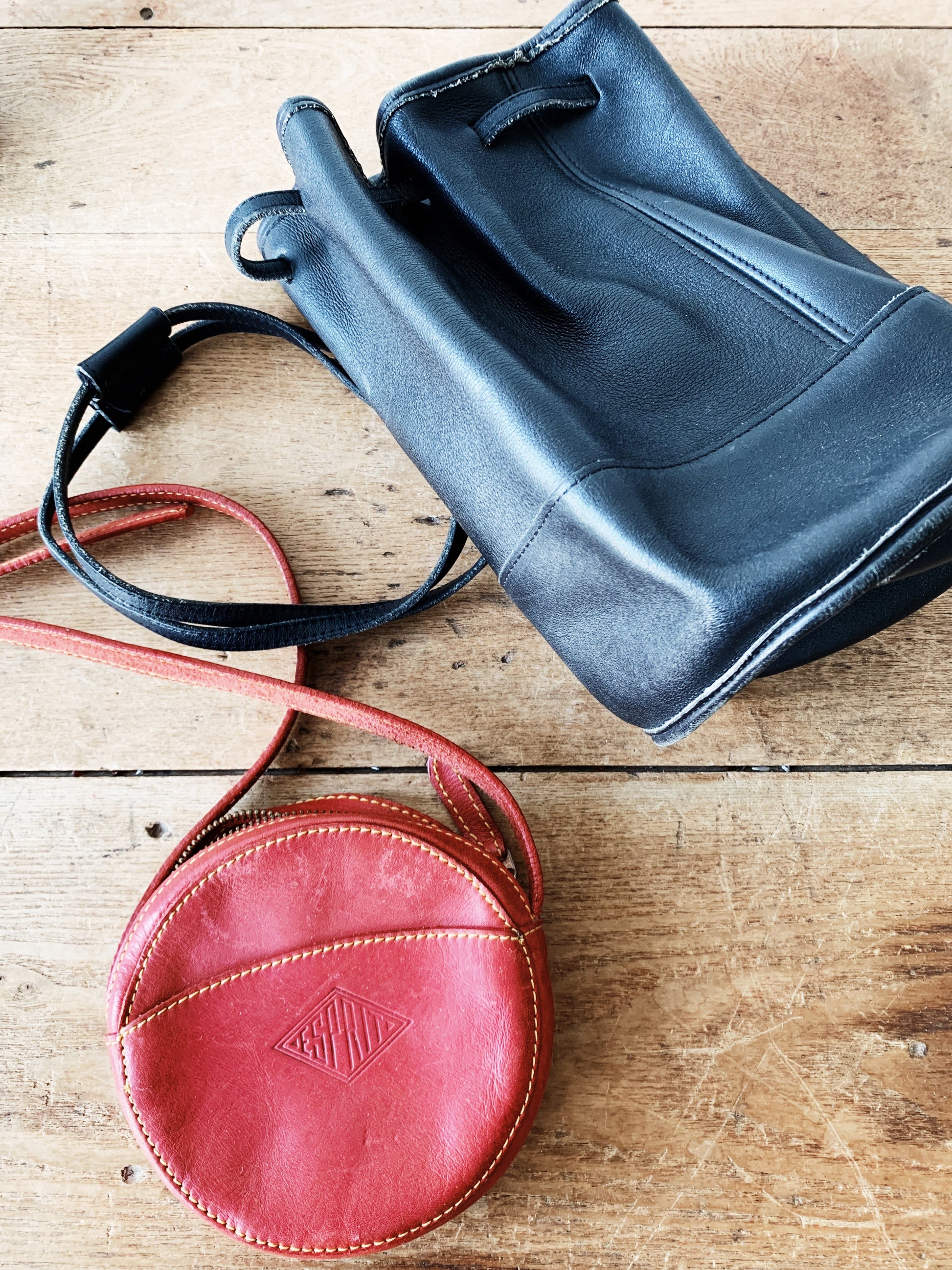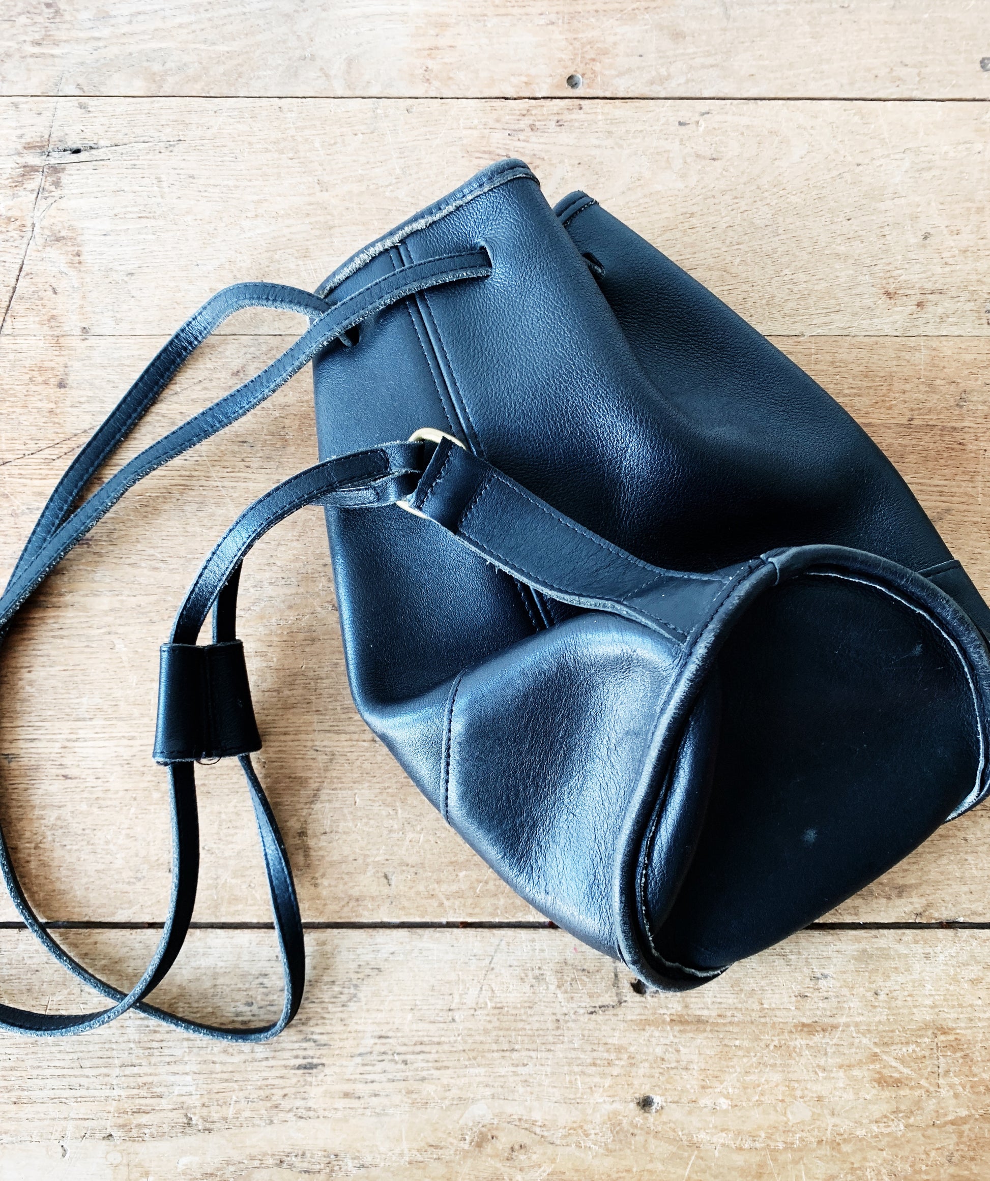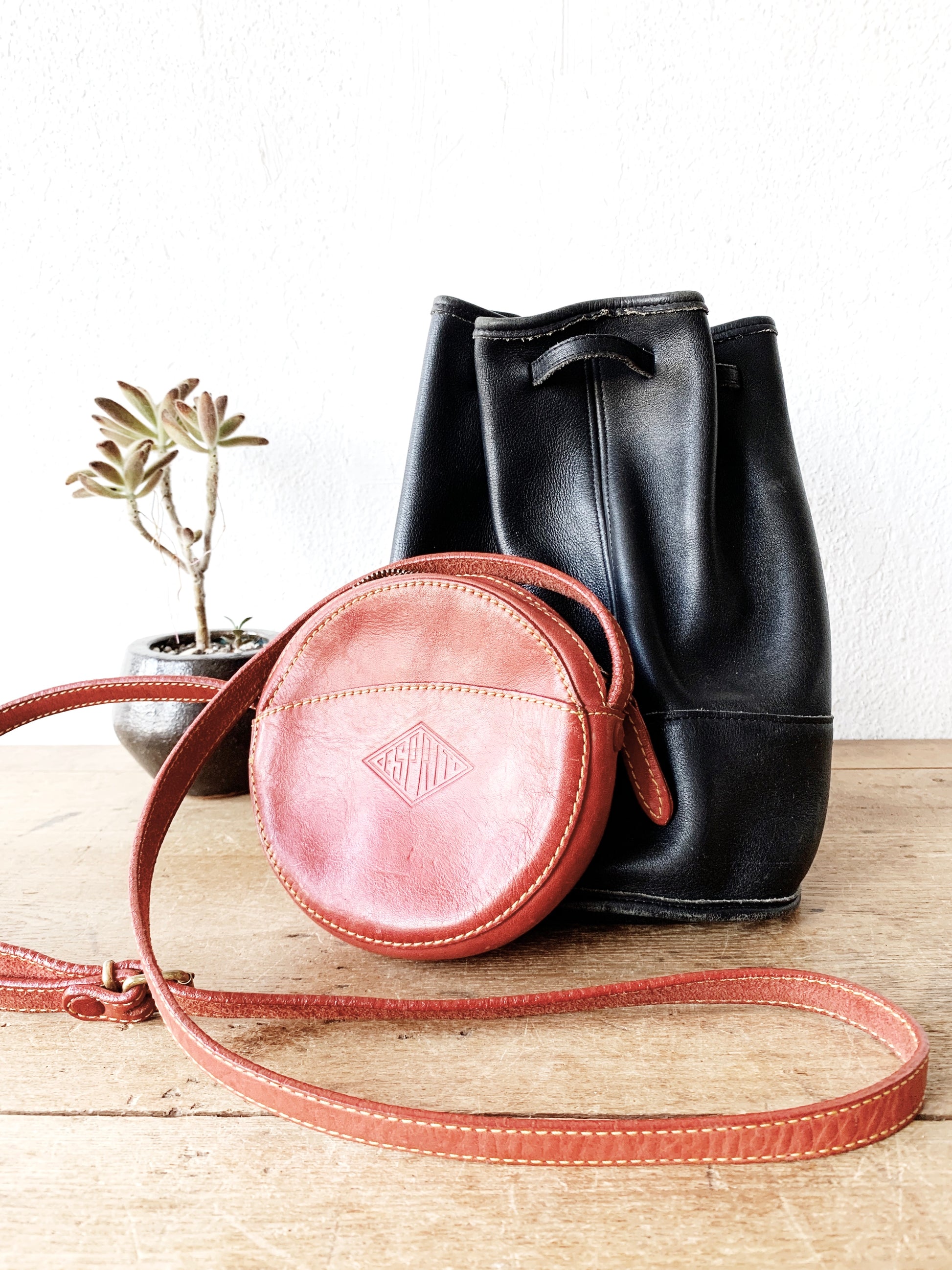 Two great vintage leather bags. Please select between red esprit sling or black coach cinch backpack.
