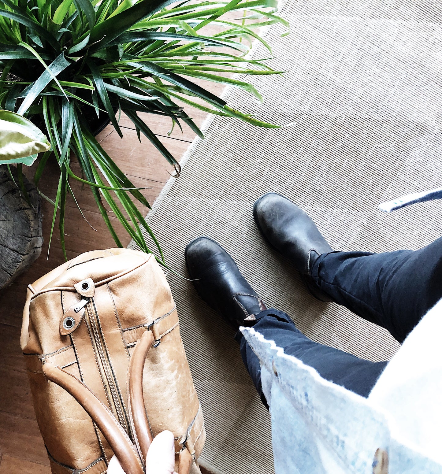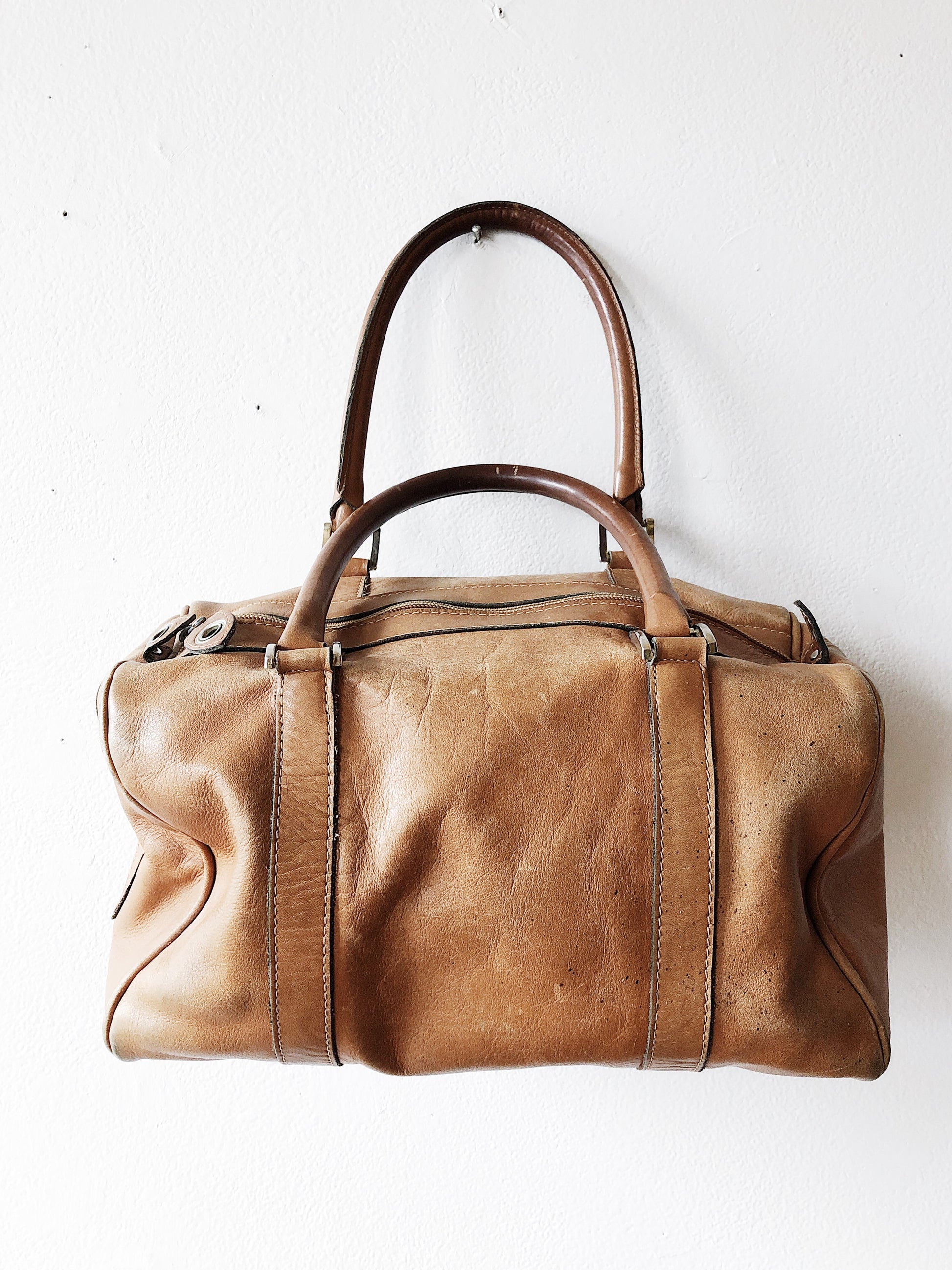 A petite version of a larger duffel. Worn in vintage leather has just the right patina. Brass hardware. Lined. The perfect size for day tripping.