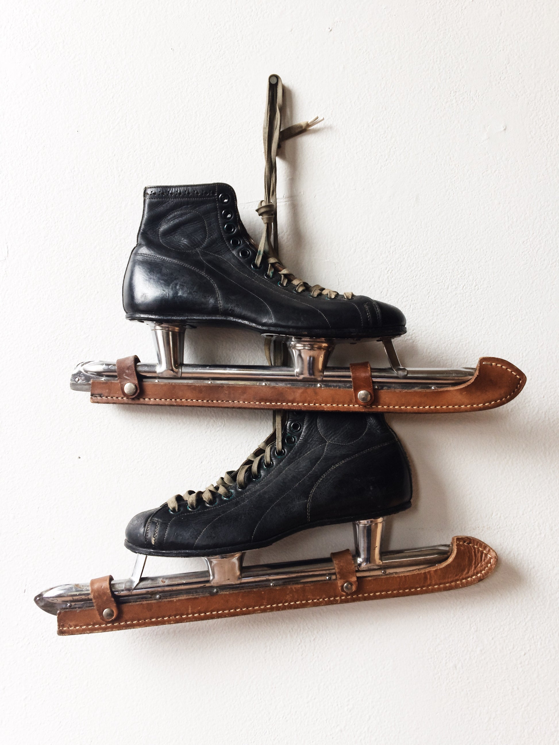 Awesome vintage leather ice skates from the 40’s. In great condition, leather blade guards are like new. Shearling lined tongues. Love these!