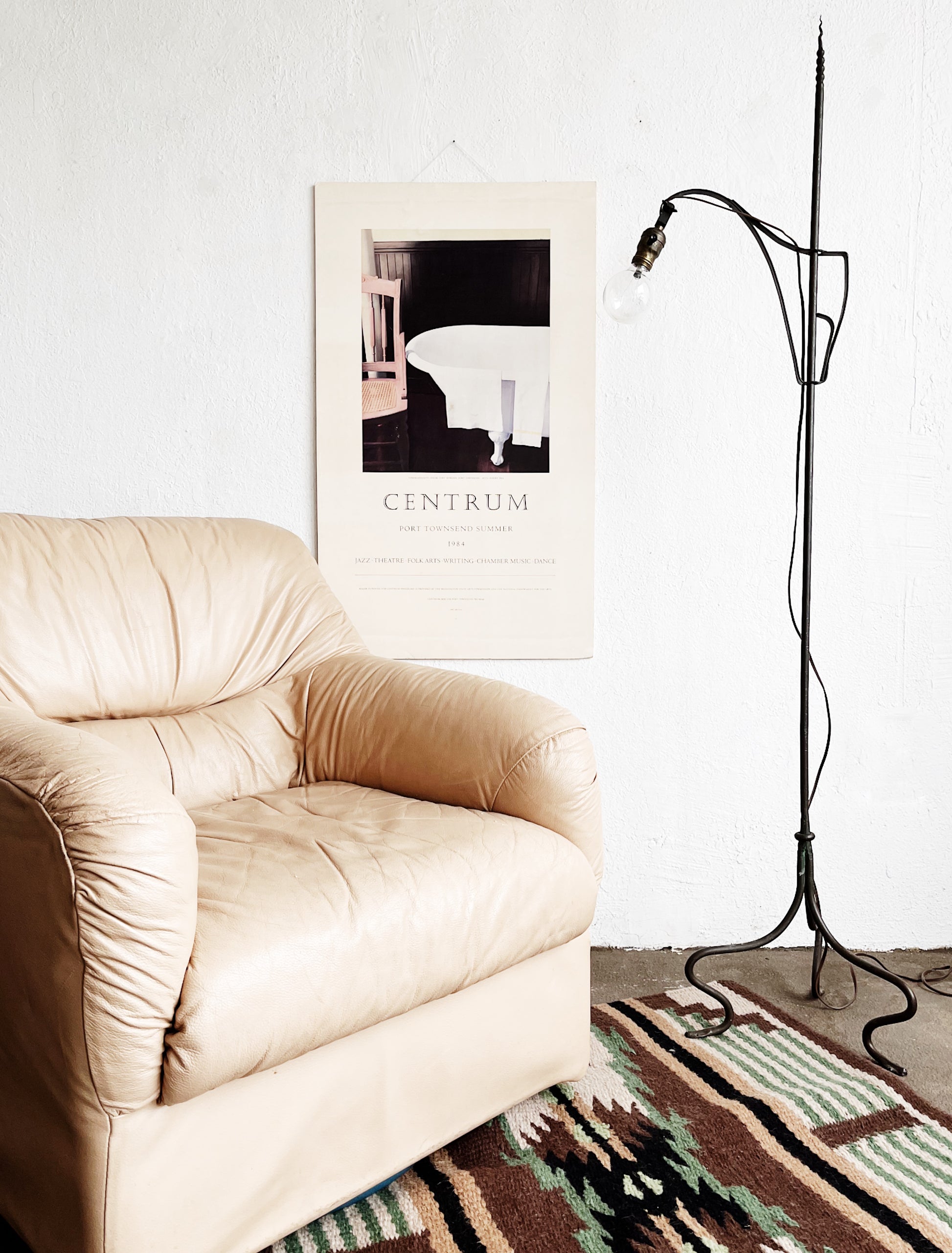 Vintage leather swivel chair in a pale taupe buff / nude. Compact size for small spaces yet really comfortable. In nice condition
